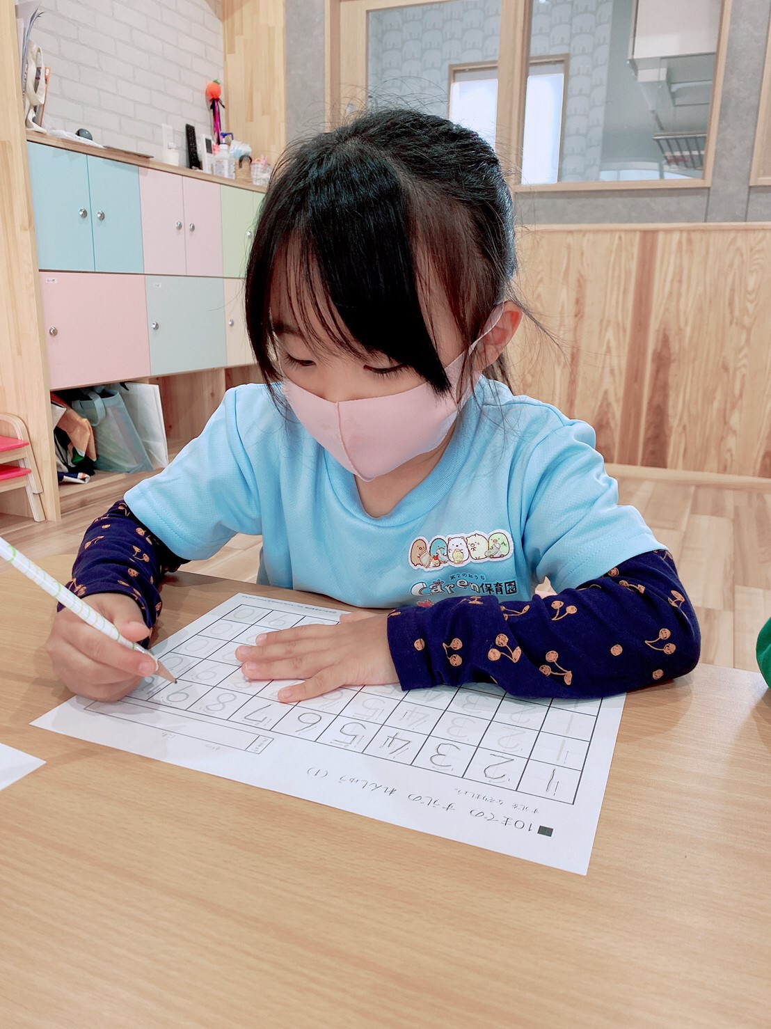 (うさぎ、こあら、きりん)今日は数字の練習をしました👍書くことに自信がない子もいた為なぞり書きから進めると、スラスラ書けることに安心している様子でした☜その後は間違い探しをしました左右をよく見比べて、右にマークを付けると言うルールをよく守り進めることができていました😆✨その後はボールプールで遊びたいと言う子が多く居た為、みんなでボールプールで遊びました。