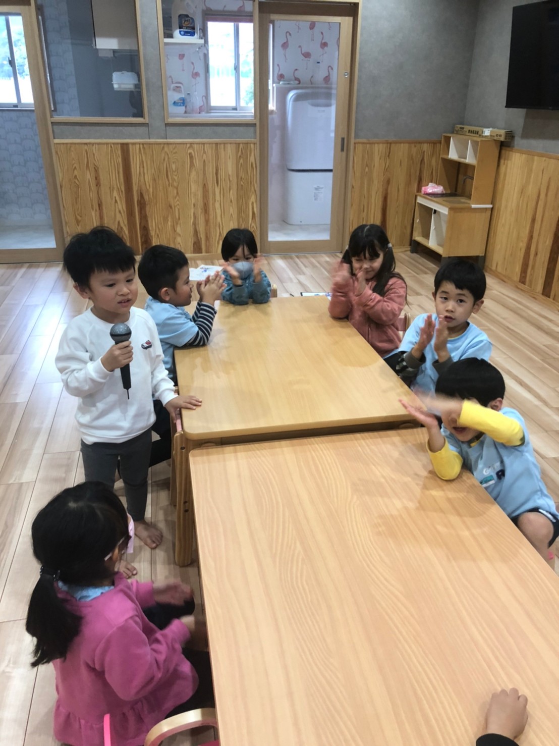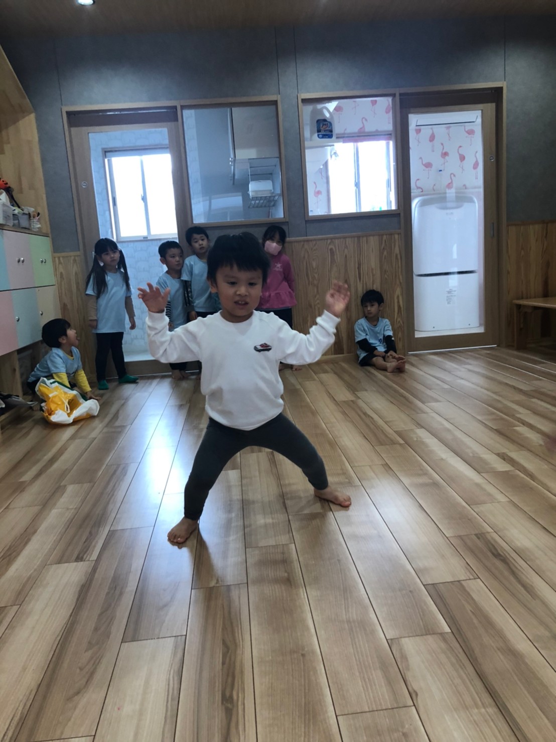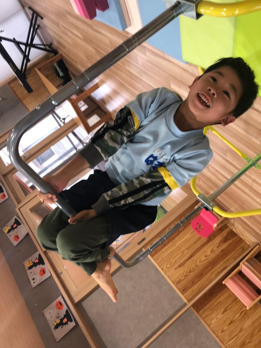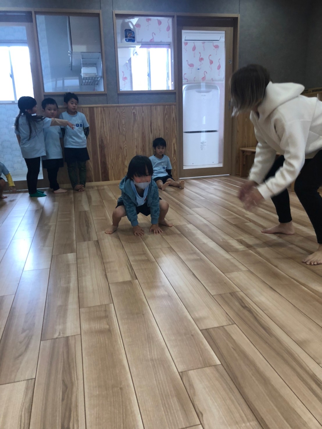 (うさぎ、こあら、きりん) 今日は運動遊びた音楽に合わせてリズム遊びをしました!♪サーキット運動で、鉄棒やマット、トランポリンをしました。みんな一生懸命鉄棒にぶら下がったり挑戦していました!リズム遊びではみんな音楽に合わせてノリノリでジャンプやけんけんをして楽しみました!👍