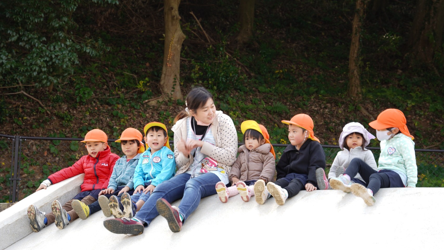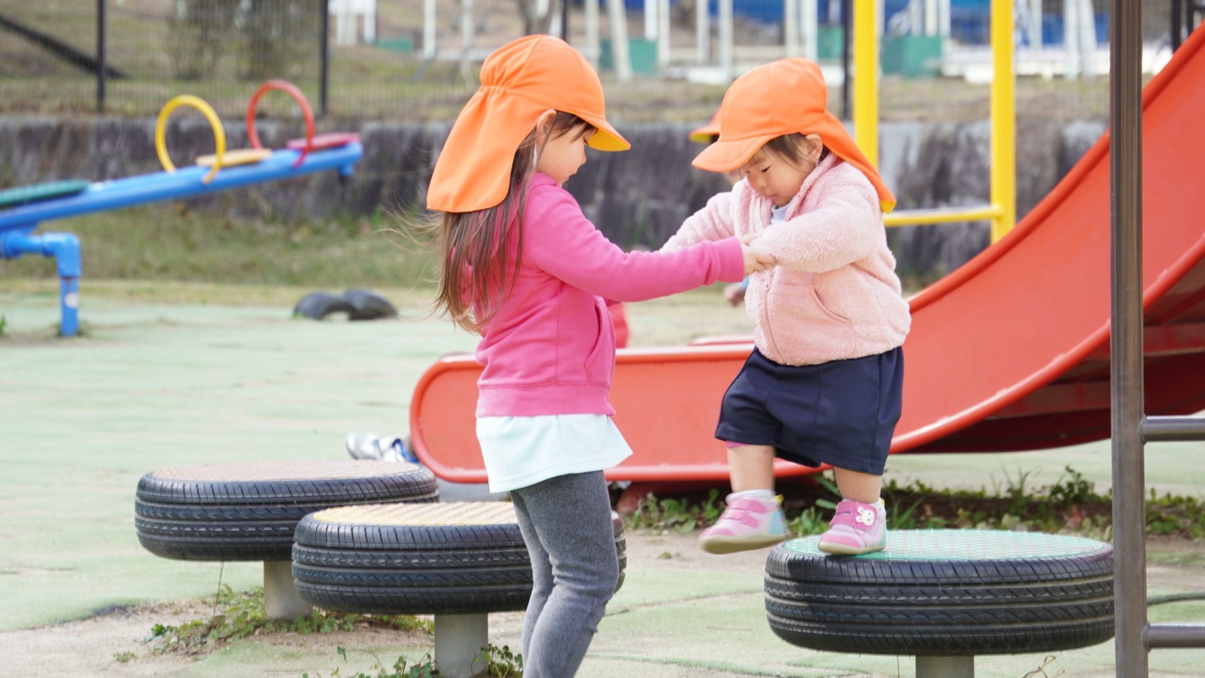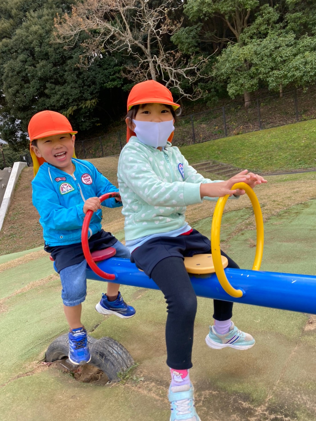 公園では大きい滑り台や、スプリング遊具に乗って楽しんでいる様子の子どもたちでした🎠