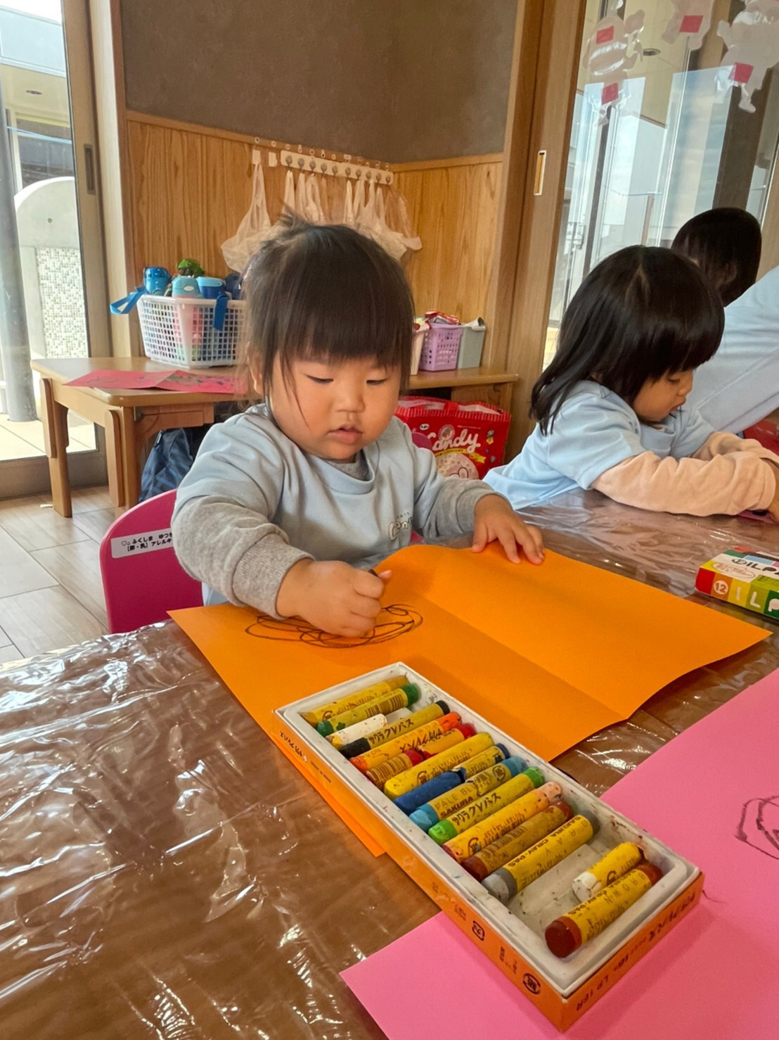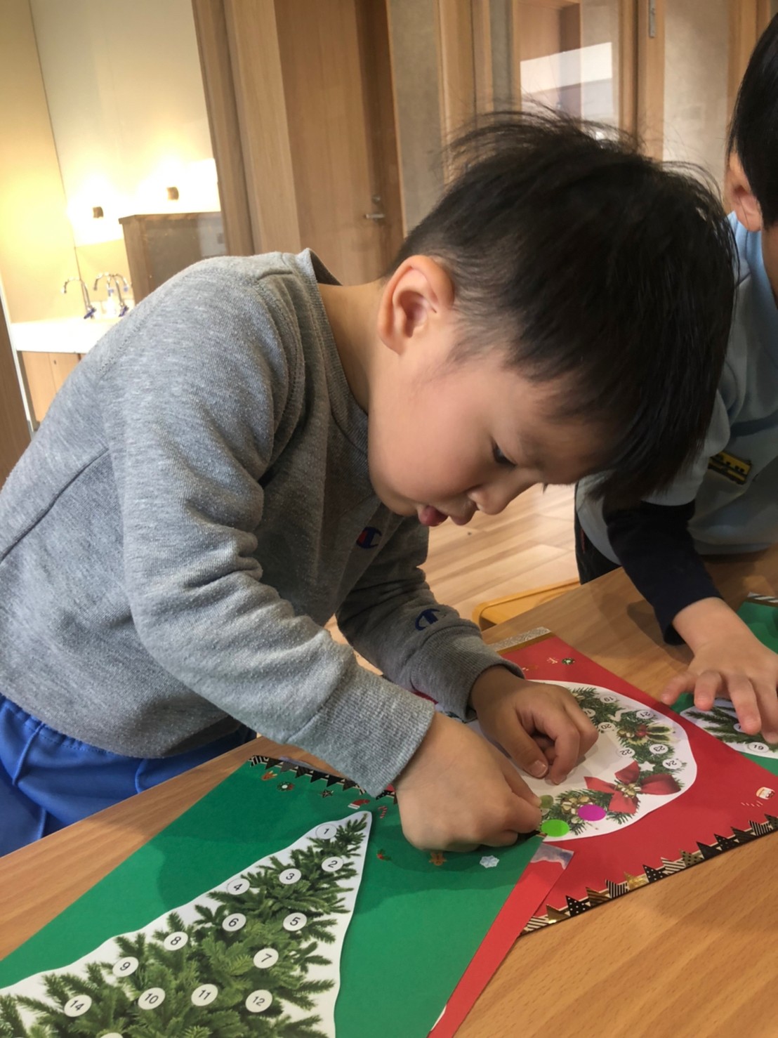 今日はレゴ遊びや風船遊びをしました🎈遊び途中でクリスマスブーツ作りをし、好きな色の色画用紙を選びクレヨンやペン、シールで模様をかきました。製作後は風船で遊び、風船をビニール袋に入れて上から降らせるとみんな大はしゃぎで喜んでいました💛(うさぎ、こあら、きりん)