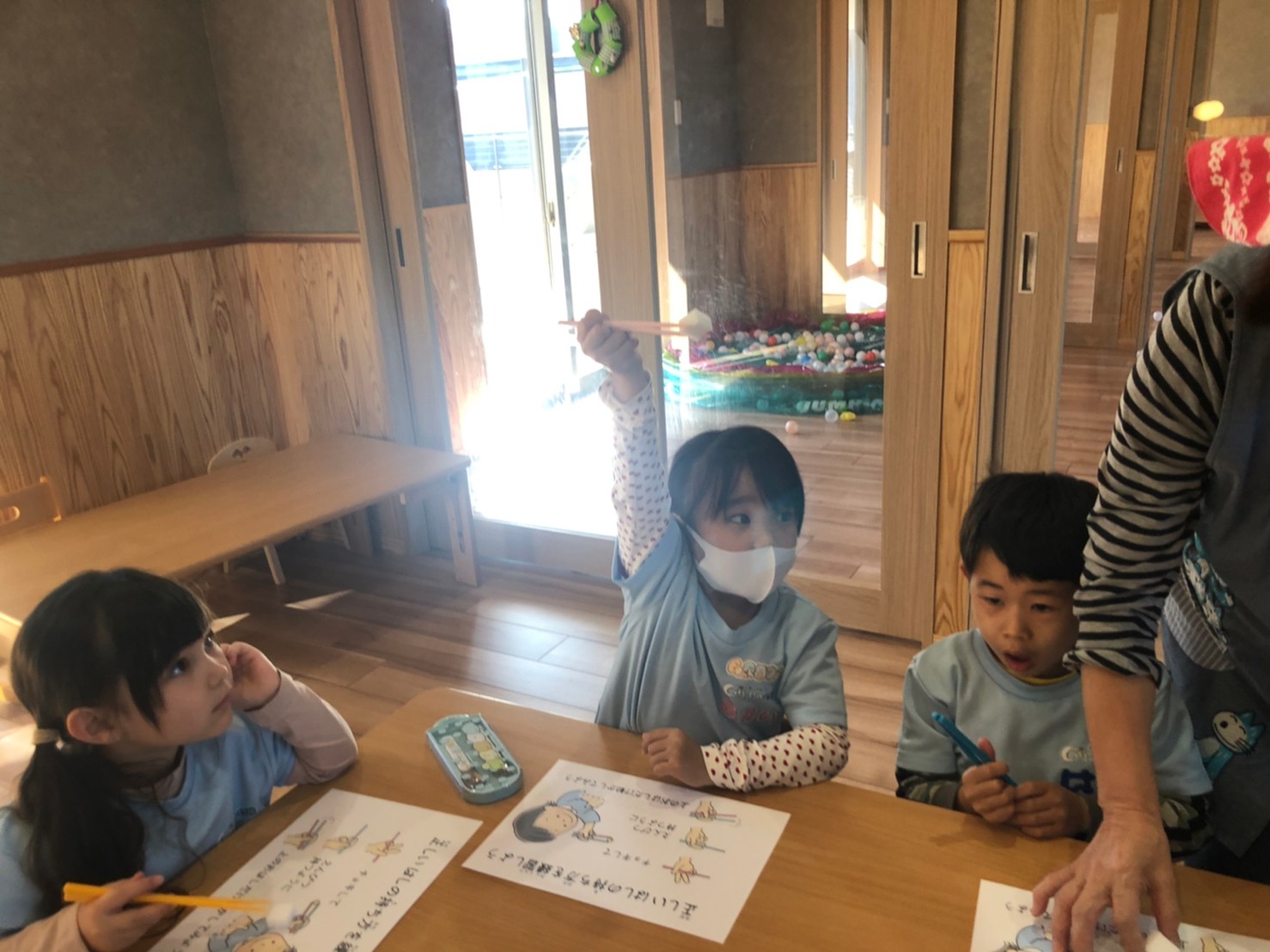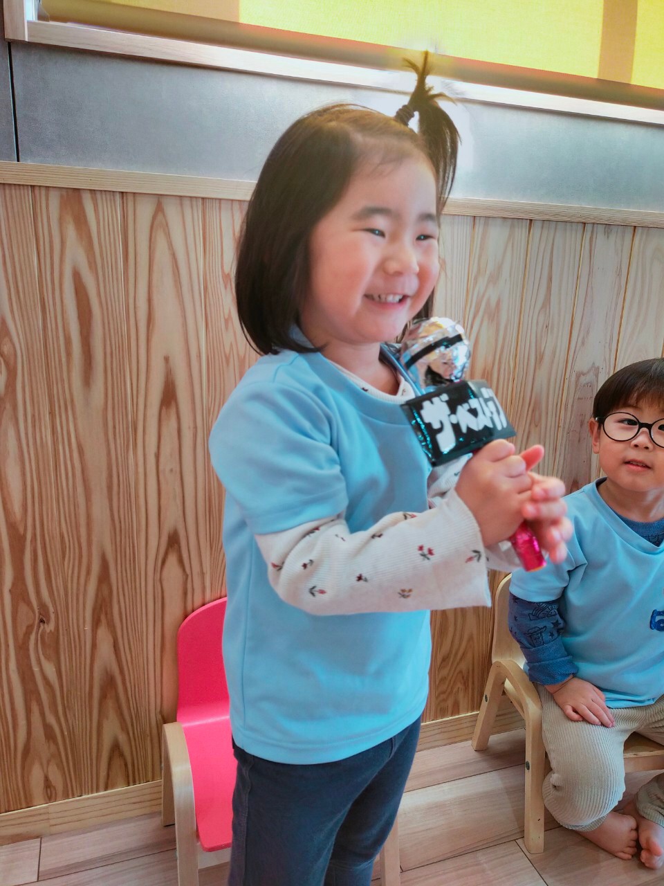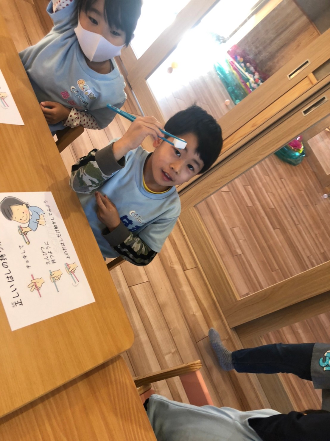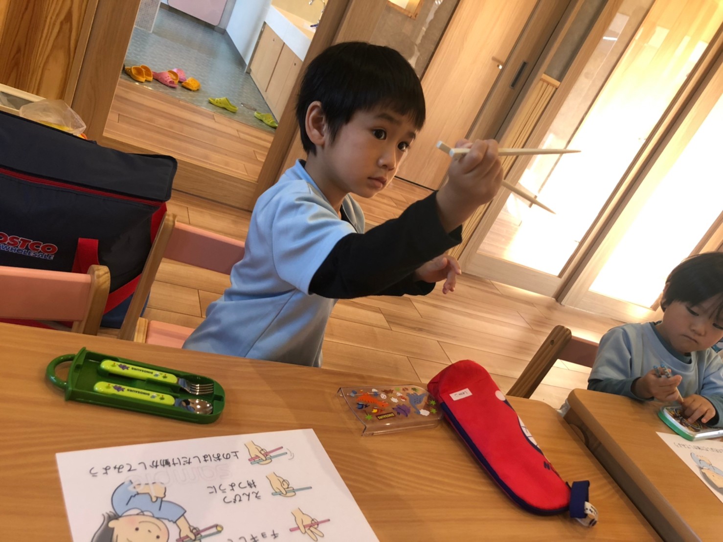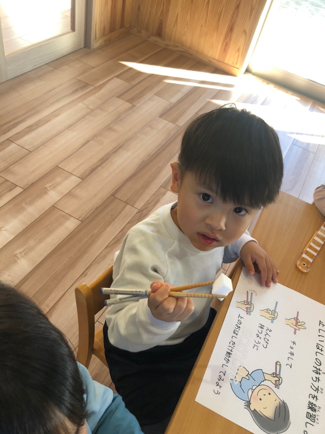 (うさぎ、こあら、きりん) 今日は食育でお箸の持ち方を給食の先生としました!あられを正しいお箸の持ち方で持ち、上手に掴むことが出来ました!そのあとはクリスマス発表会のダンスと劇の練習をし、集中して取り組んだあとは、お外で遊びました!🥰
