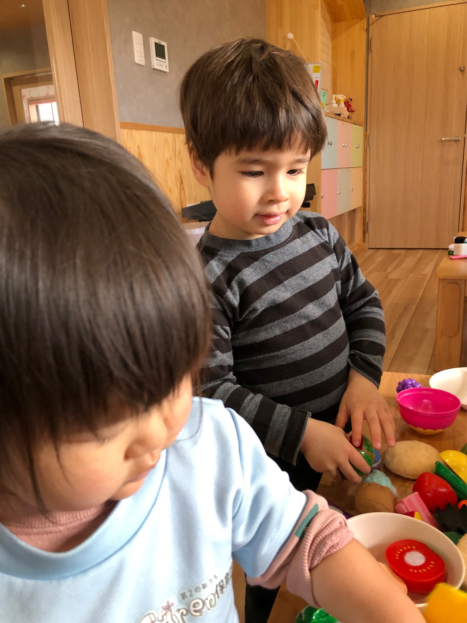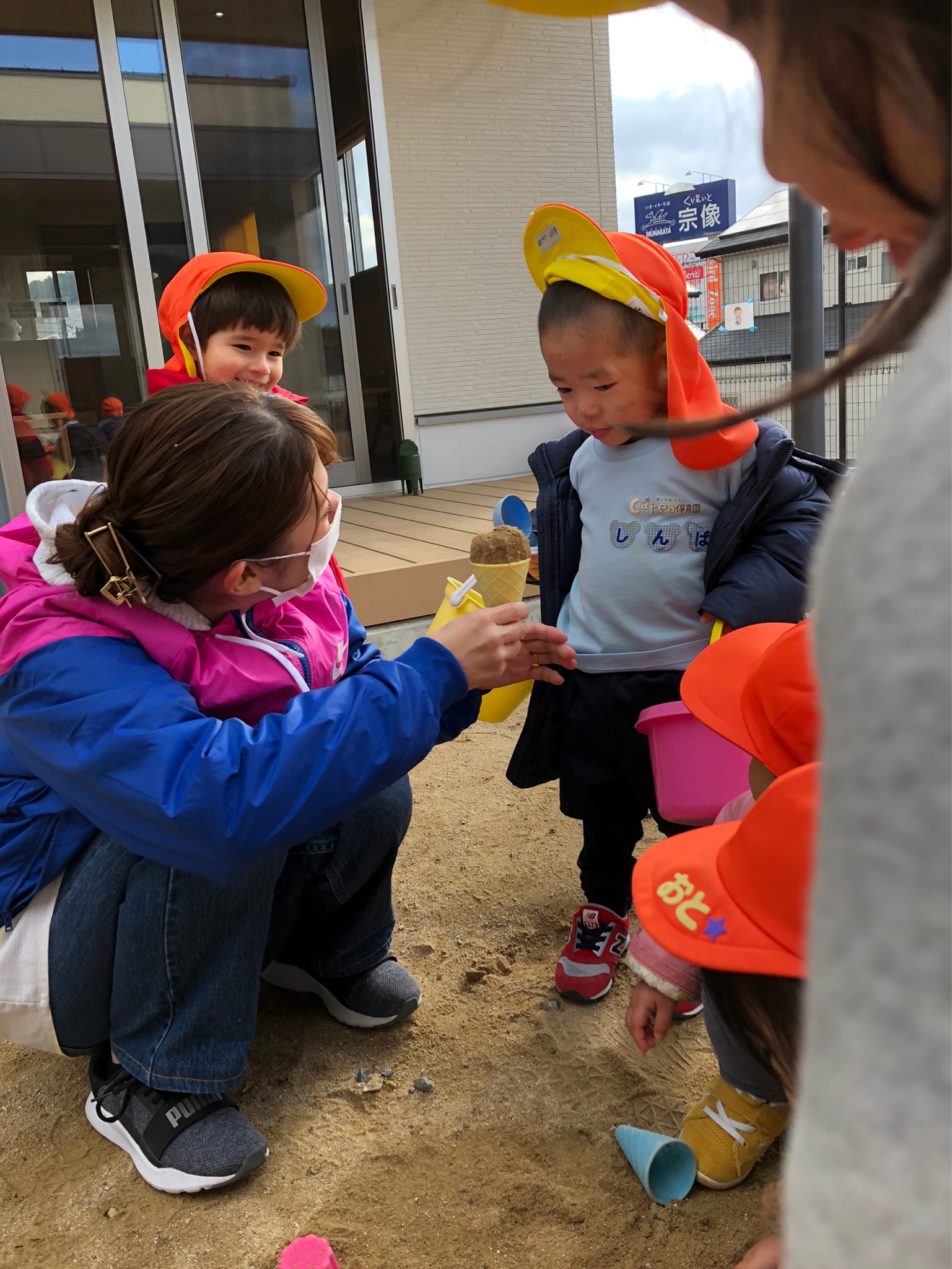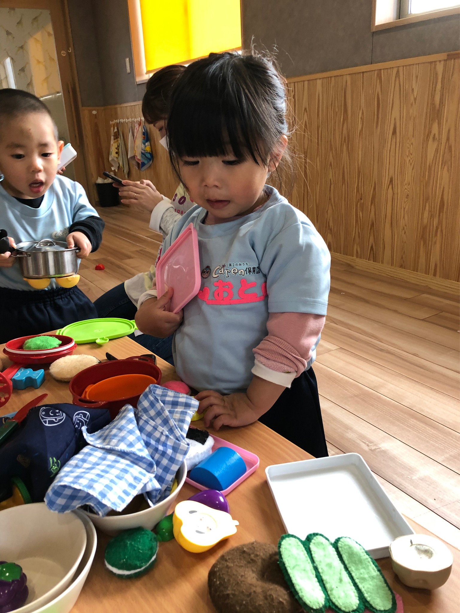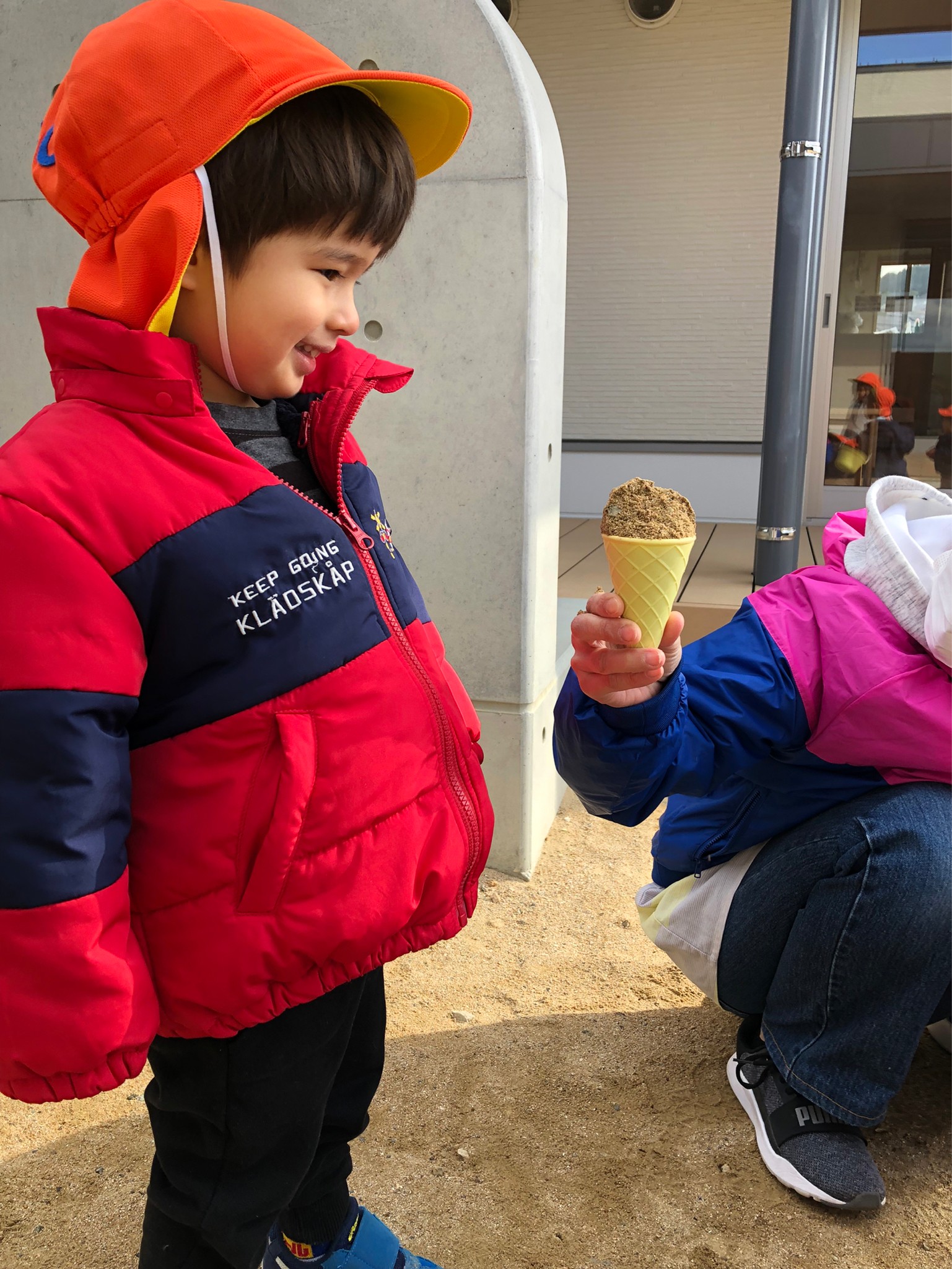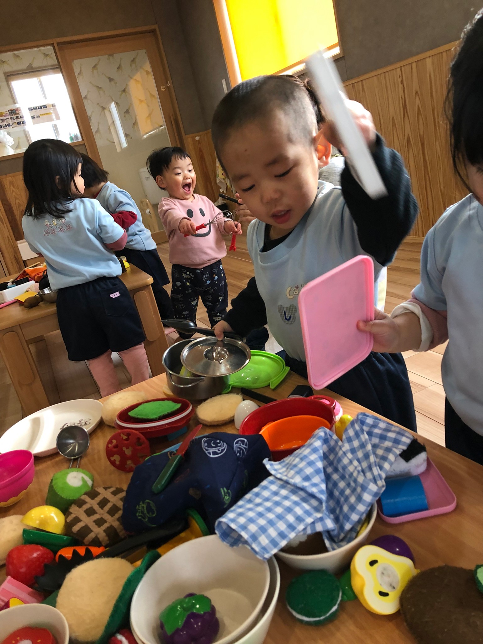 スコップやカップを使ってアイスクリームを作って楽しく遊ぶ様子の子どもたちでした!その後はままごとを出して仲良く遊んでいました〜!🥰うさぎ、こあら、きりん
