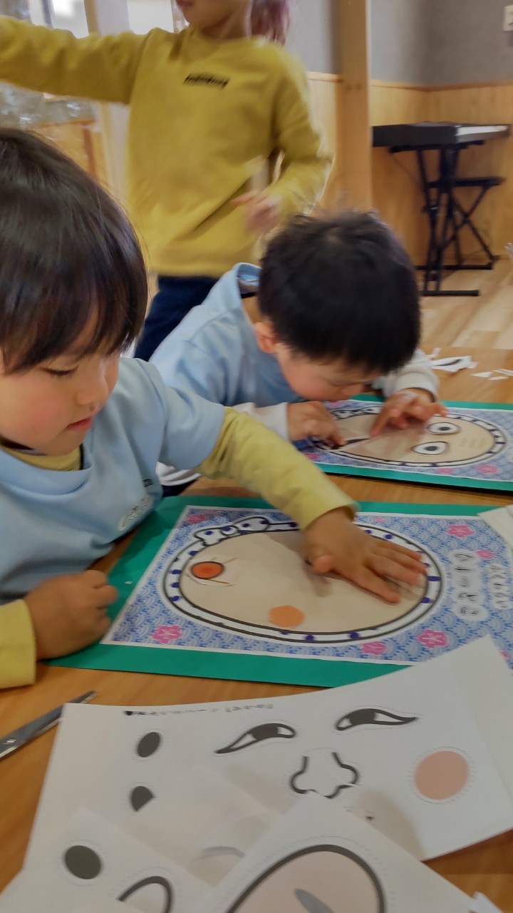 今日は福笑い作りとスライム作りました。福笑いはパーツはこあらぐみ、きりんぐみは自分達でハサミを使って切る事ができていたました🙂事前にハサミの使い方、持ち方を話ていく。個性のでた福笑いができた。そのあとはスライム作りをしました。何色にするか決めたりたくさん混ぜたりと楽しく作ることができていました🙂【くりえいと園の今日の給食です】