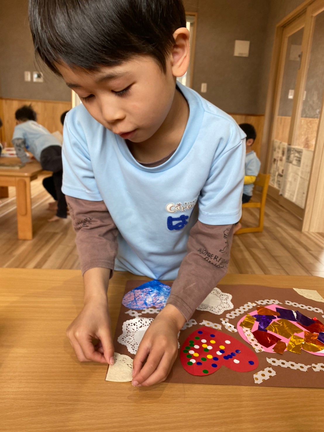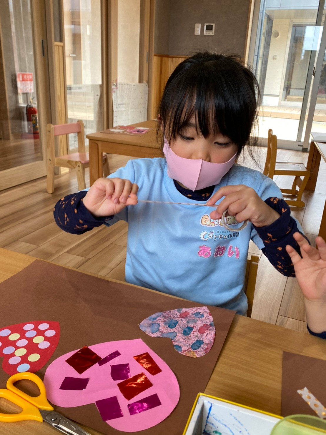角と角を綺麗に揃えて貼り合わせたり、ハサミを使ってハートの形に切ることが出来ました🤎✨【くりえいと園の今日の給食です】
