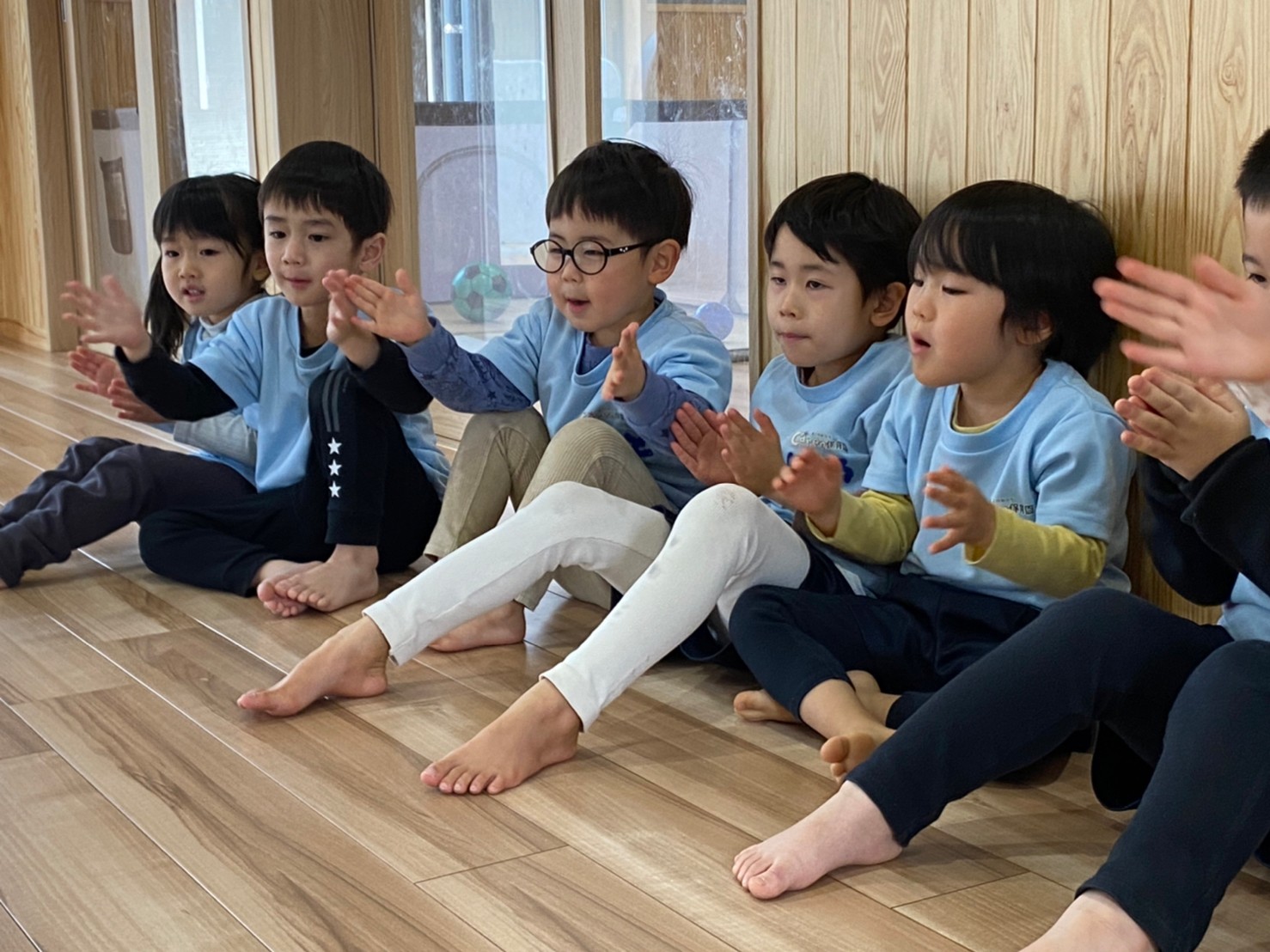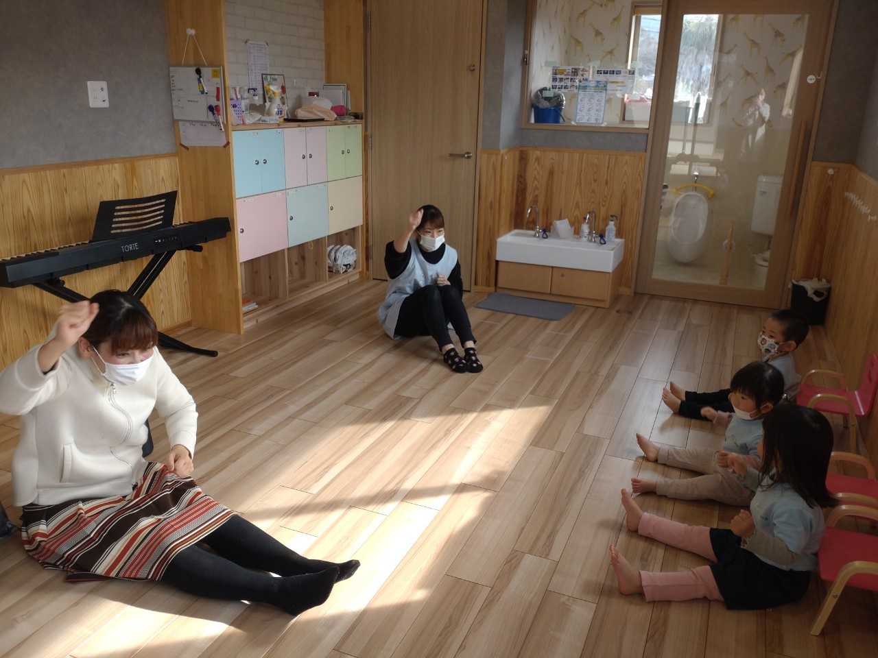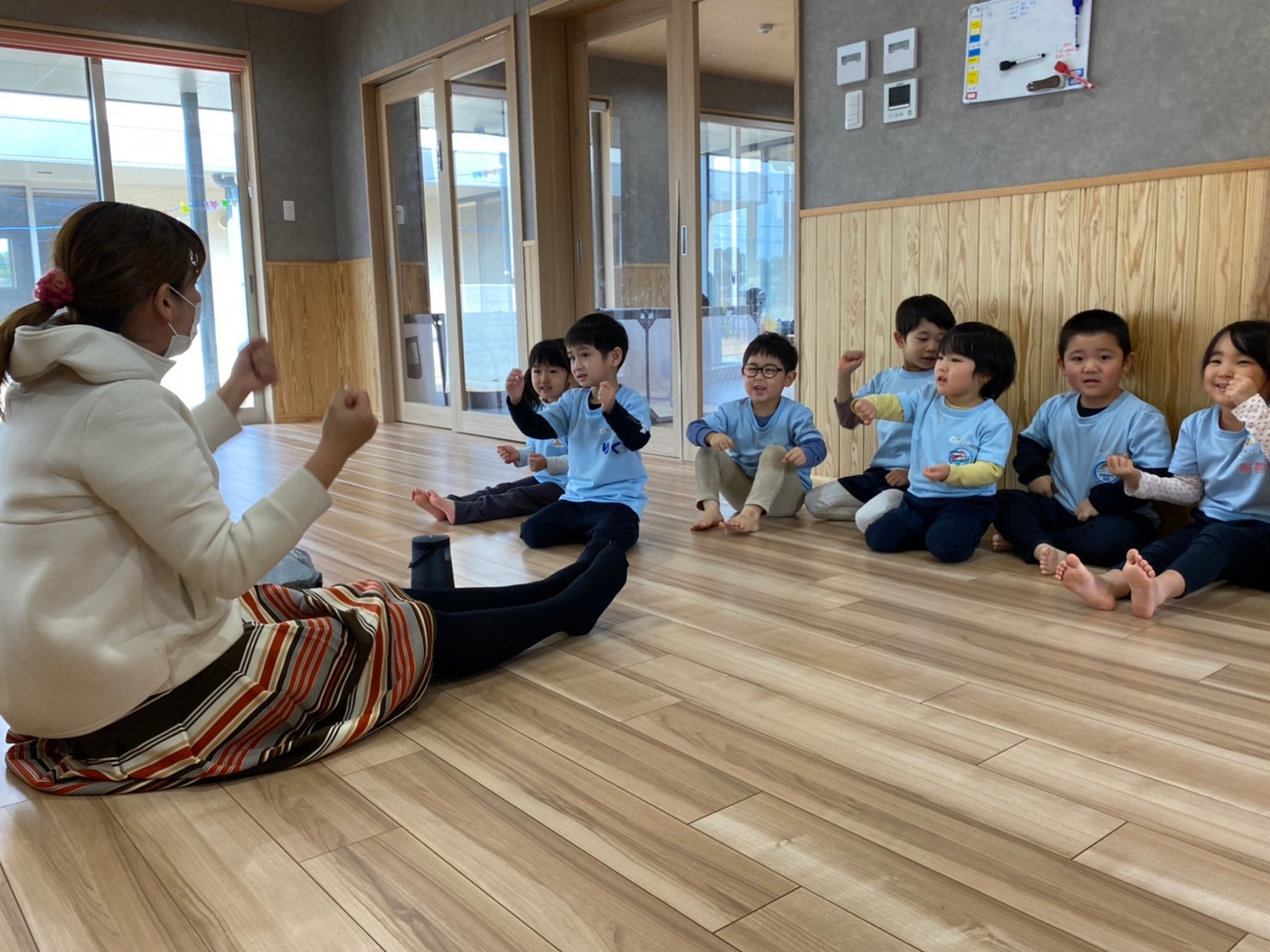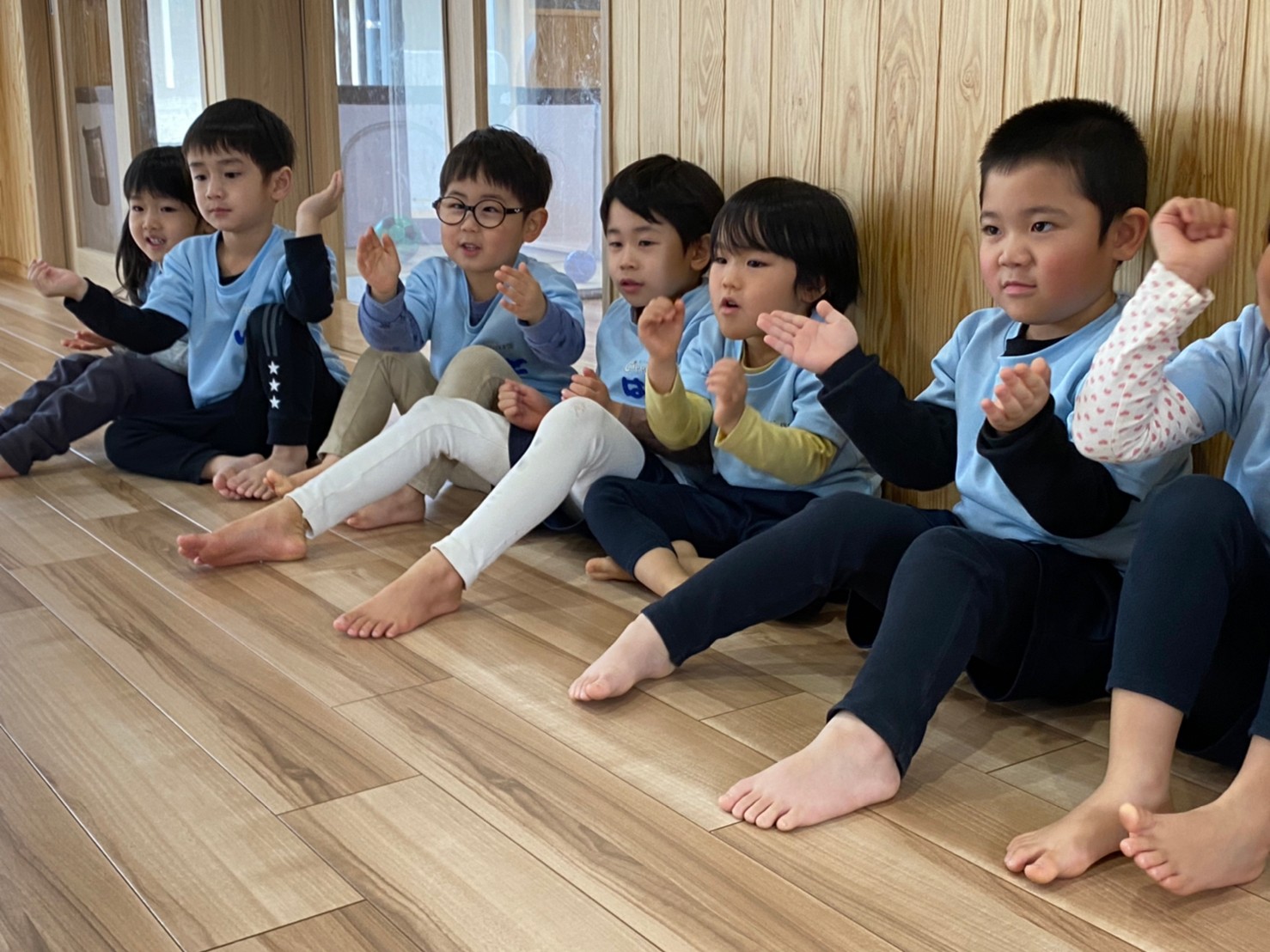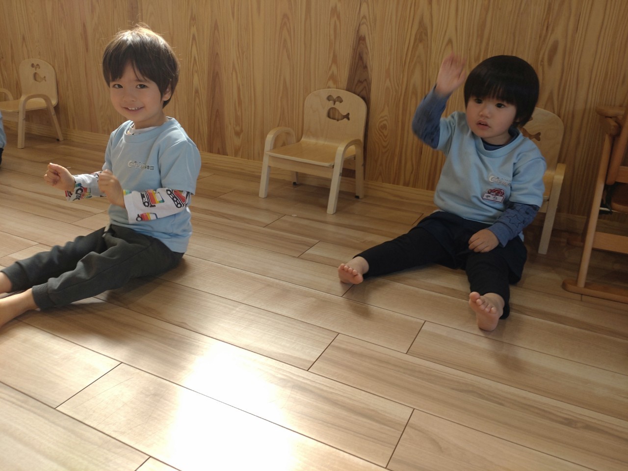 今日はリトミックに参加しました🎶絵本読み聞かせでは好きな本を自分達で選び、とっても集中して見ていました💕形当てゲームでは「まる❣️」「さんかく❣️」と形が分かり、張り切って答えるお友だちもいましたよ✨「あたまかたひざぽん♪」「バスにのってゆれてる🚌」の歌に合わせてノリノリで身体を動かす姿が可愛かったです🥰