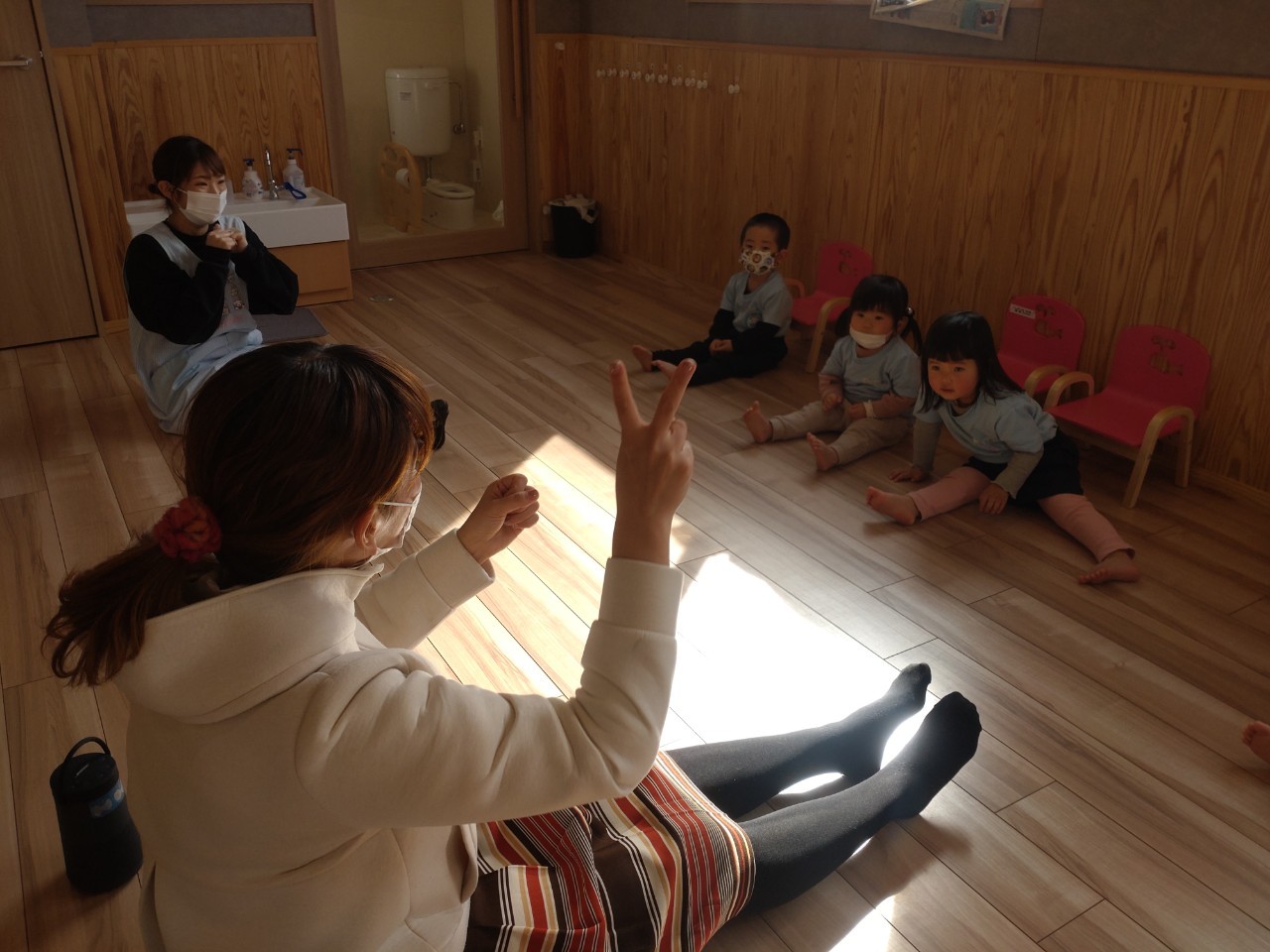 その後は、みんなの大好きなはらぺこあおむしの歌を歌ったり、バスにのっての歌を歌い大はしゃぎの子どもたちでした!