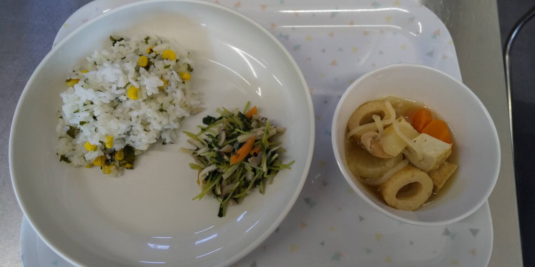 その後はひよこ組さんと合同で公園に行き、自然に触れながら楽しく遊ぶ様子が見られました!【くりえいと園の今日の給食です】