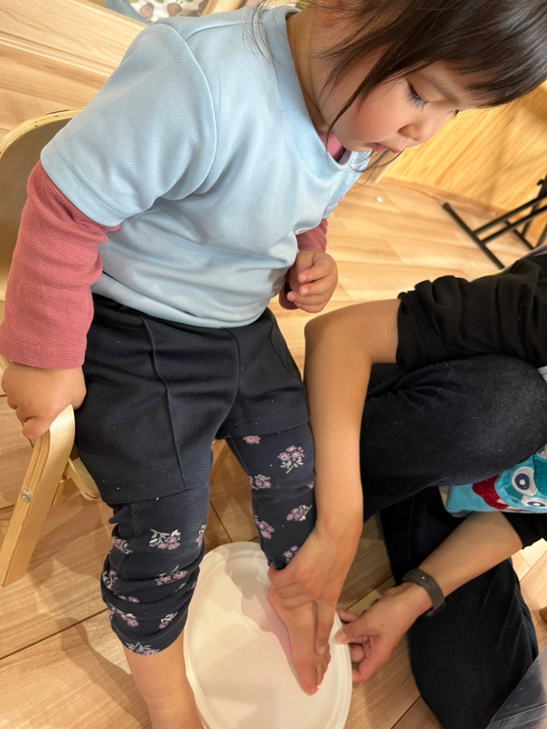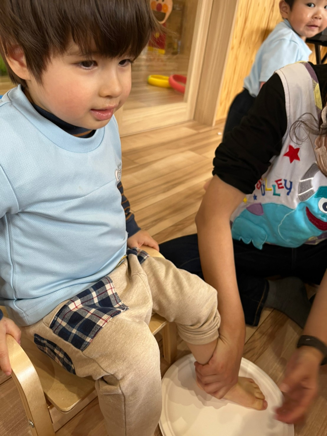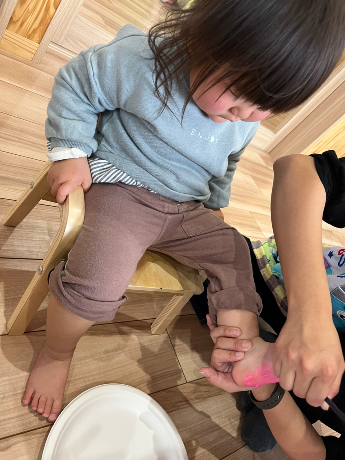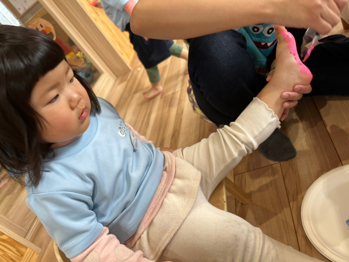 🎎お雛様製作の足スタンプもかわいいものができました❤️😎りす、ぱんだ組😎