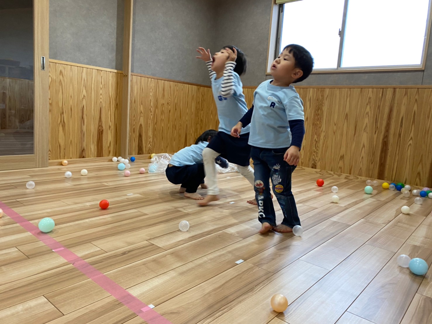 今日はマット山やトンネル、ミニ平均台に風船🎈と盛りだくさんで運動遊びをしました!アンパンマン体操で体をほぐして😆元気に遊びました✨