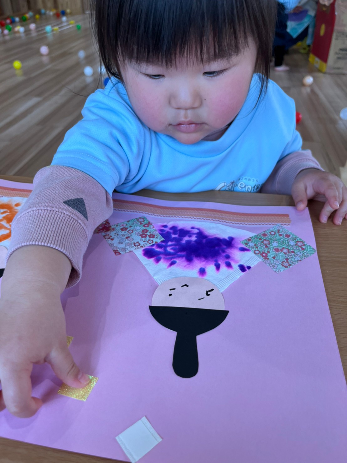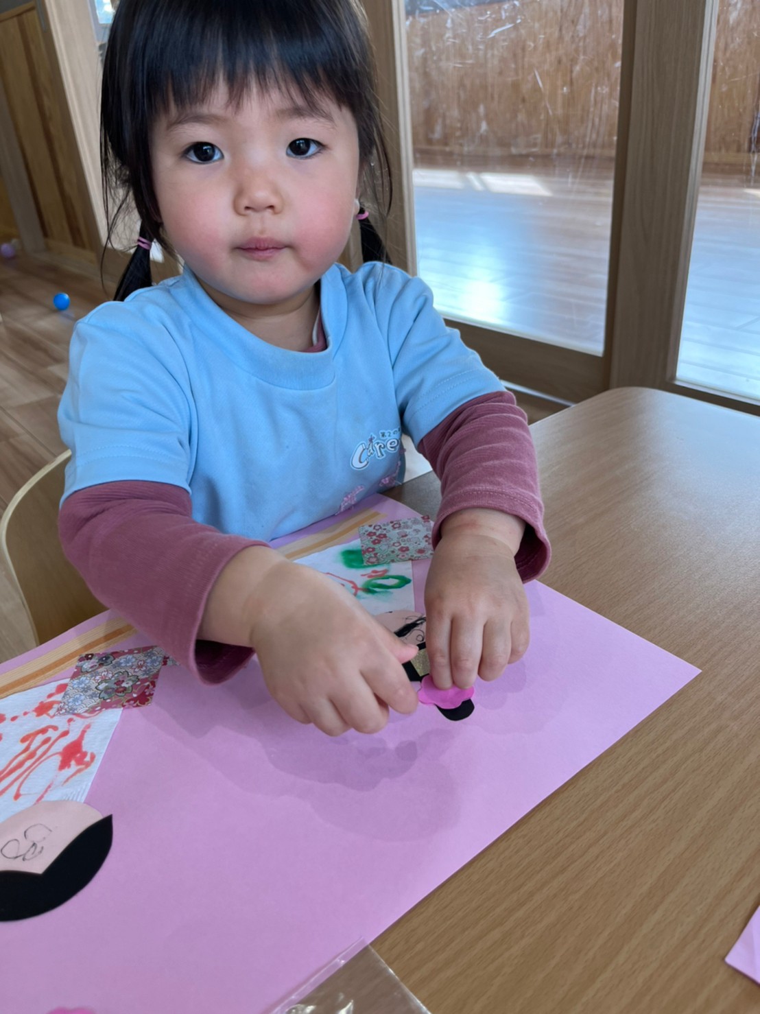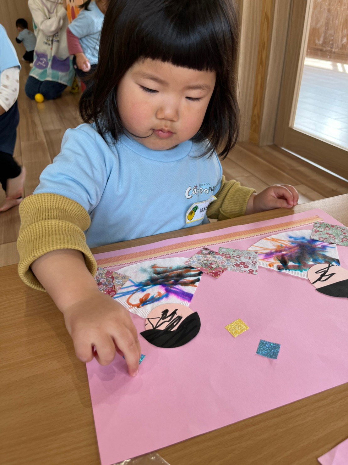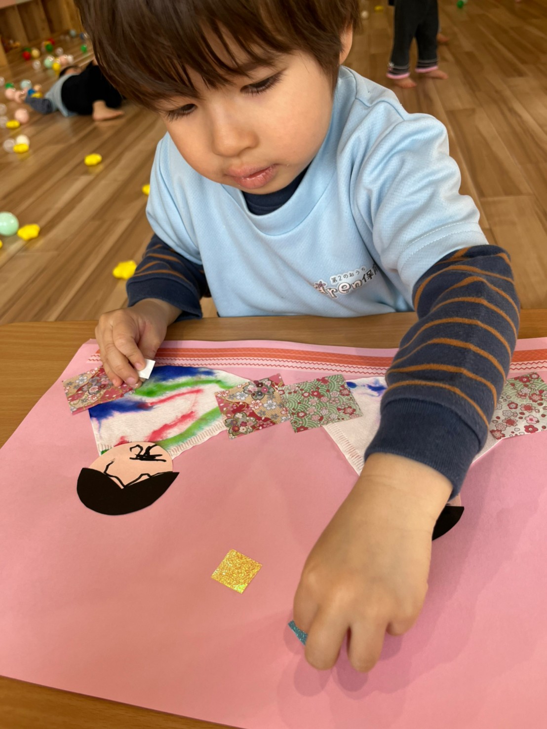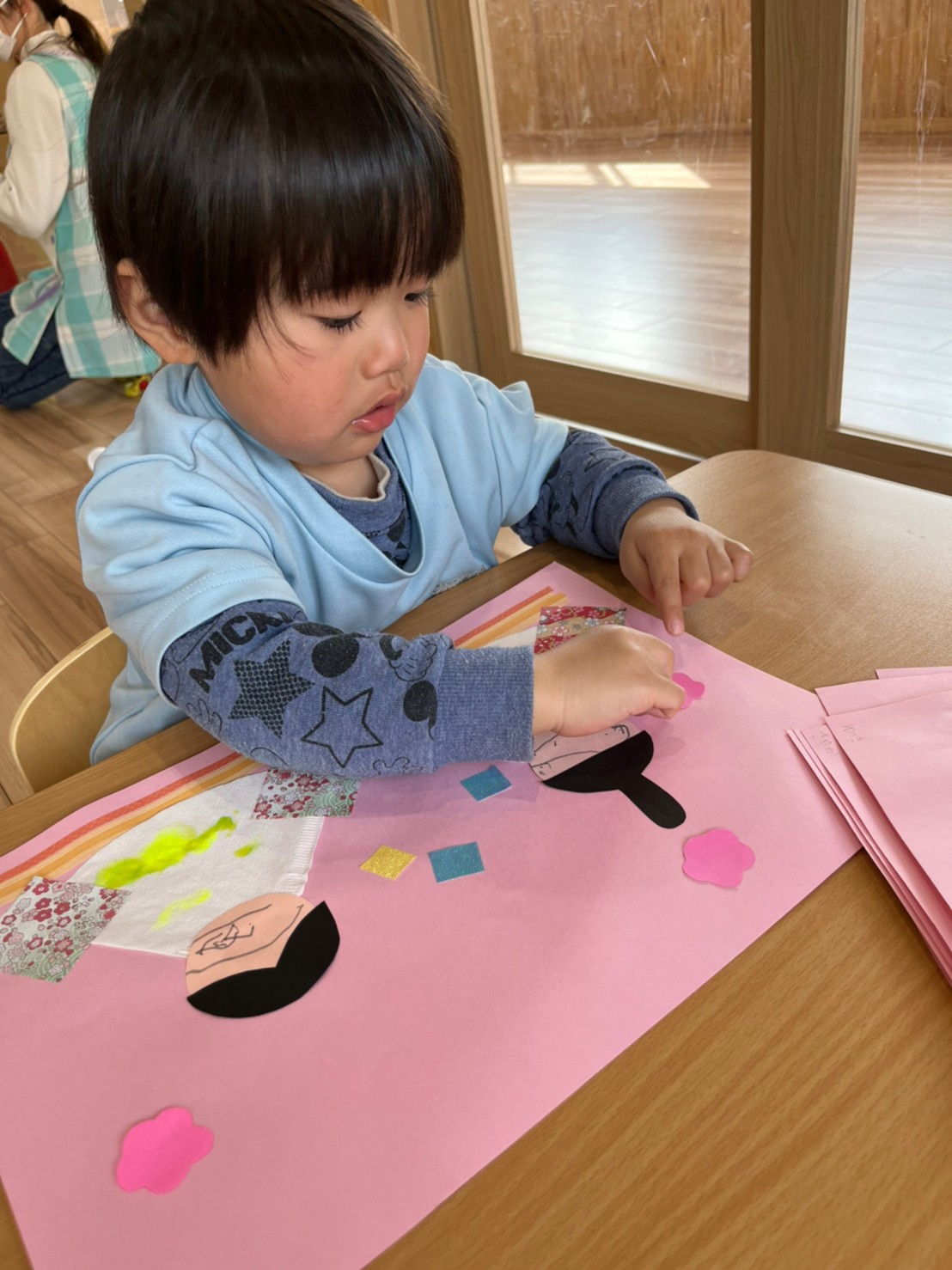 シール貼りやノリを使ってぺたぺたと上手に貼っていました😳
