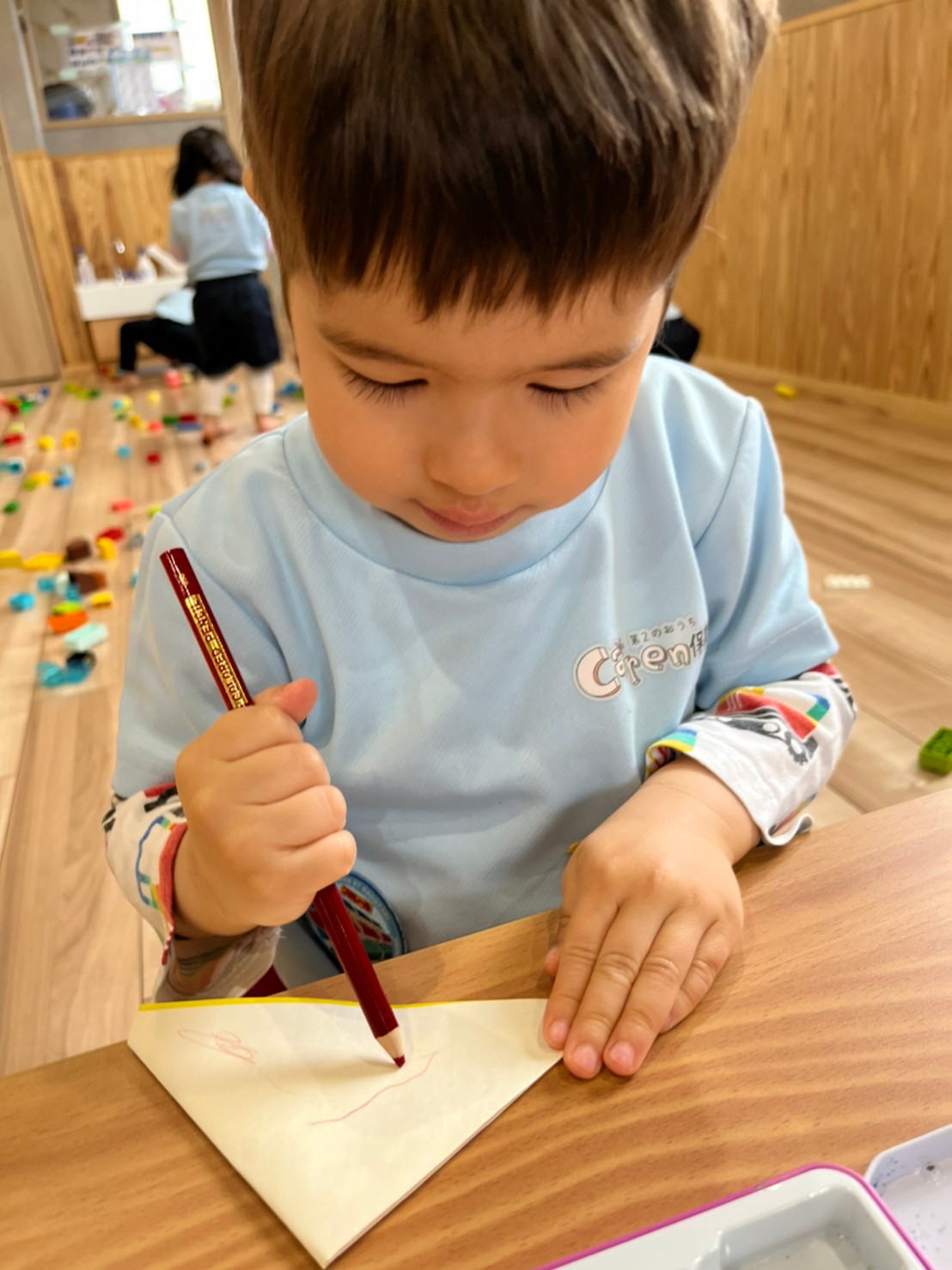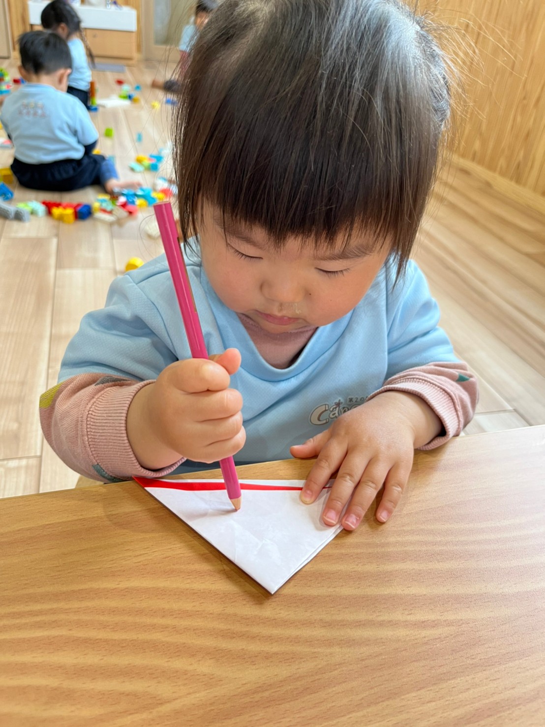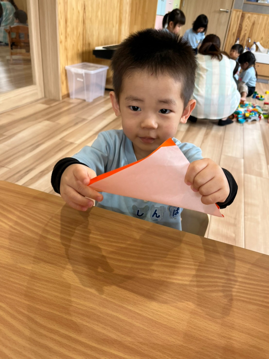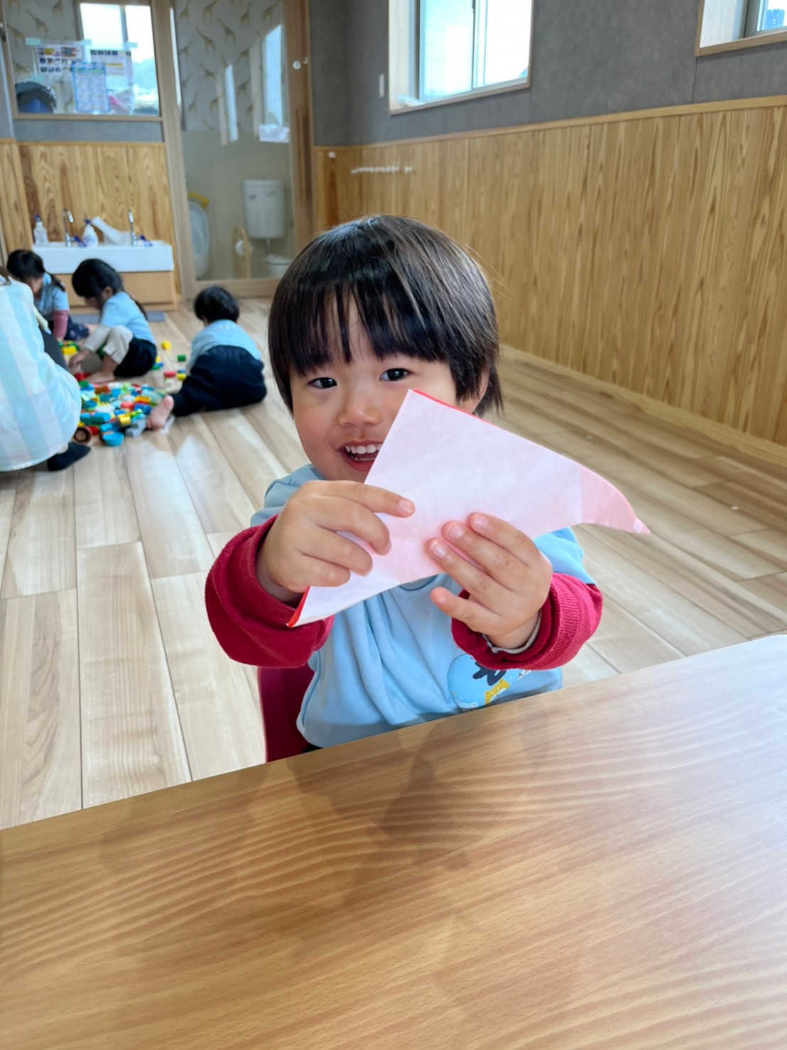 保育者の話を聞いて手先を使って上手に折っていました😎
