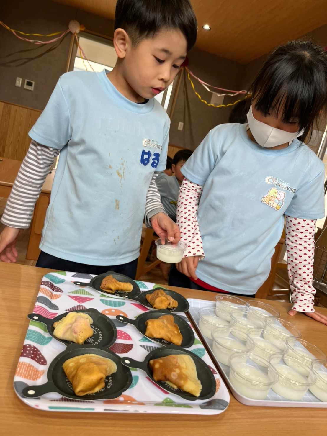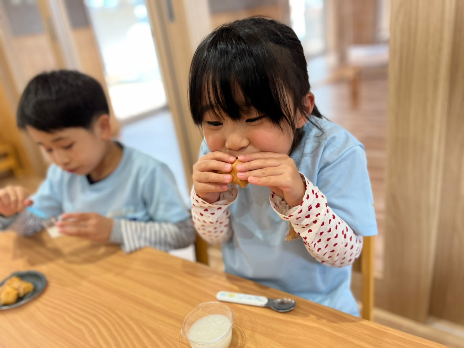 みんなで美味しいね〜!と言いながらデザートを頬張っていましたよ!🤭【くりえいと園の今日の給食です】