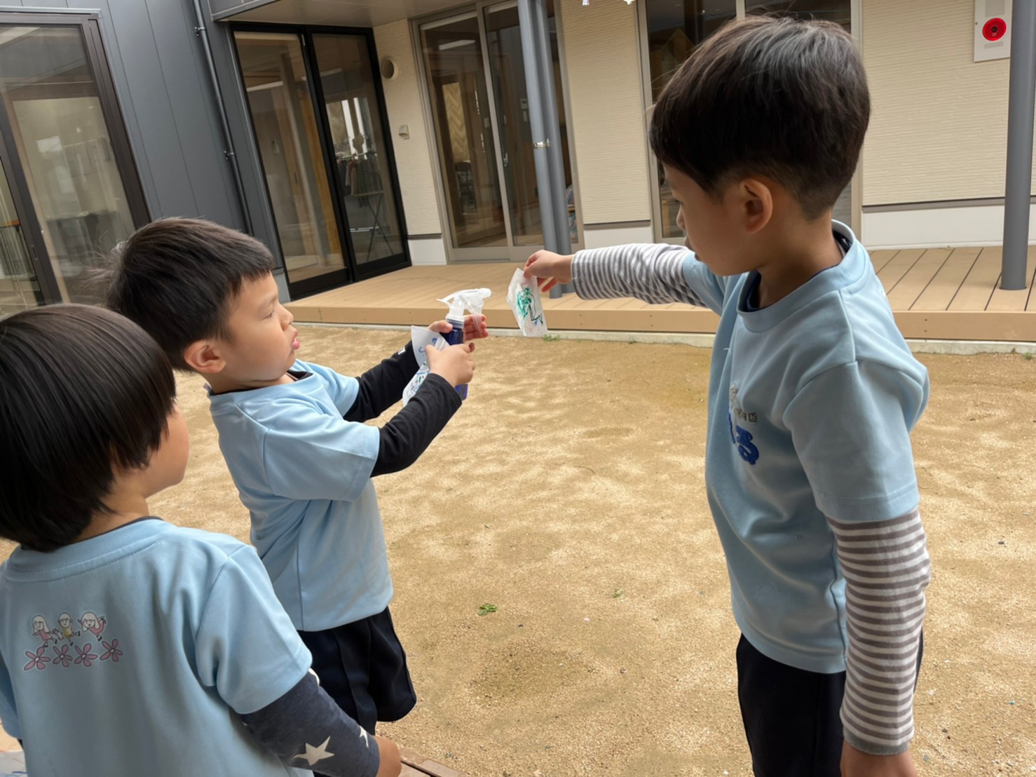 みんなで協力し合い、霧吹きをかけたり、お互いの絵をいいねと褒め合ったりして綺麗な滲み絵が出来ましたよ!😆💓