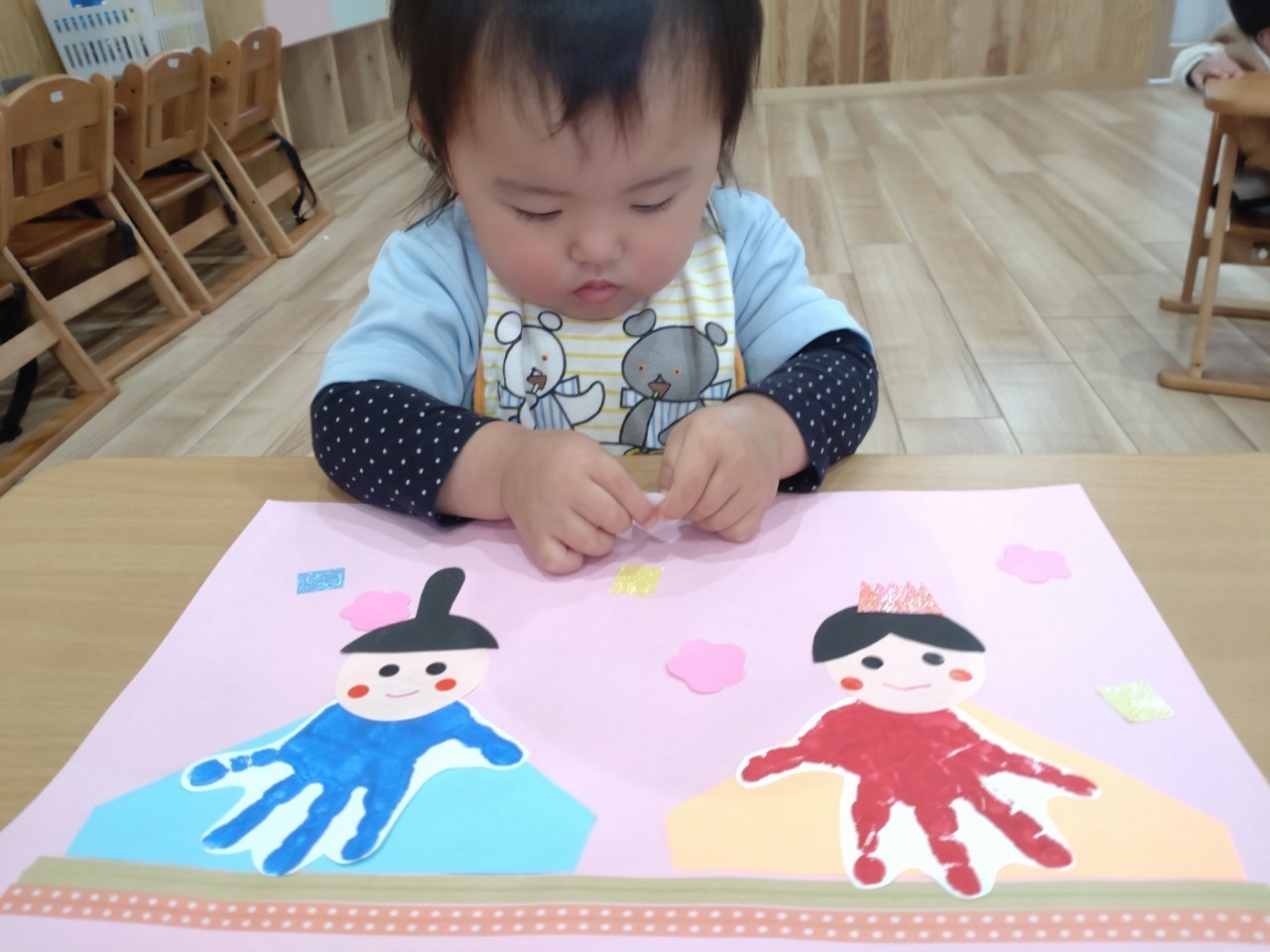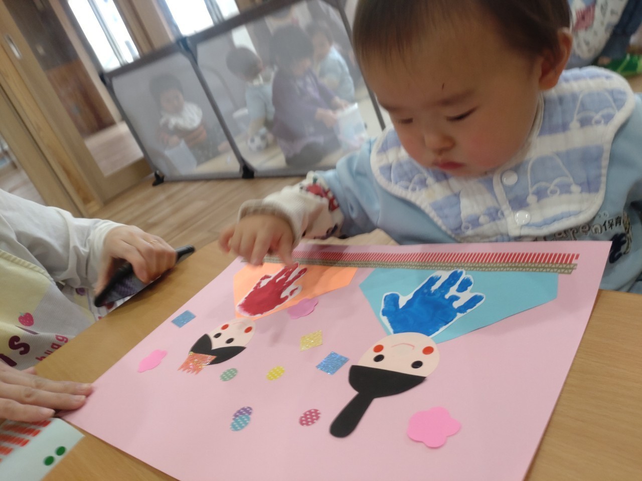 保育者と一緒に手先を使って上手に折り紙を折っていました😘