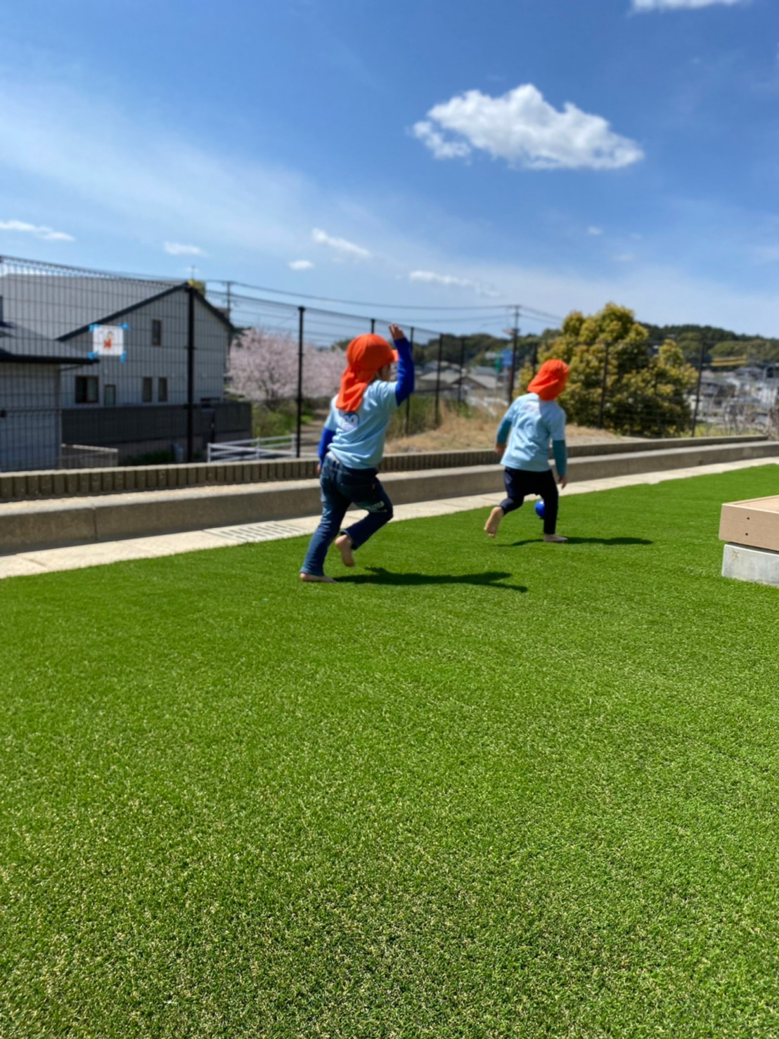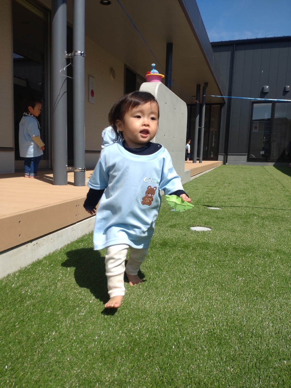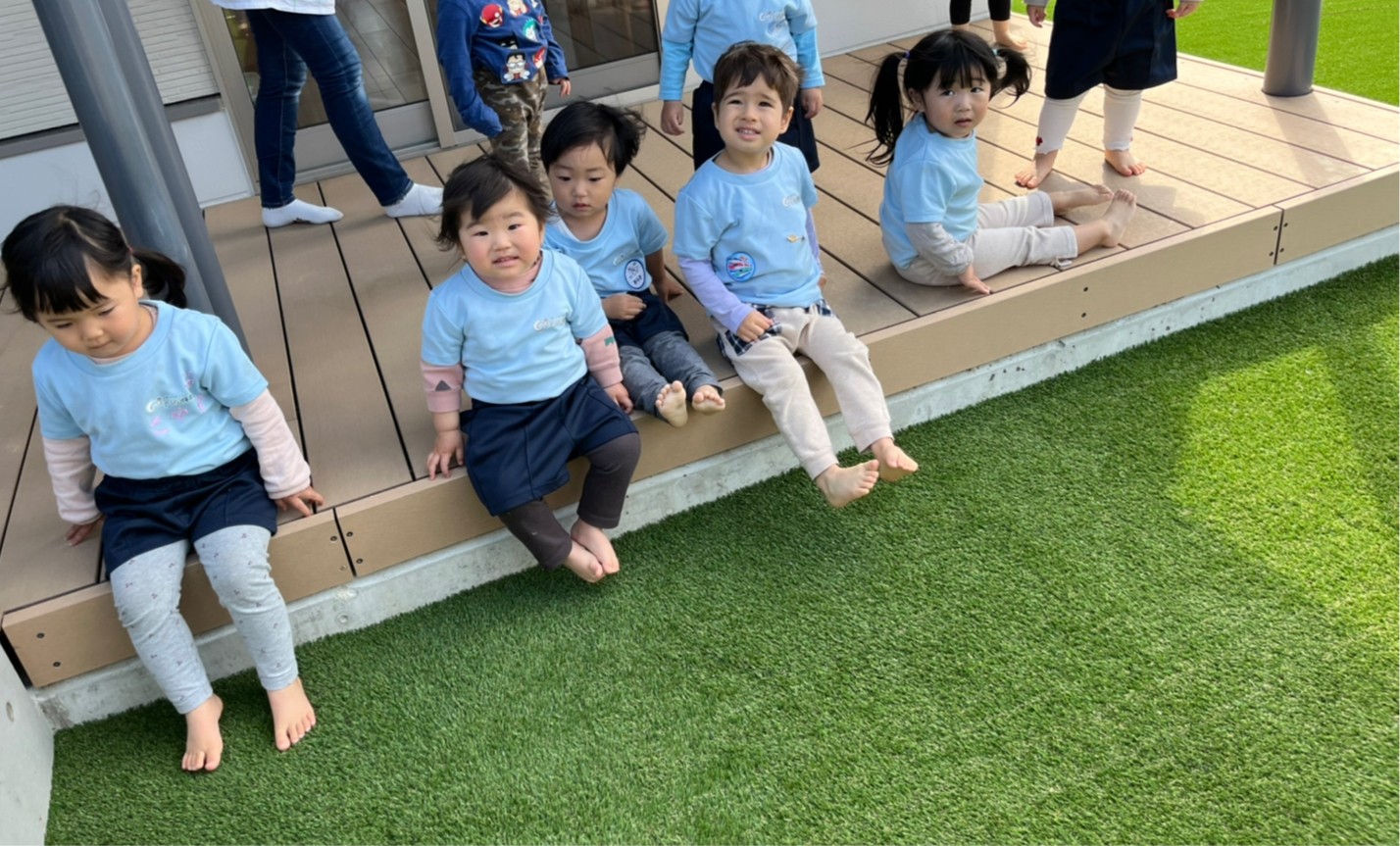 そして、保育園の園庭が今日から人工芝になり、大喜びの子どもたちでした💕