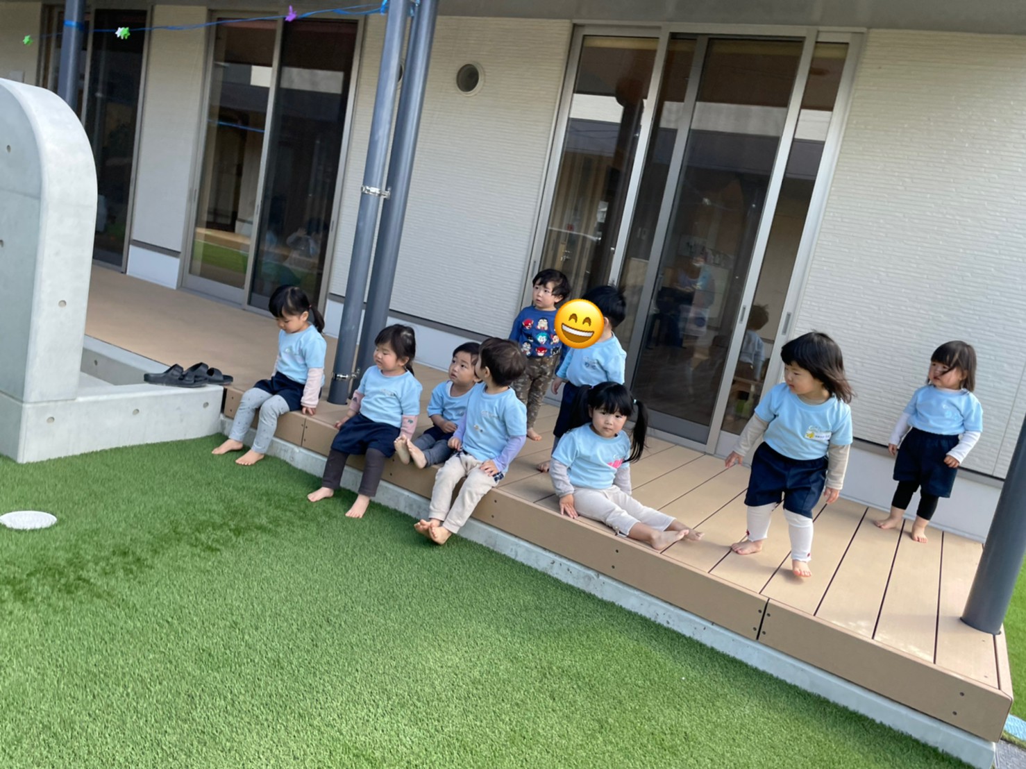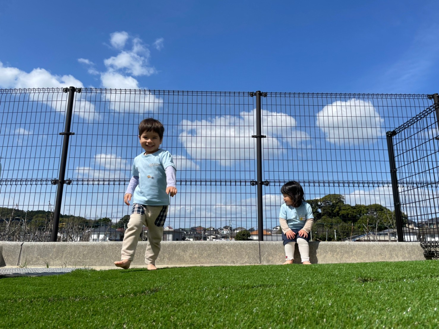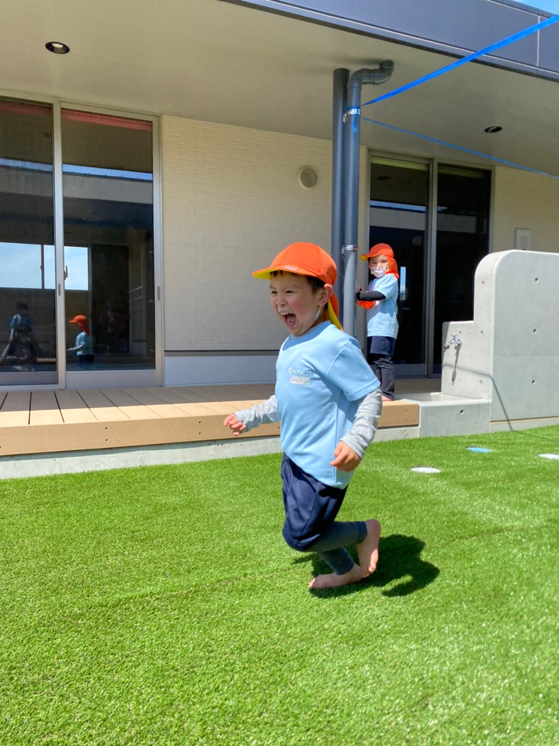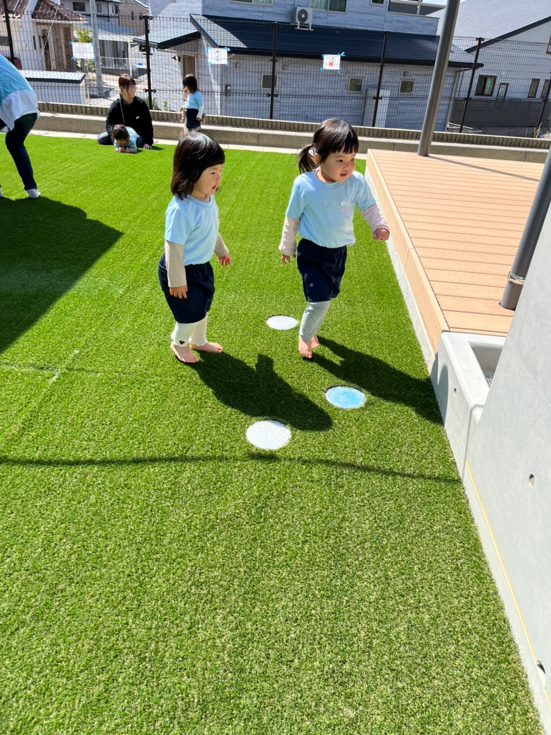 そして、保育園の園庭が今日から人工芝になり、大喜びの子どもたちでした💕