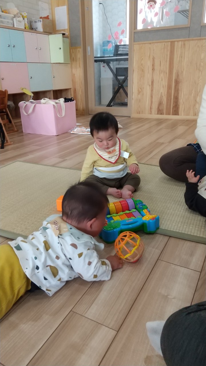 今日は新入児さんの初日でした!登園時に泣いたり思い出して泣いたりでしたが保育士に抱かれて少しずつ落ち着いて遊びはじめました🥲室内で玩具遊びをしたり、新しい芝生園庭で外気浴をして過ごしました✨😊🐿りす組🐿