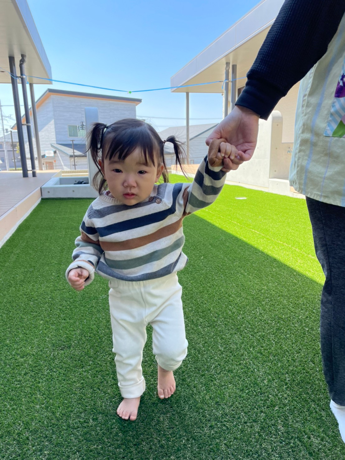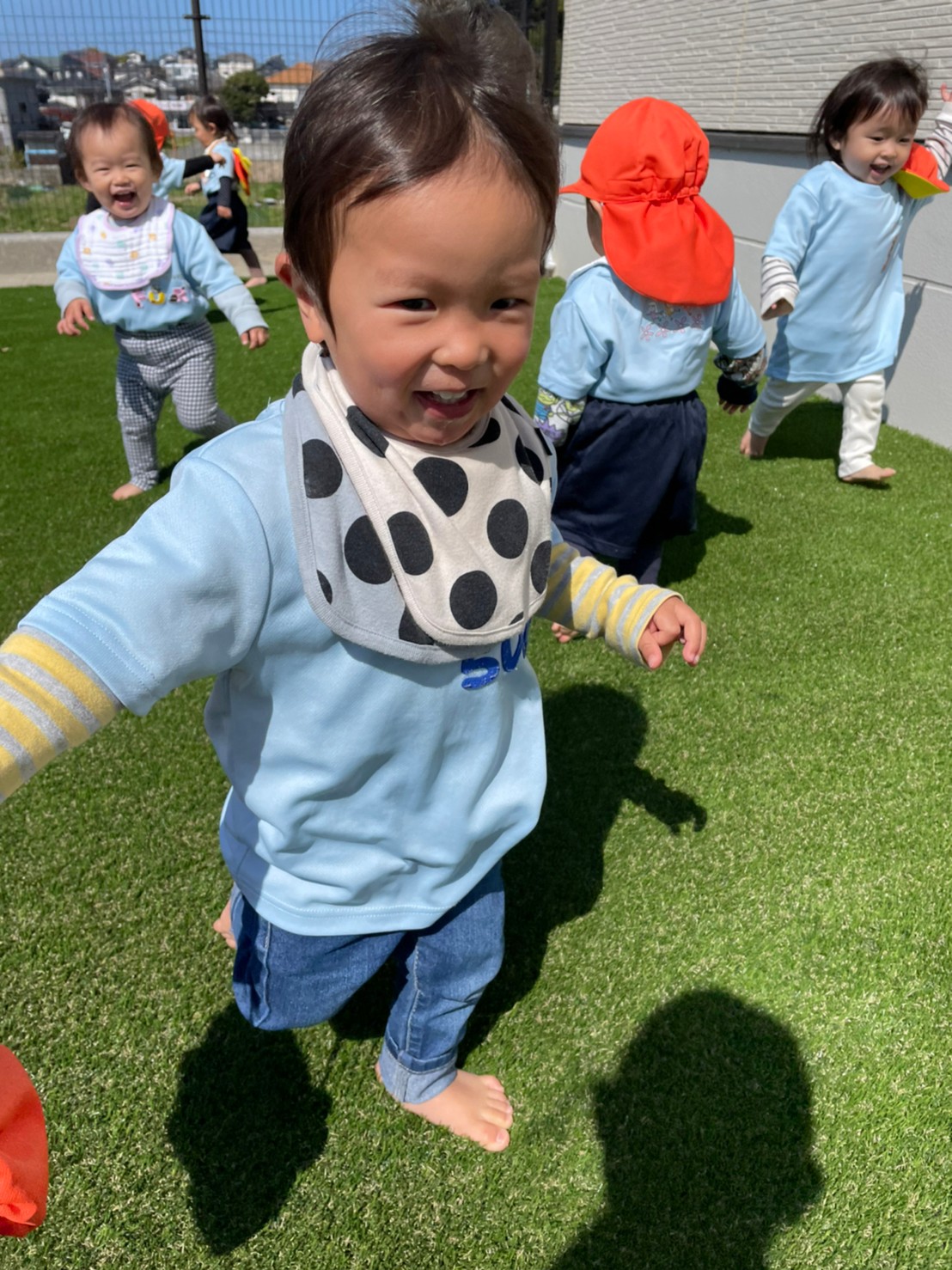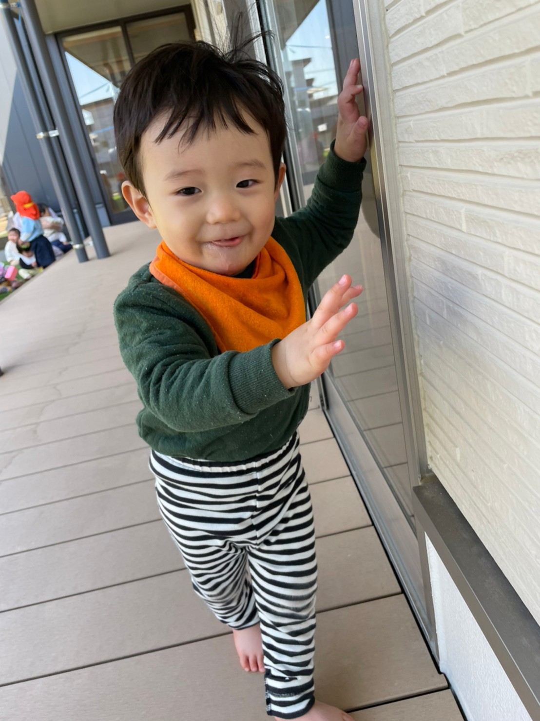 今日も涙の大合唱でしたが保育者に受けとめられ、抱かれながら少しずつ落ちついて玩具で遊んたり朝の会に参加しました。🥲その後は園庭で外気浴をしました✨