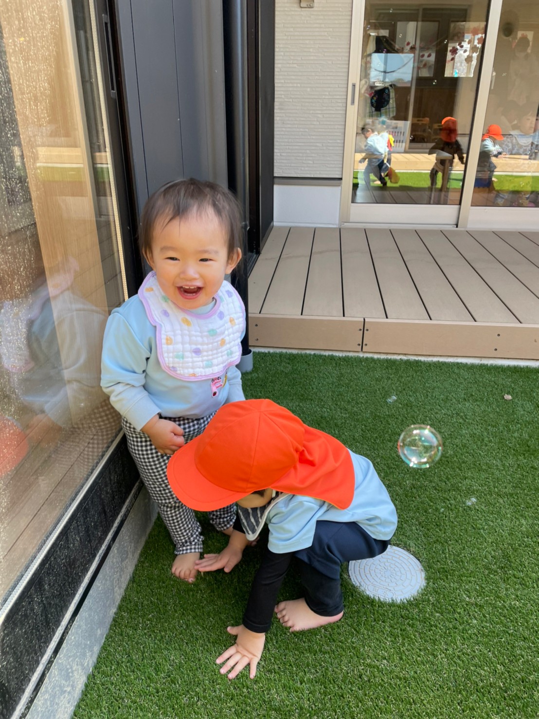 たくさんのシャボン玉を一生懸命追いかけて楽しむ姿がみられました🥰