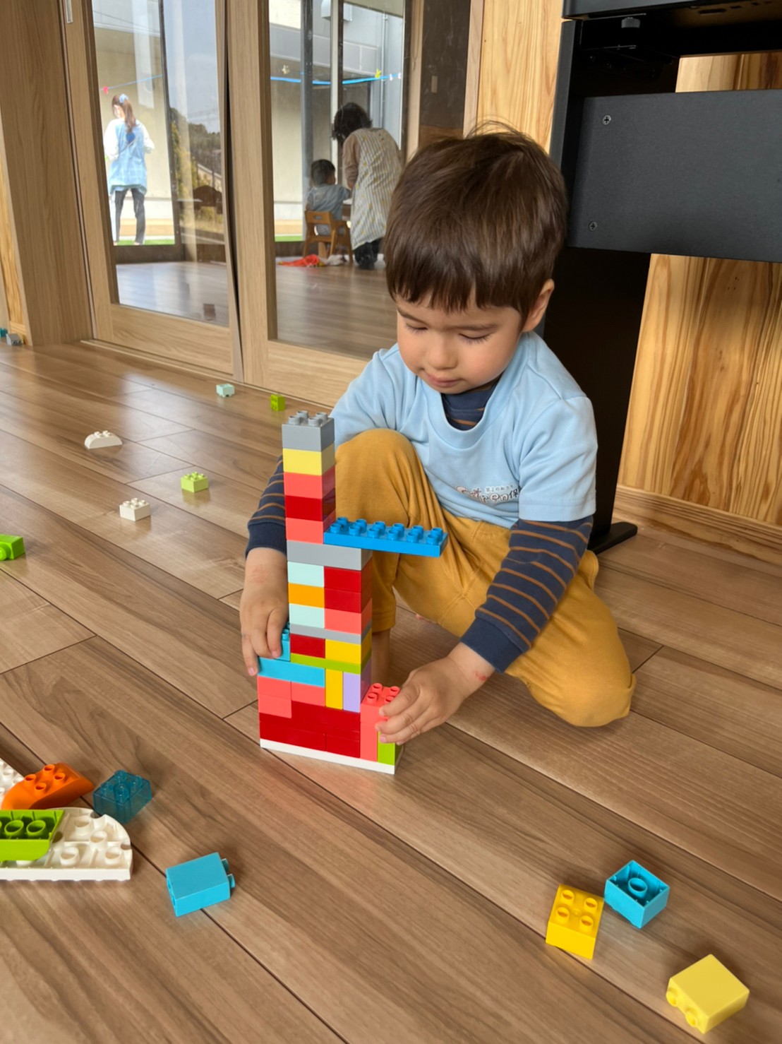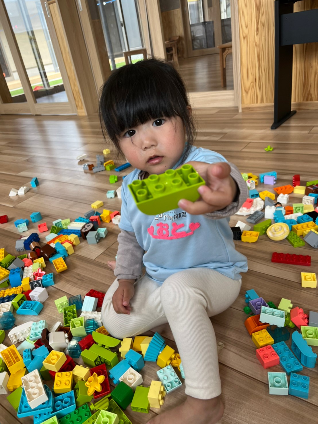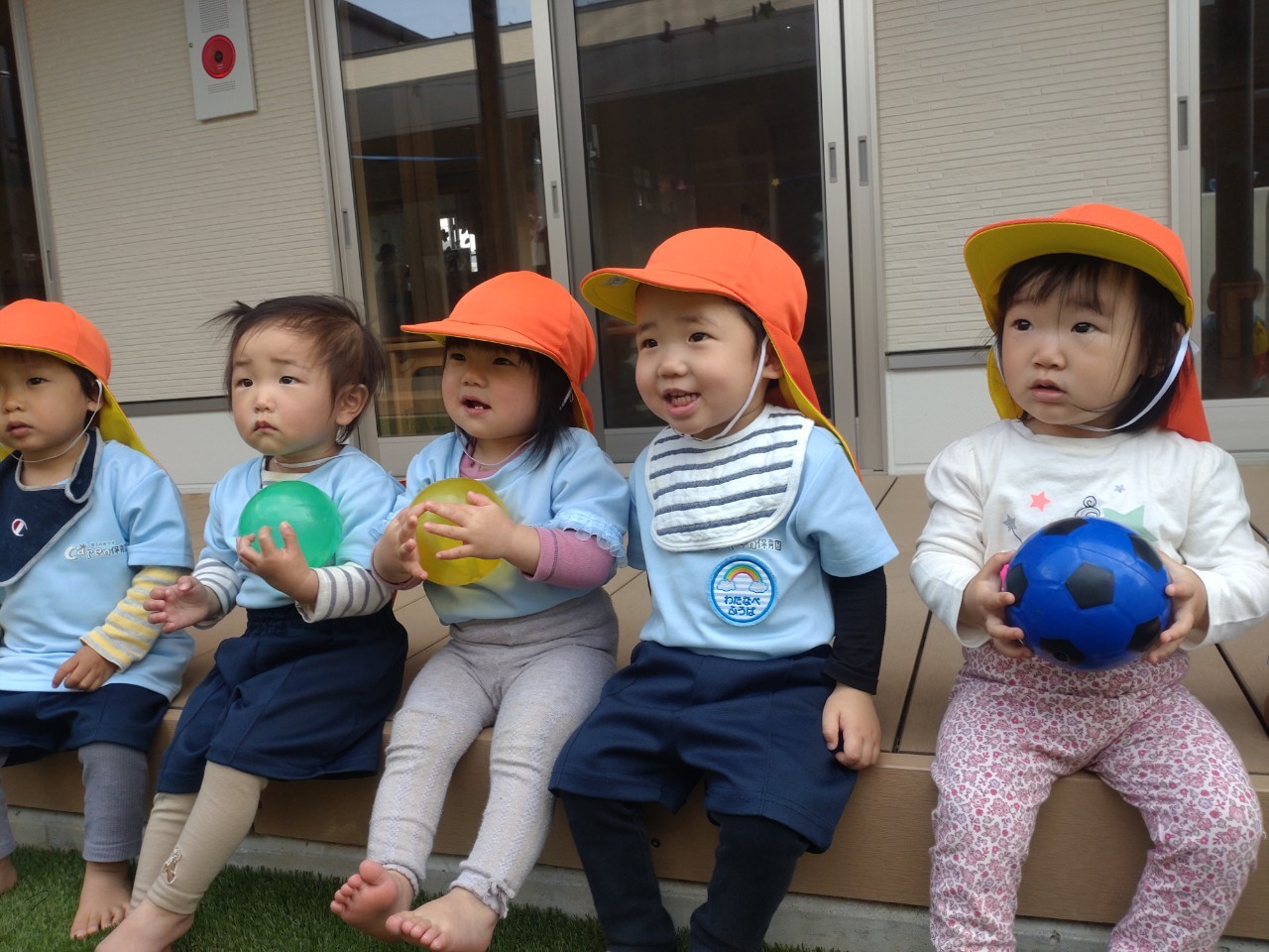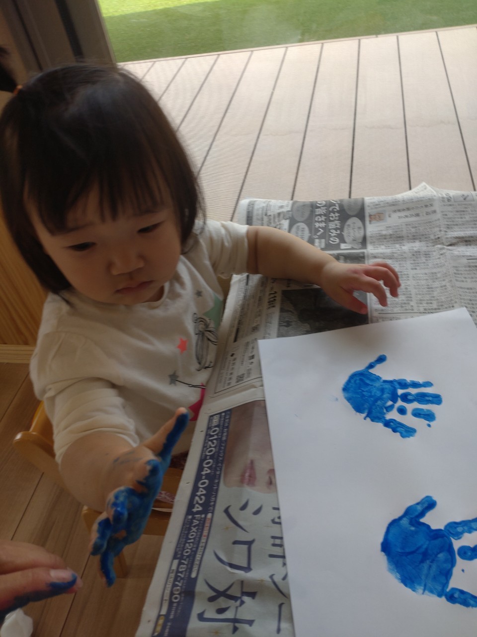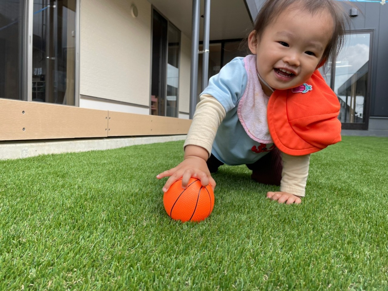 今日は季節の製作をしました✨手形を取ると、筆や絵の具の感触を不思議そうな顔で見るお友だちもいました🖌🎨園庭では、ボールを転がしたり大型ブロックを積み上げたりと、思い思いに楽しんで遊んでいましたよ🎶