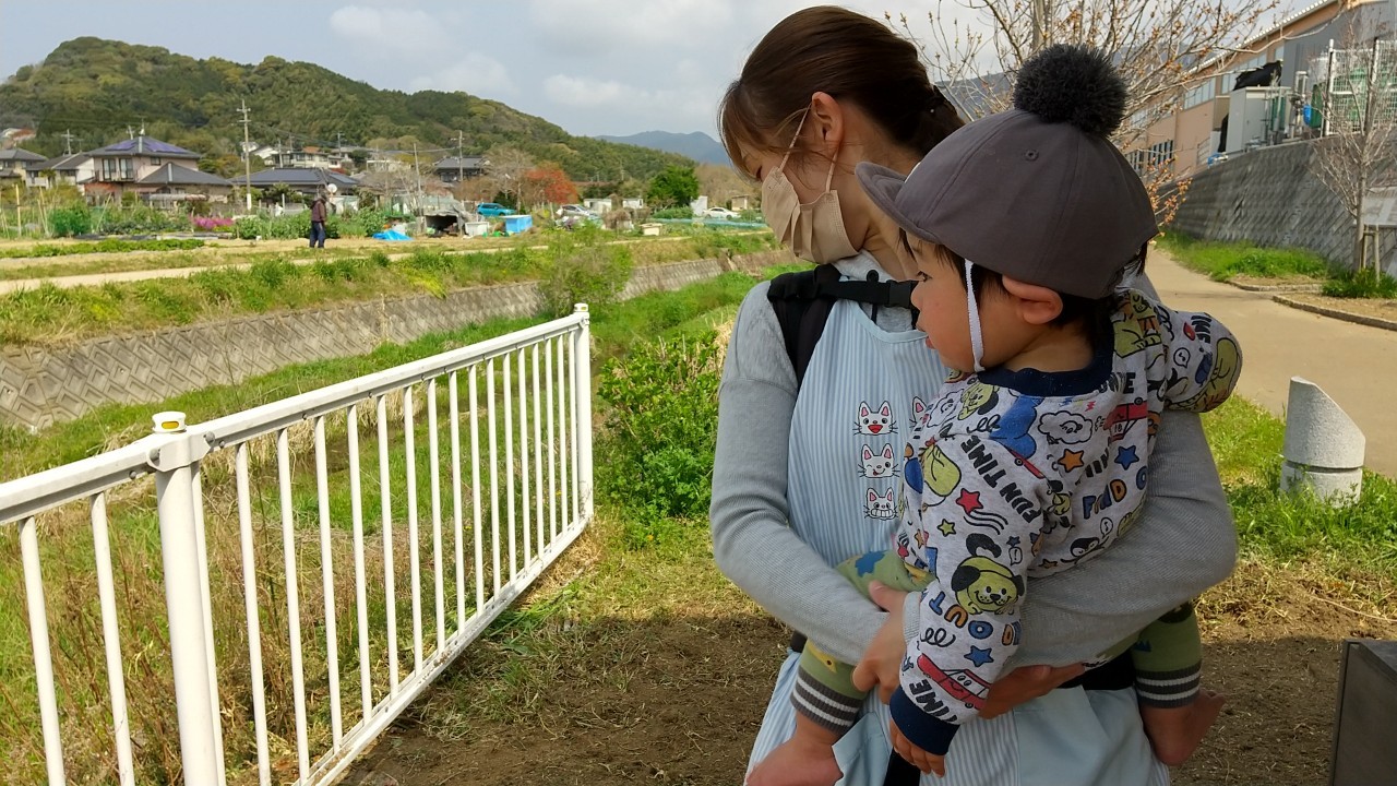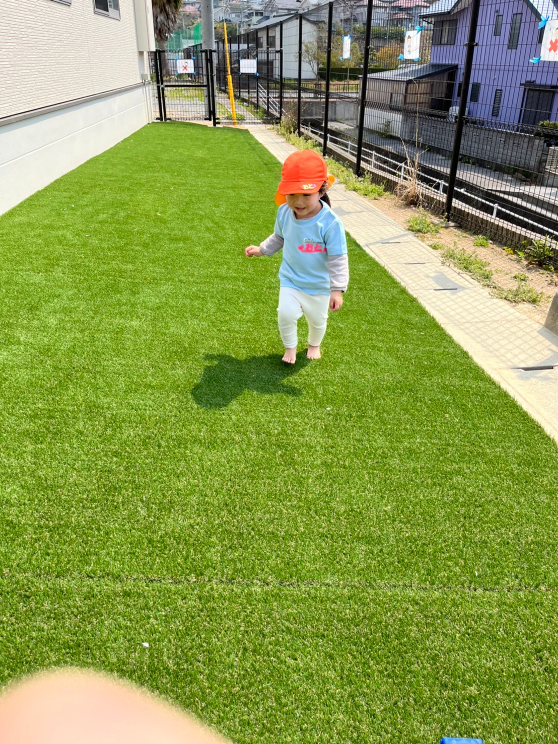 今日は朝の会の後園周辺をお散歩しました!春風を感じたり犬やねこを見つけたり、嬉しそうにバイバ〜イと手を振ったりして気分転換ができました😆