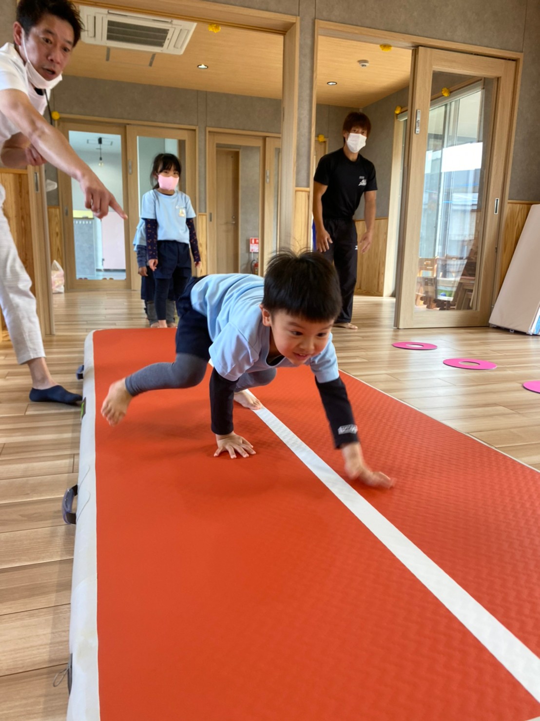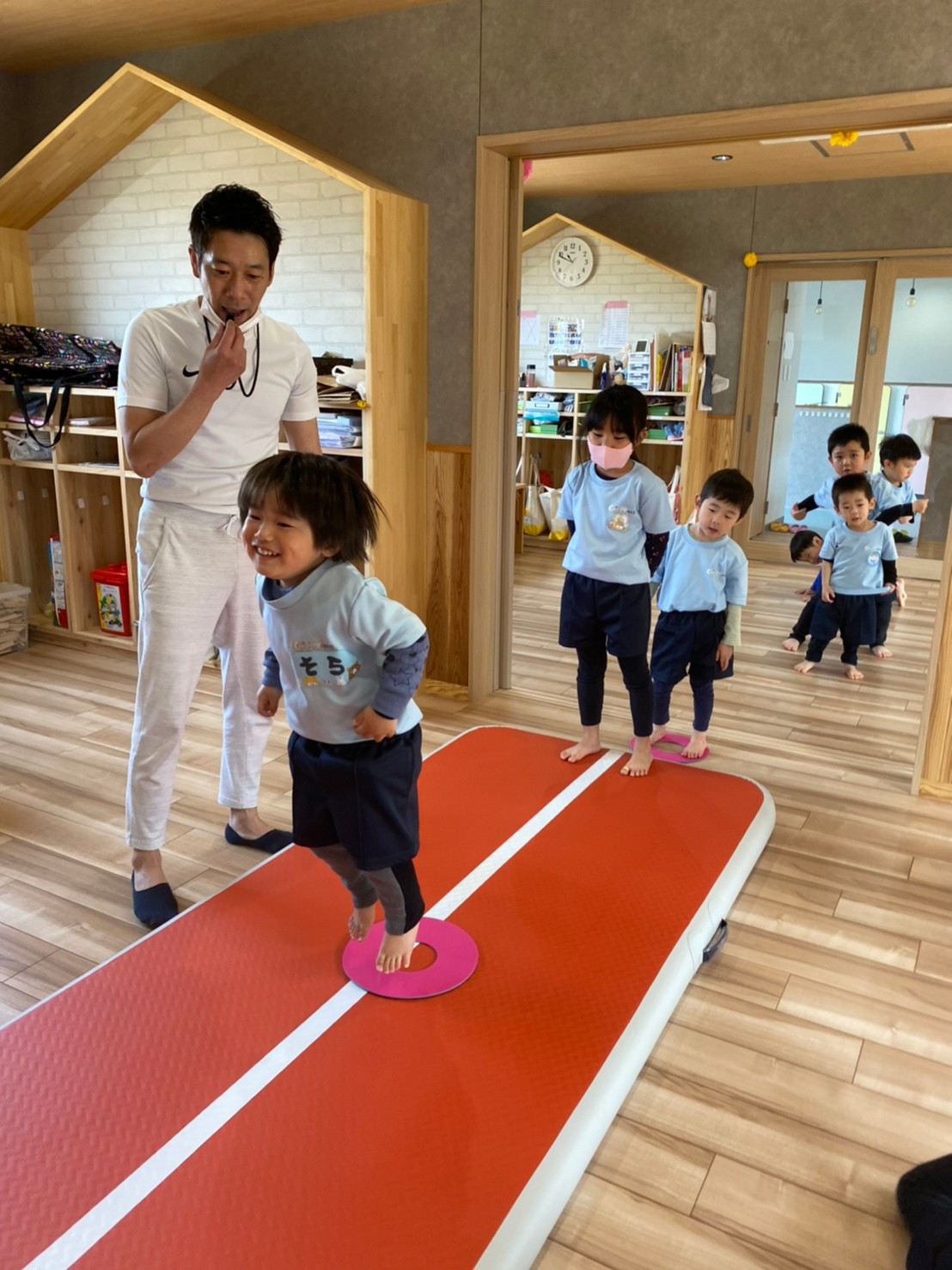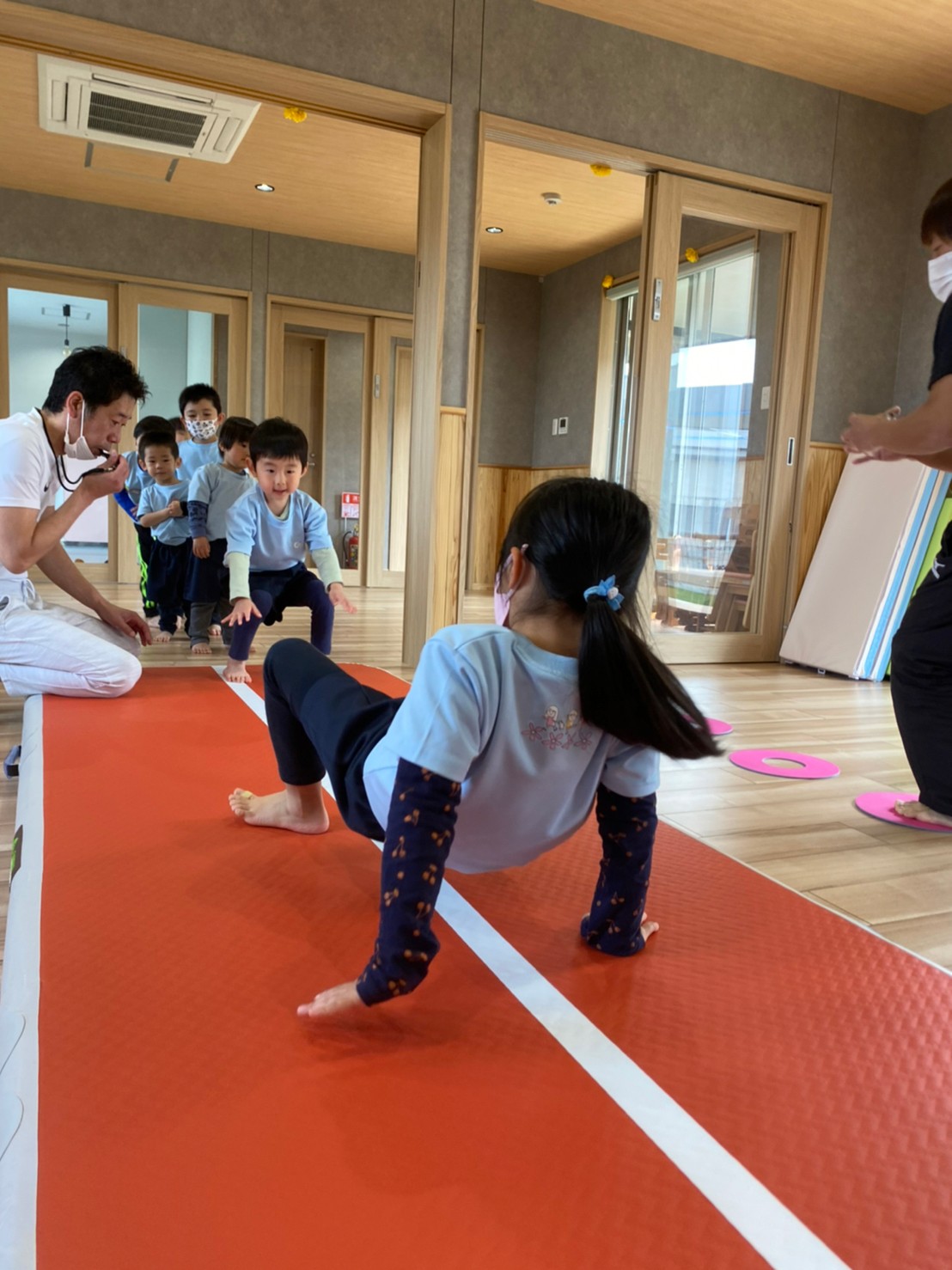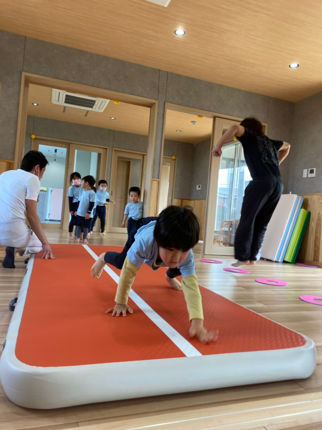新しく体操器具も届き、大きなトランポリンマットでジャンプをしたり、動物歩きをしたり、楽しみました😄