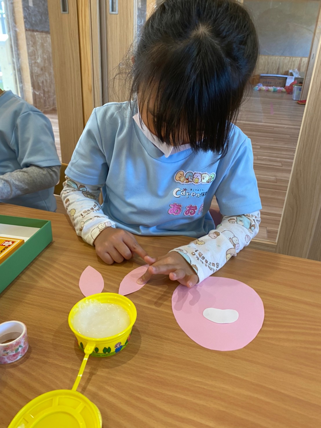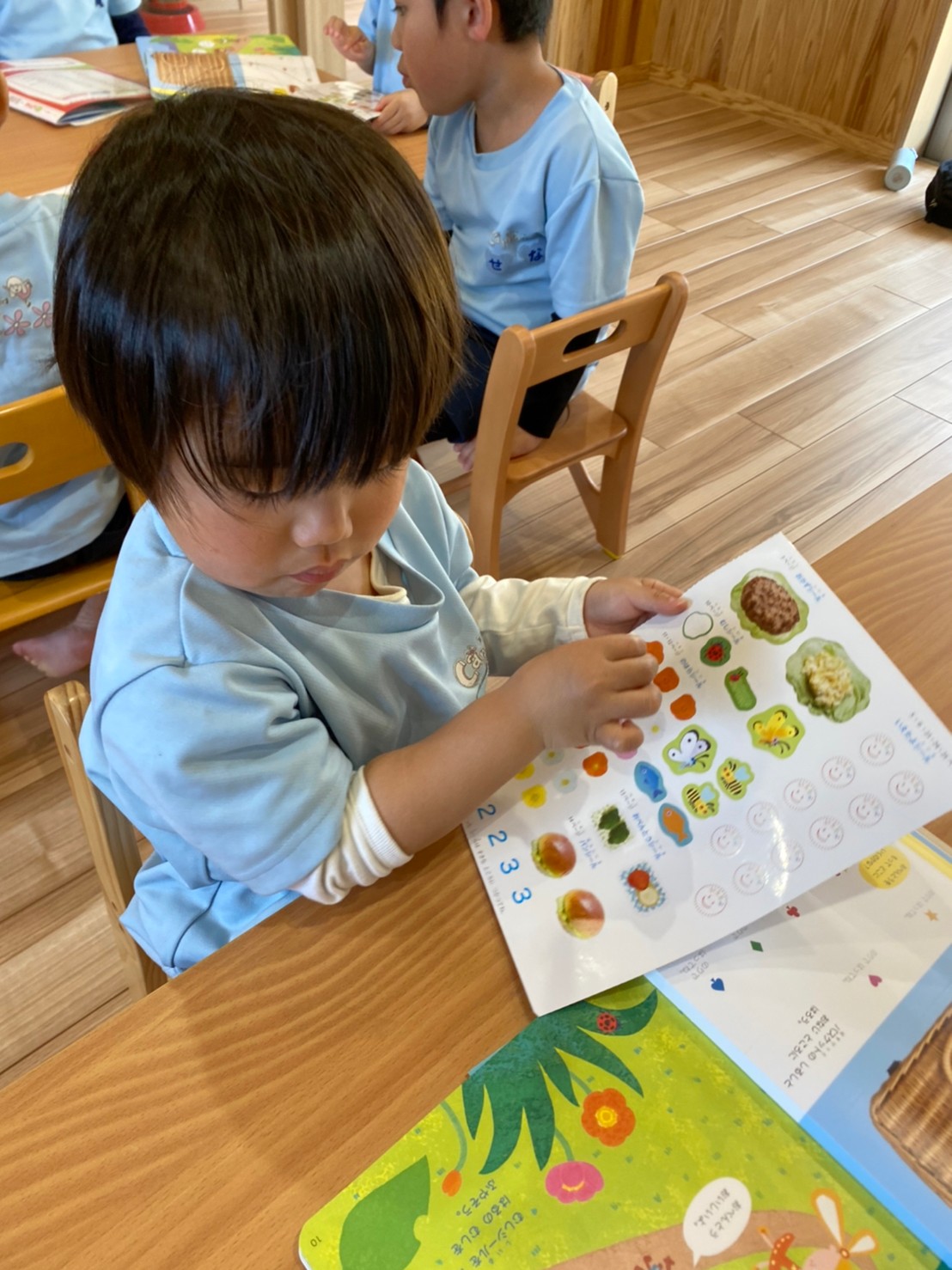 保育士の説明をよく聞いて、シールを貼ることが出来ましたよ🥰✨
