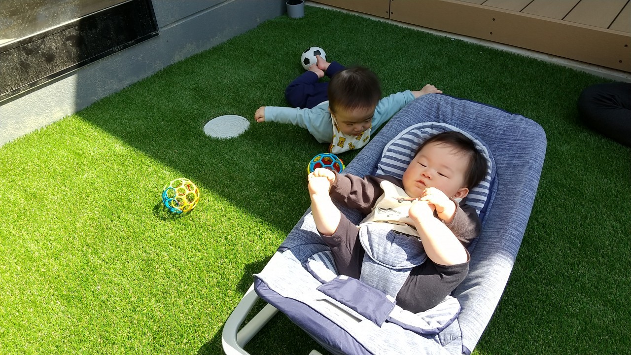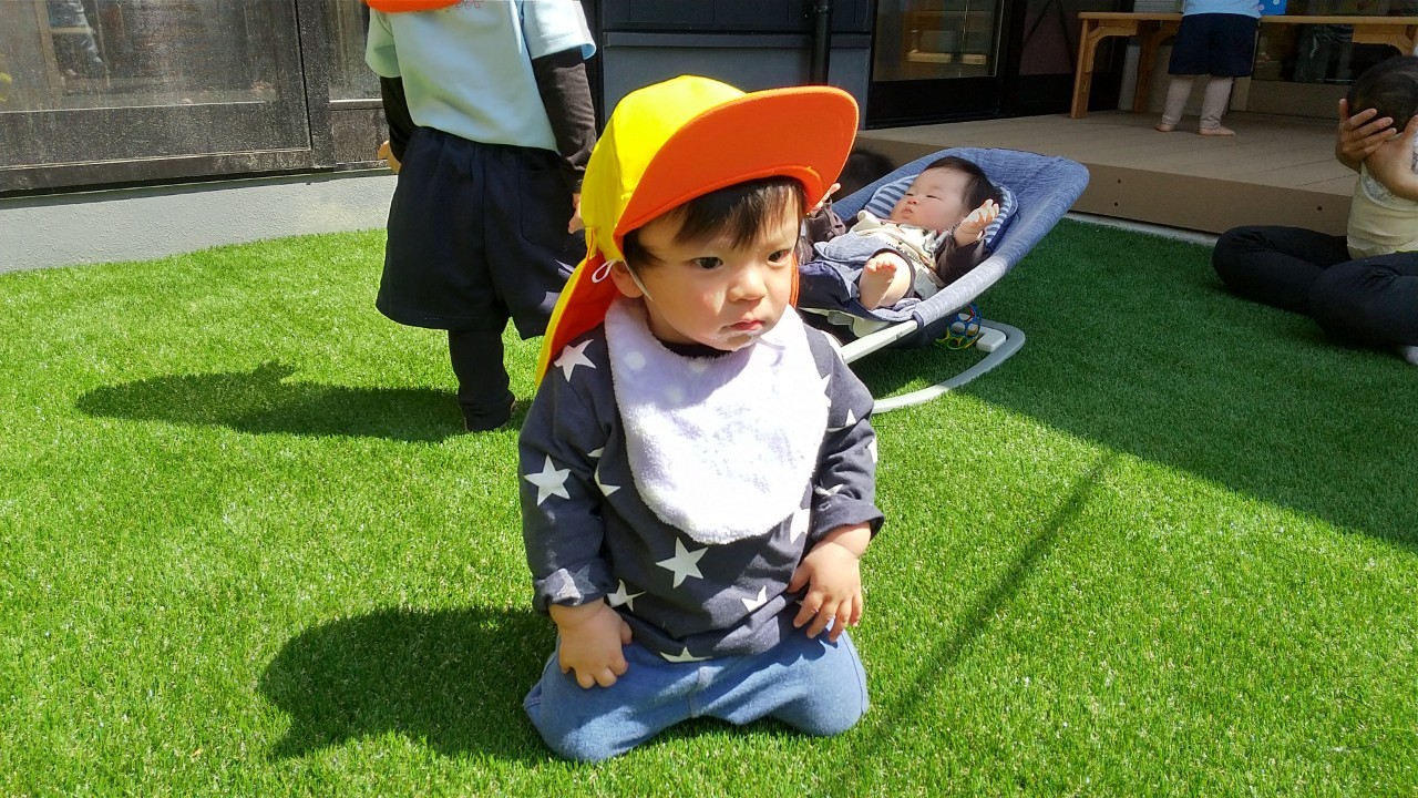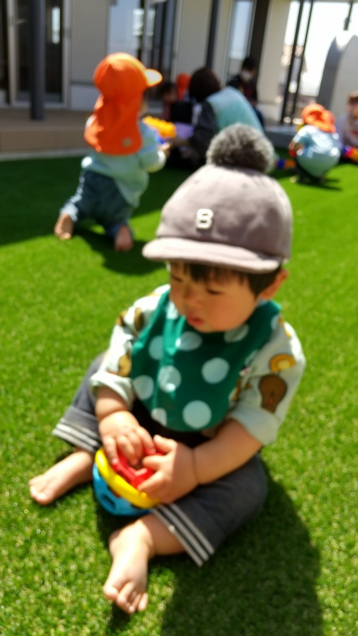 その後は園庭芝生でぽかぽか日向ぼっこをしました✨りす組のお兄さんが玩具を持ってきて優しくしてくれました❤️✨