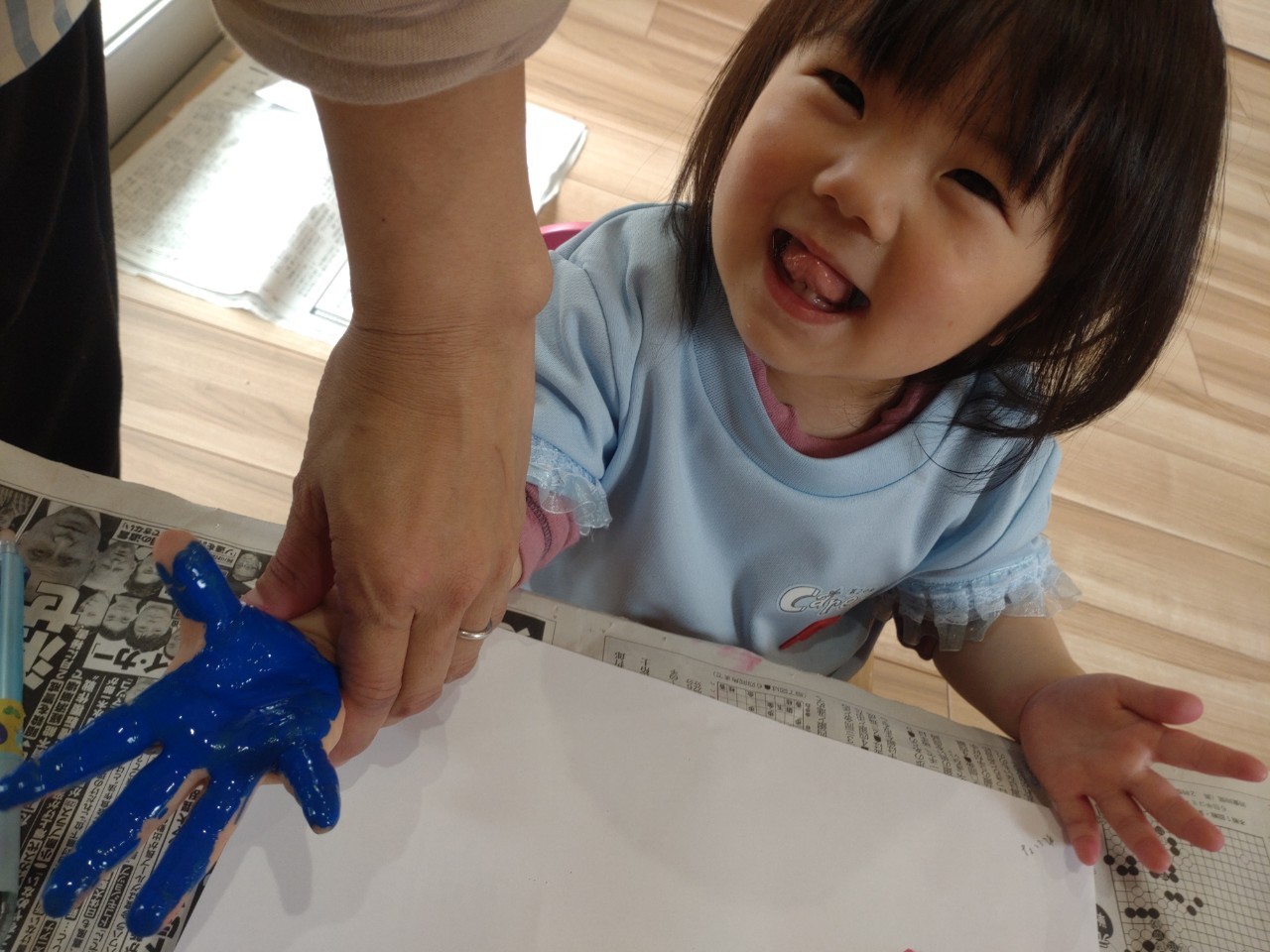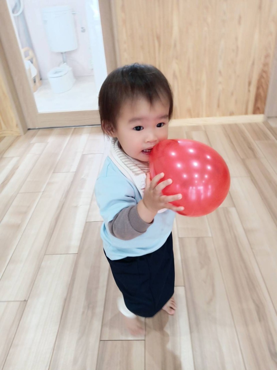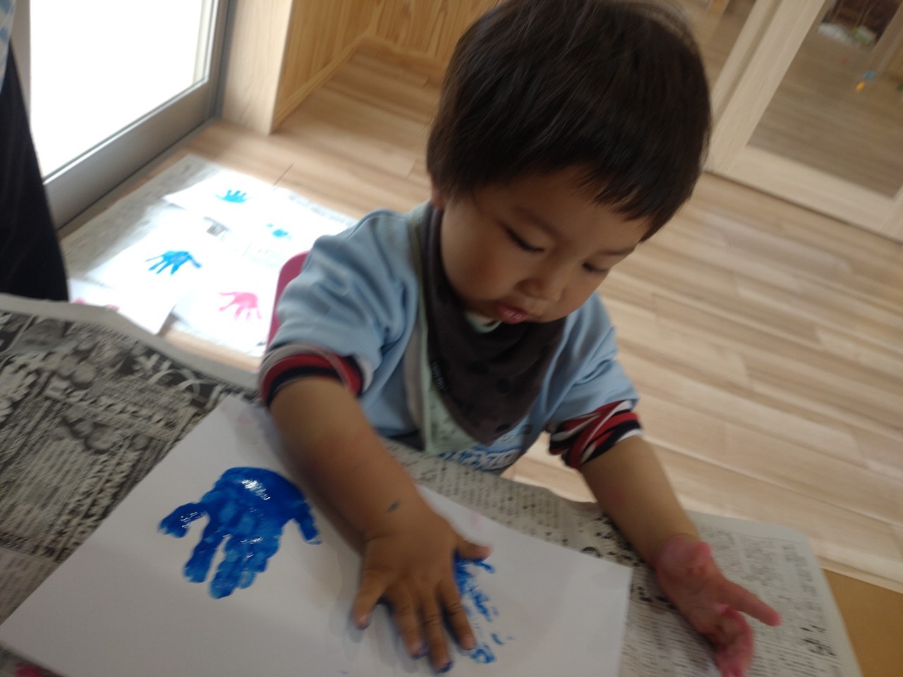 季節の製作で手形を取りました🖌🎨絵の具の色が分かり、「あか〜❣」「あお〜❣」と嬉しそうに言うお友だちもいました🎶お部屋では、風船やおままごとなど、思い思いに楽しんで遊びました🥰