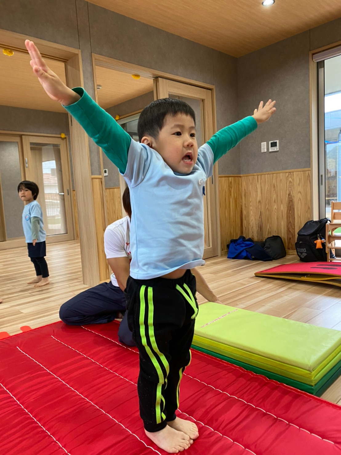 クラスごとに発表する内容も違う為、年長さんの跳び箱や側転を見て、「おぉ〜〜!!」と驚いていました😲✨