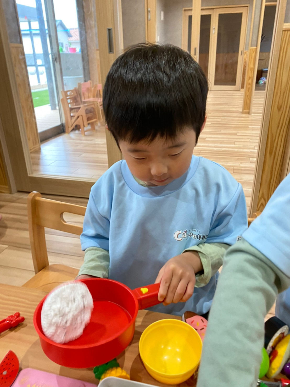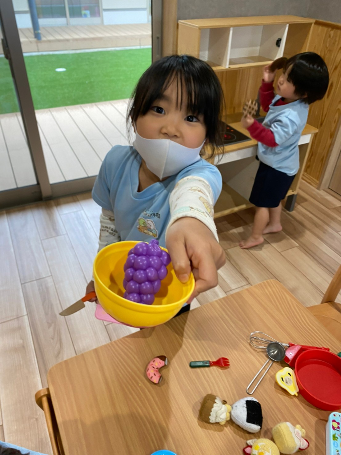 友達同士で「いらっしゃいませ〜!」と言ってごっこ遊びを楽しむ子もいました🧑🍳⭐️【くりえいと園の今日の給食です】