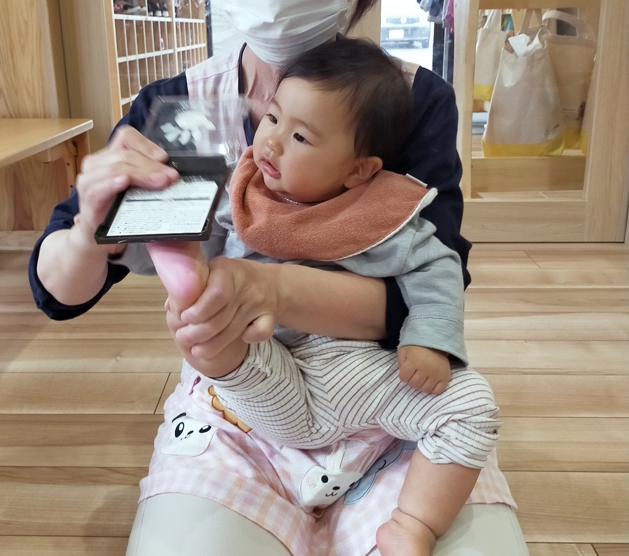 その後は月製作の足型スタンプをしました!足にスタンプカラーを