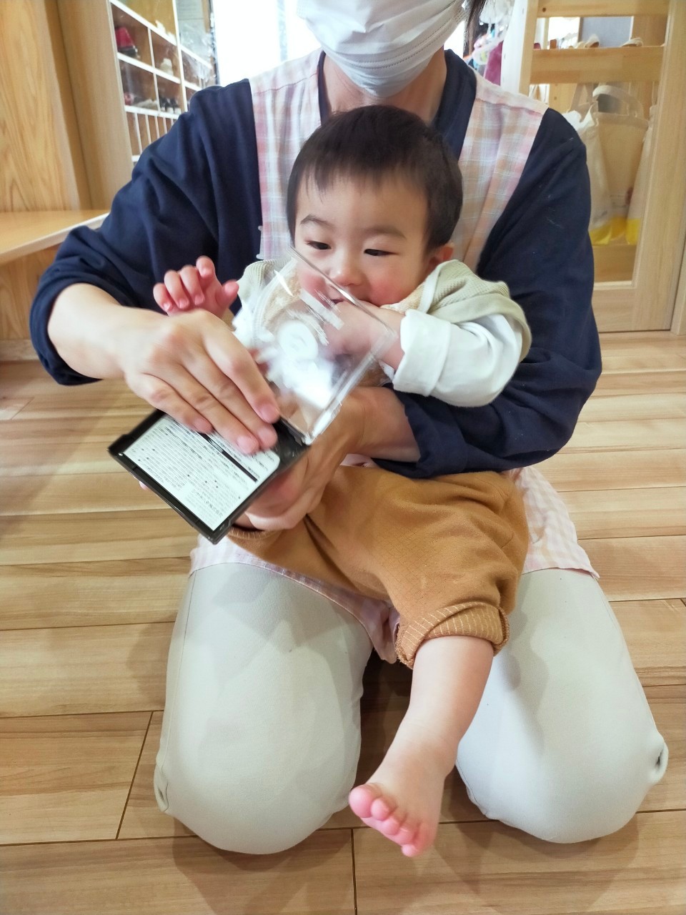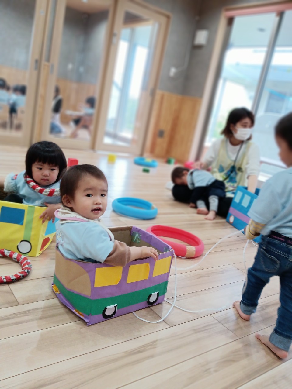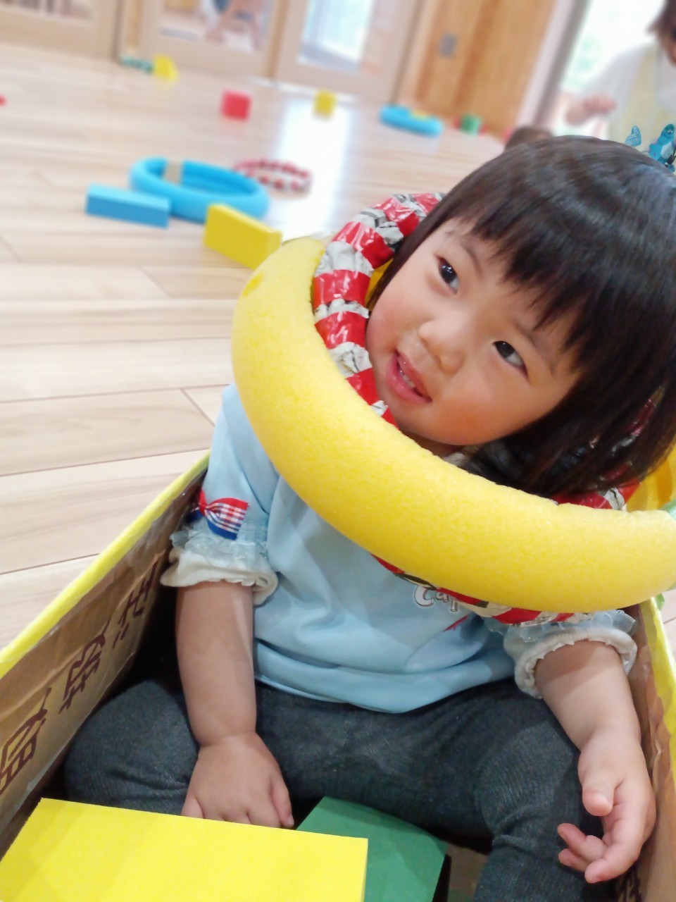 つけてもらう時は神妙な表情のひよこさんでした😂✨が上手にできました!りすぐみ(リス)今日は雨だったので室内で段ボール電車やソフトブロックで遊びましました😃。電車に乗る子と引っ張る子と自分で遊びたい方を選んで遊ぶ姿がみられました🤗
