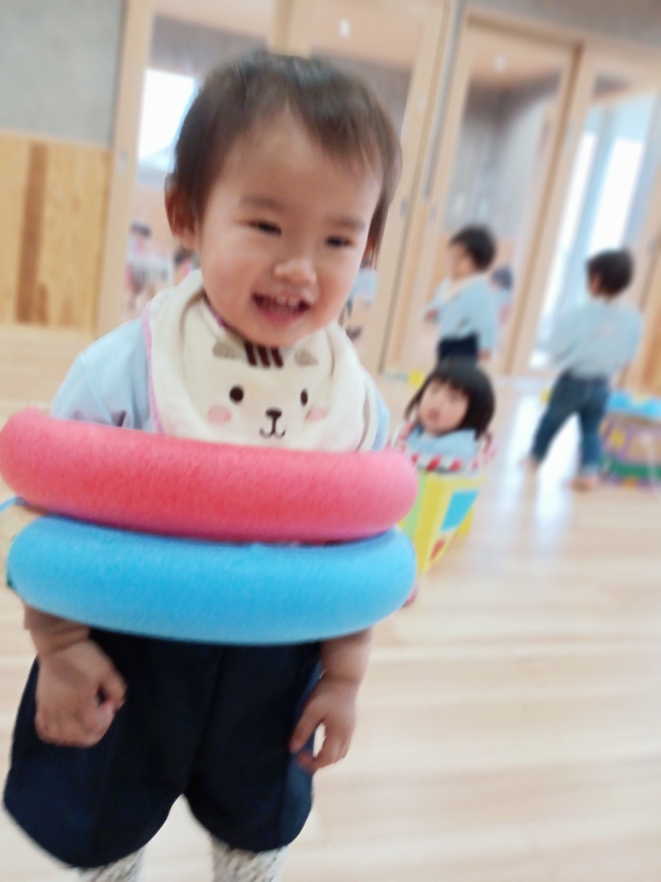 輪投げの輪っかやソフトブロックも出し遊びが飽きないようにしていき、全部の玩具を使い友達や保育者と楽しく遊んでいました☺️。🐼ぱんだ組🐼