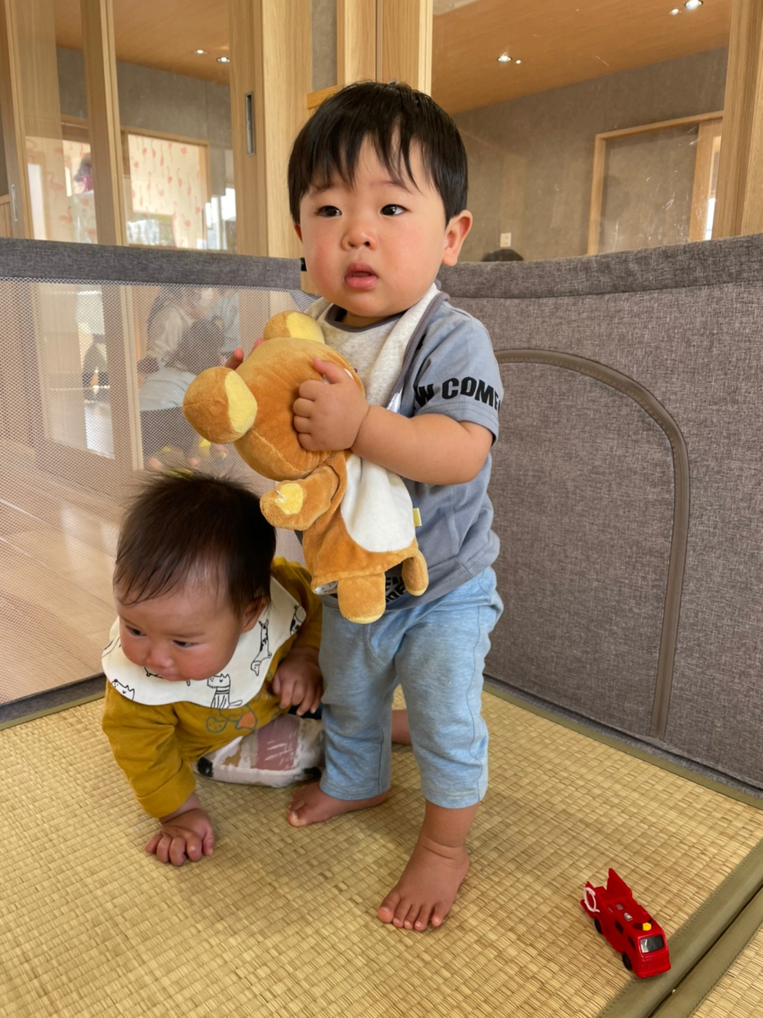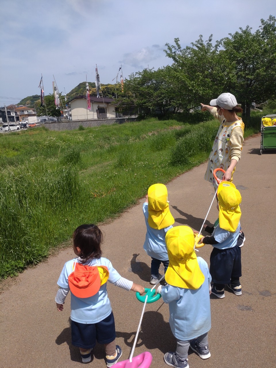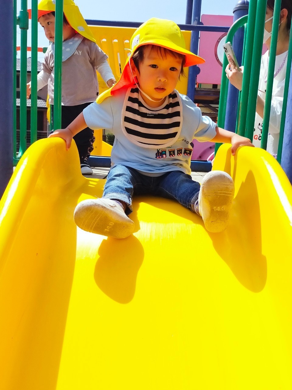 天気が良かったので進級して初めて、くりえいとふれあい公園までお散歩に行きました🎶こいのぼりを見つけると指差したり歌ったり、楽しそうに歩いていました🎏✨公園では滑り台やスプリング遊具で嬉しそうに遊ぶ子ども達でした🥰