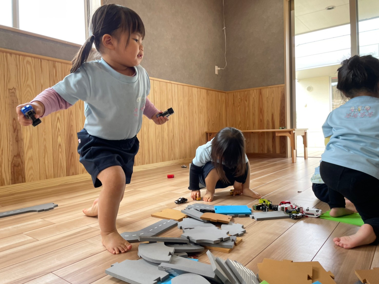 今日は道路を作ったり車を走らせたりするおもちゃで遊びました🚗³₃