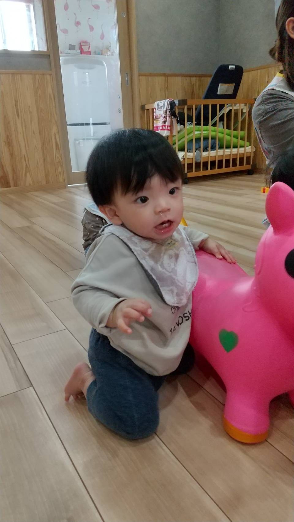 今日は室内で馬の乗り物玩具に初挑戦しました!