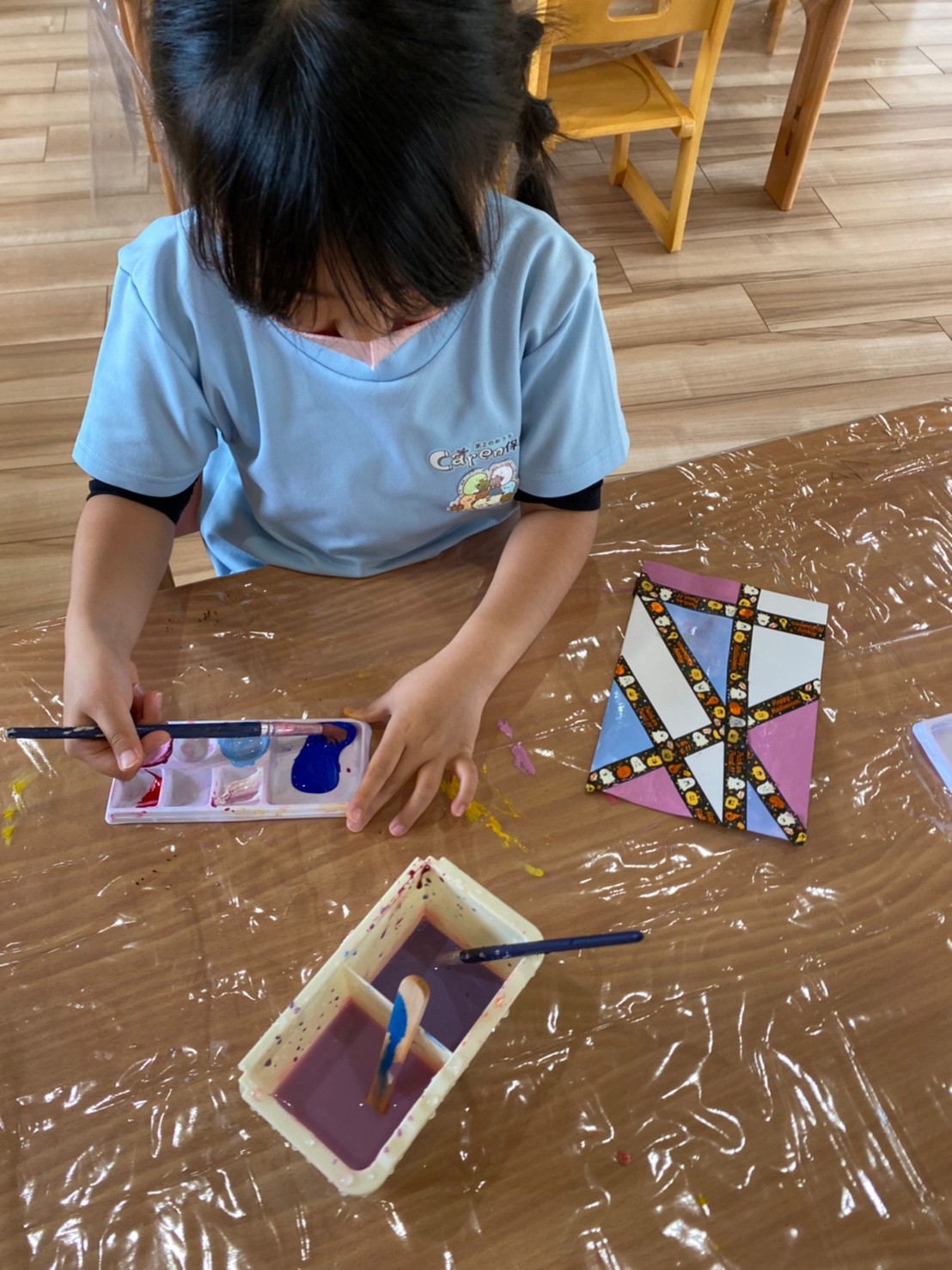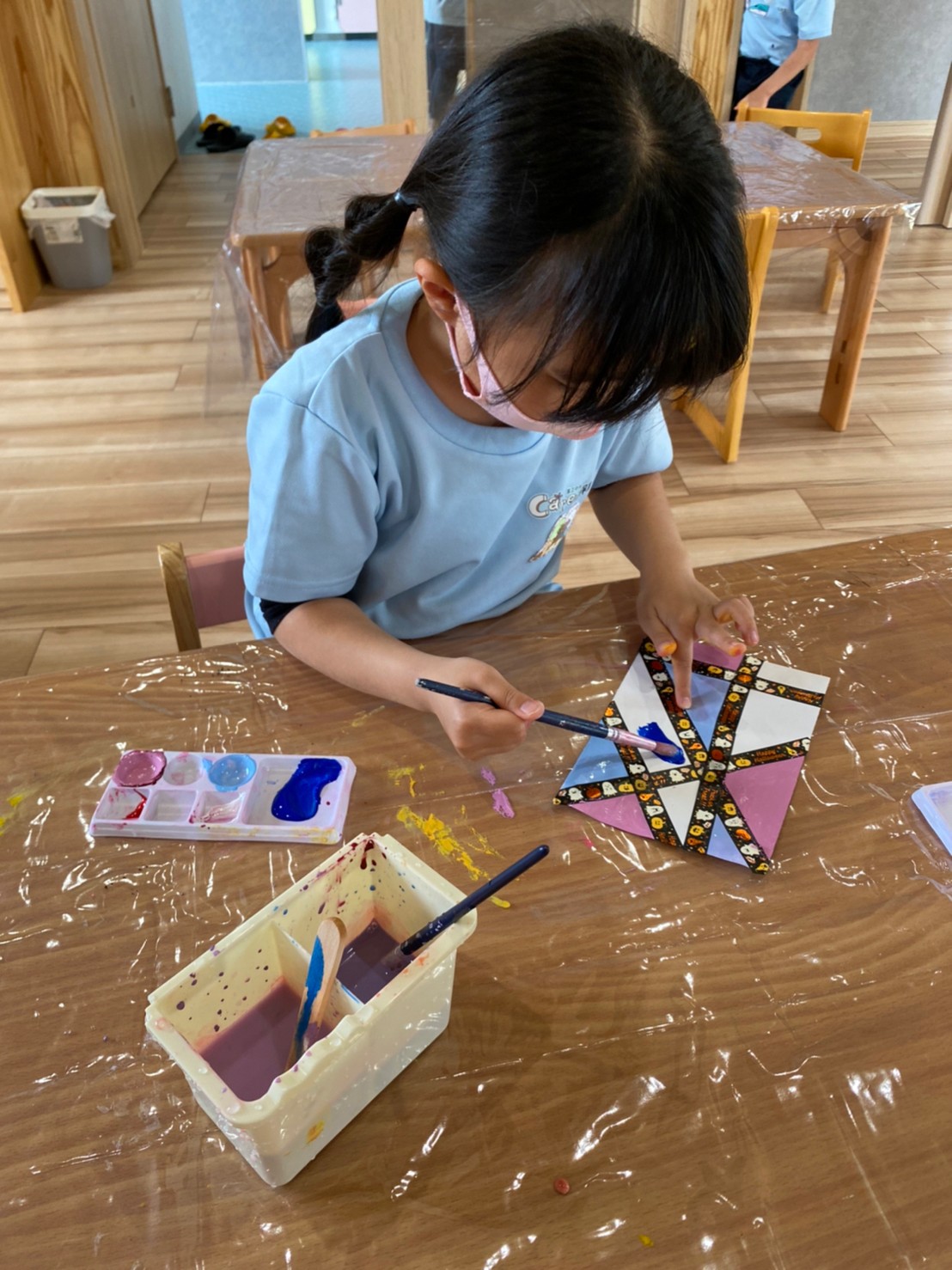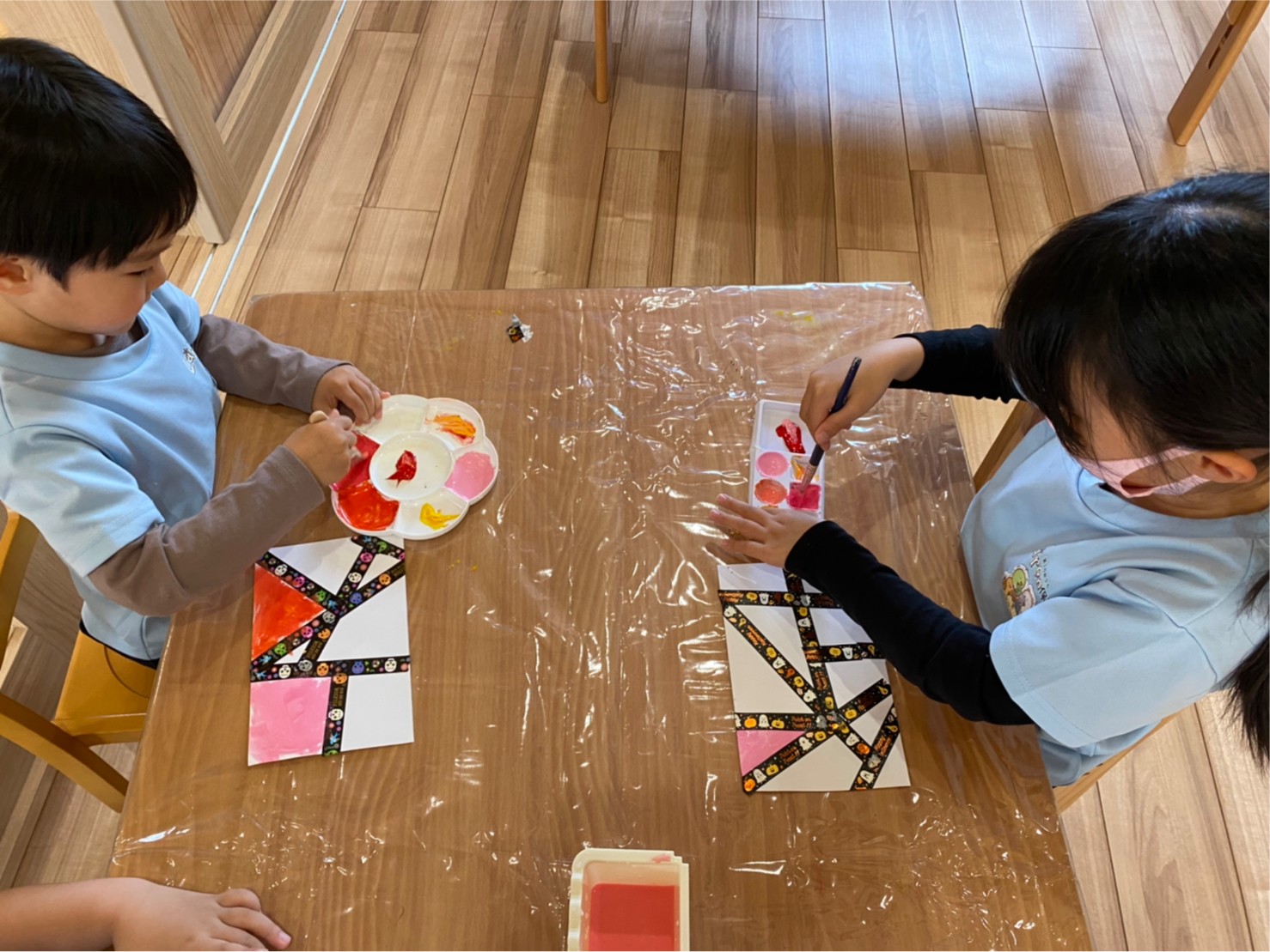 色の変化にも気付き、「こんな色ができたー!」と嬉しそうに話す声も上がり、楽しく製作することができました🥳