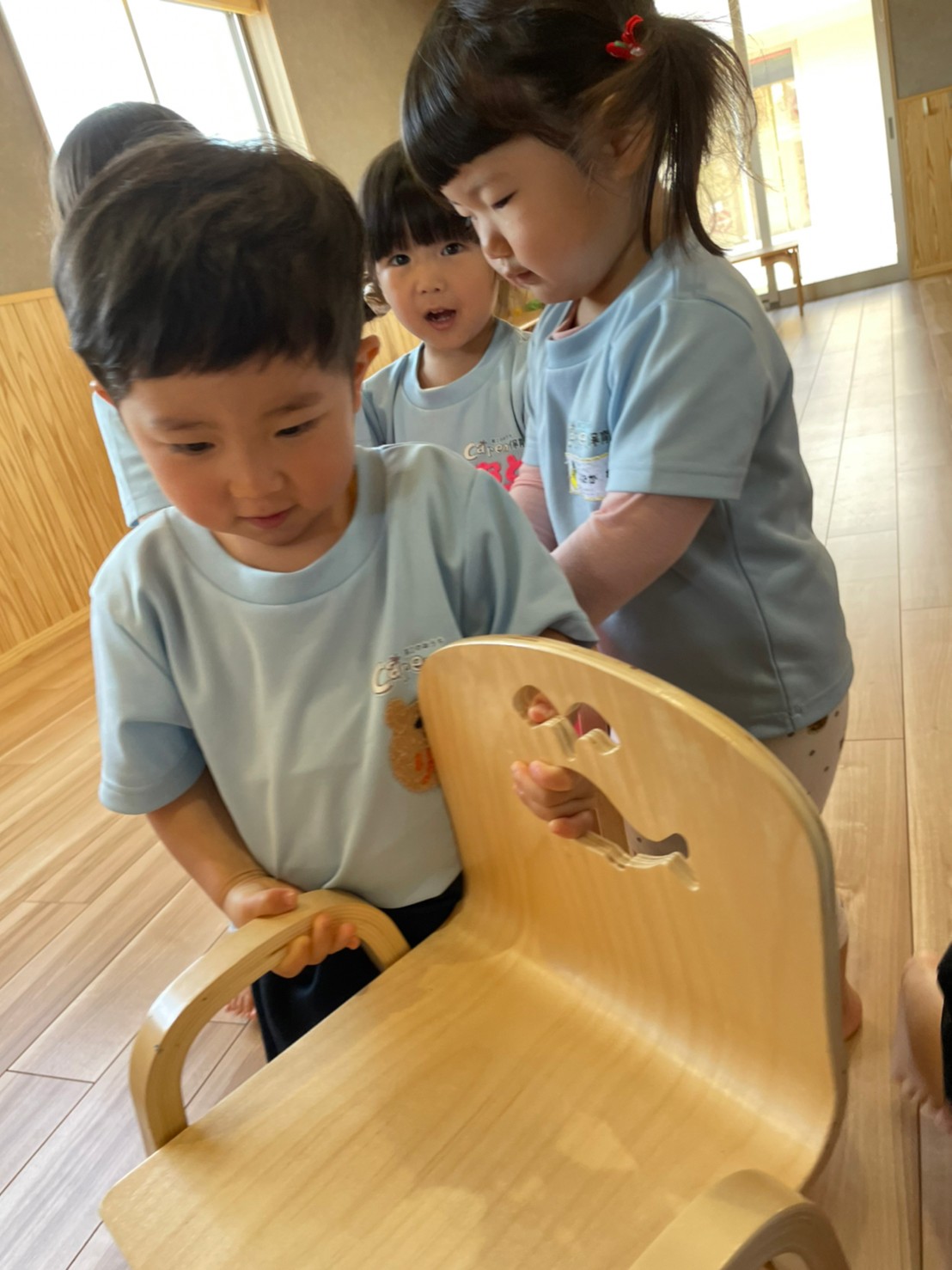 お友達の水筒を名前をよんで渡したり椅子を運ぶのを手伝ったりと、お友達同士助け合って過ごす毎日です❤️
