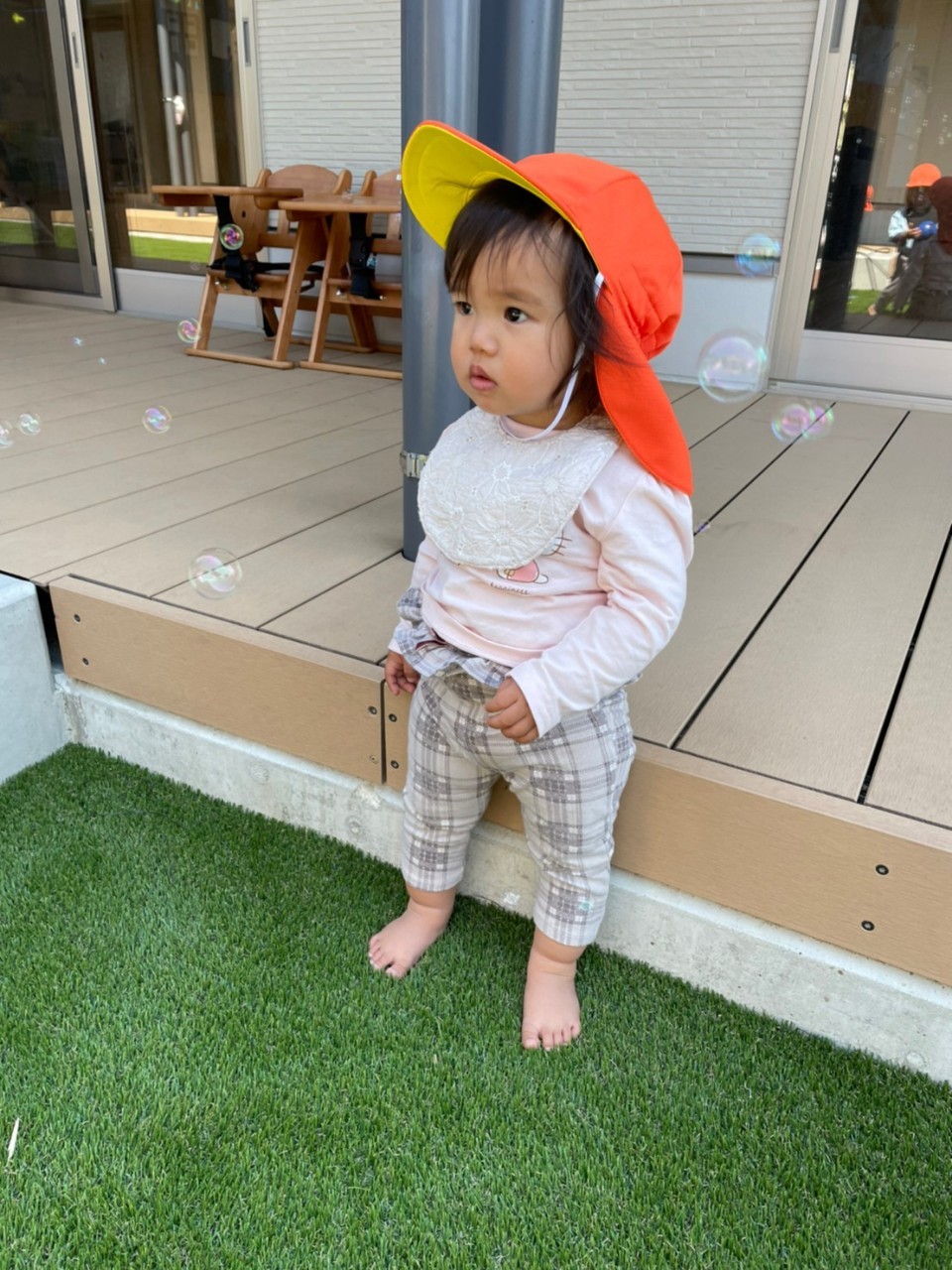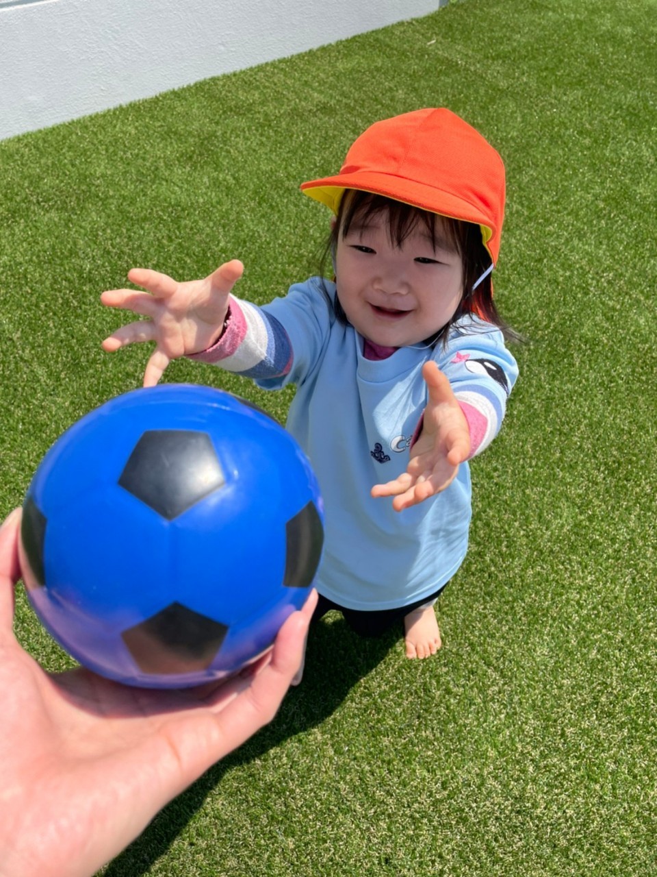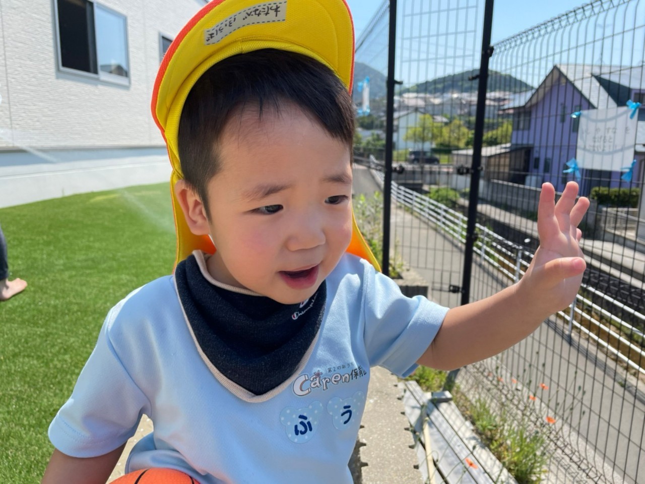 今日はお庭で遊びました✨日差しが強かったので、シャワーの水を巻くと、笑い声をあげて逃げまわっていました😆ボールやしゃぼん玉遊びも嬉しそうでしたよ🎶