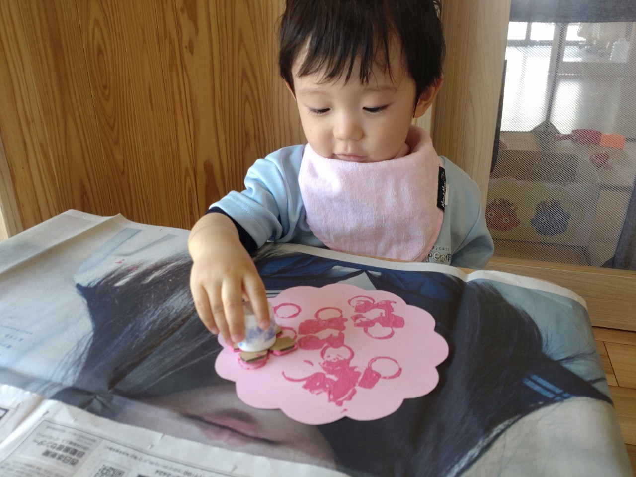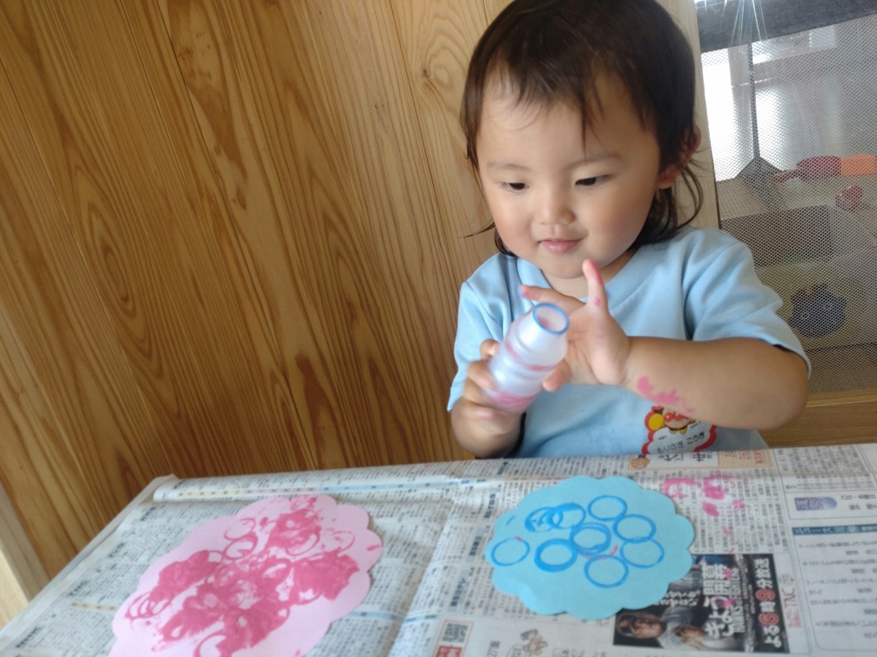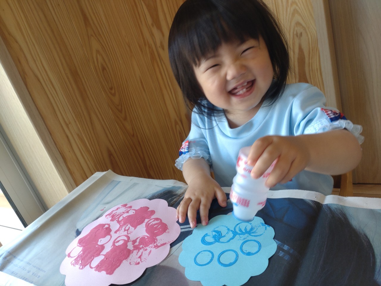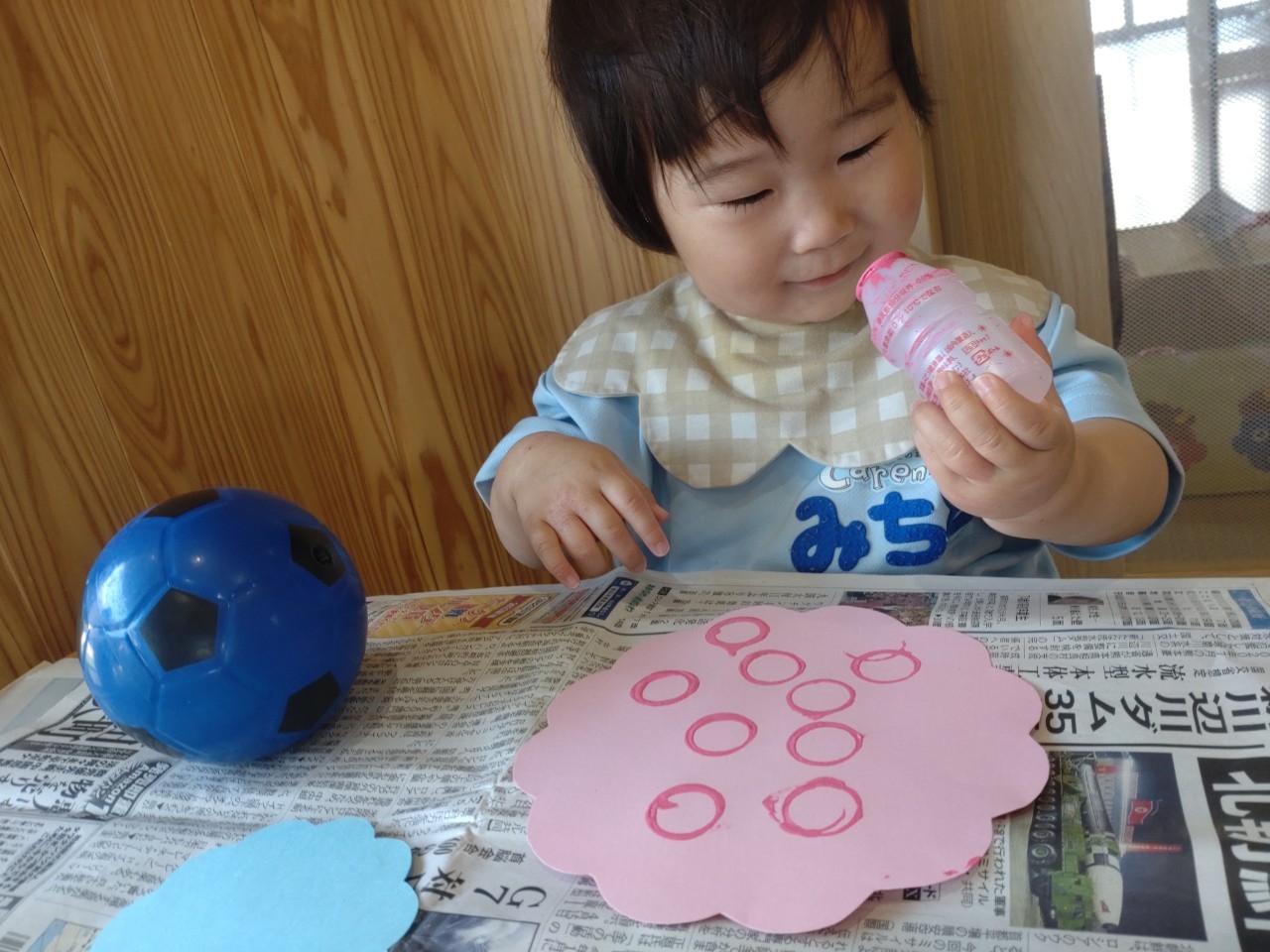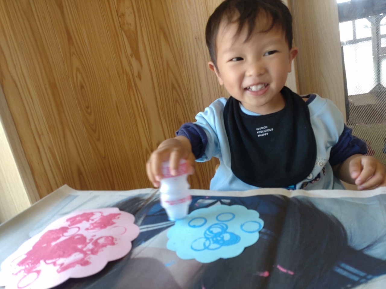 お庭で遊んでいる間に、お部屋で一人ずつ月製作の絵の具スタンプをしました🖌🎨落ち着いた雰囲気の中、どの子も積極的にスタンプを押していました🥰ぱんだ組🥹