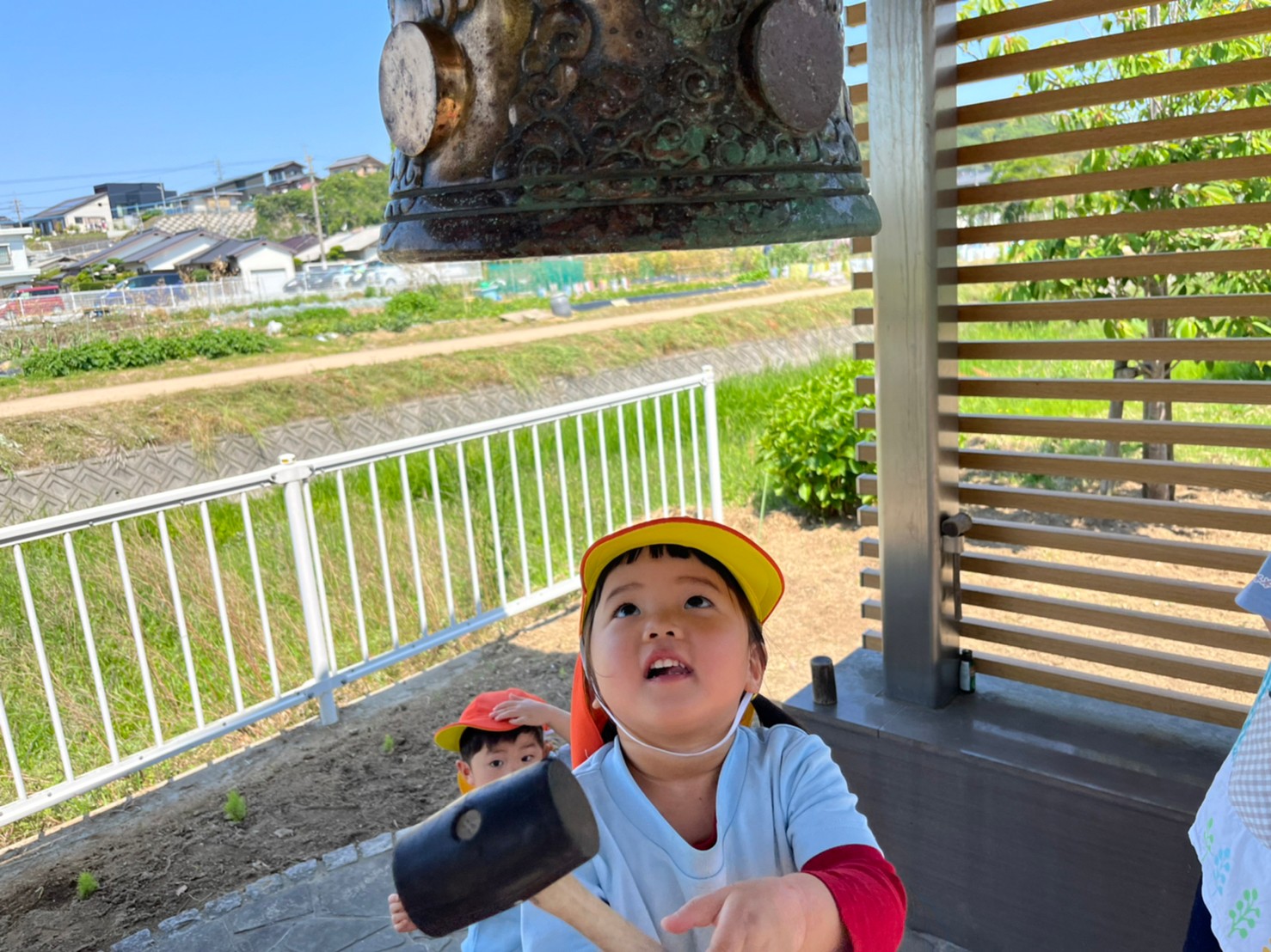 1人ずつ鐘を鳴らしたりかけっこをしたりと楽しく過ごしています🥰
