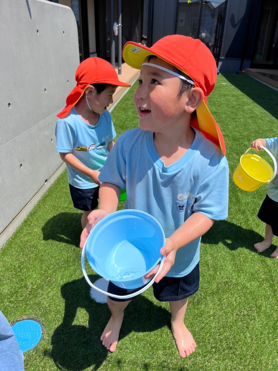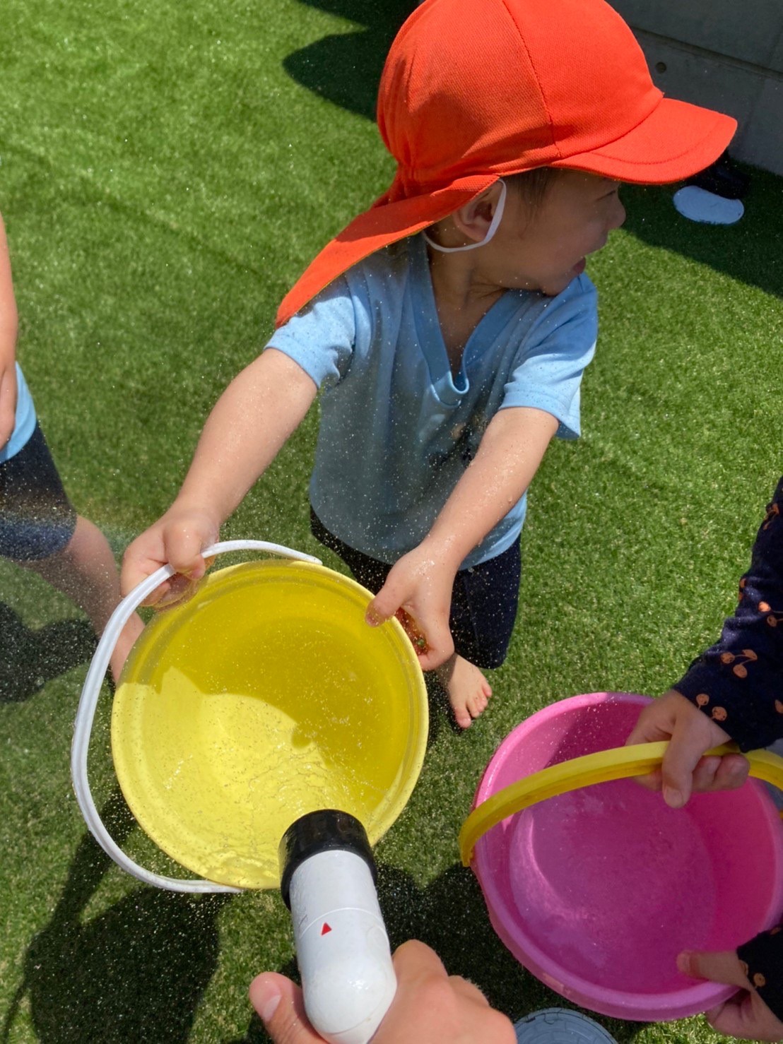園に戻って水遊びをして沢山身体を動かして過ごしましたー!うさぎ、こあら、きりん組