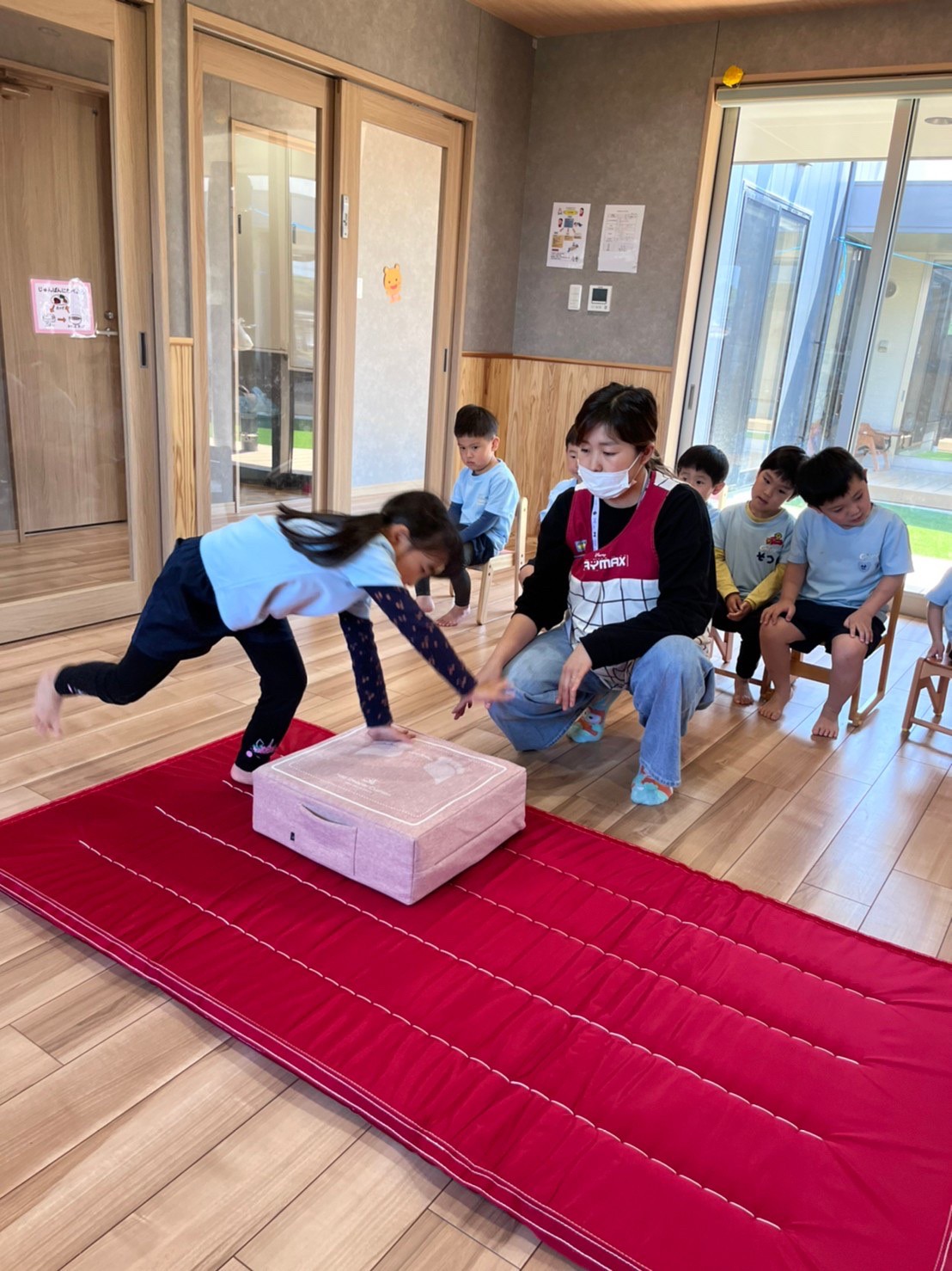 今日は体操教室で教わったマットや鉄棒をしました🤸♀️