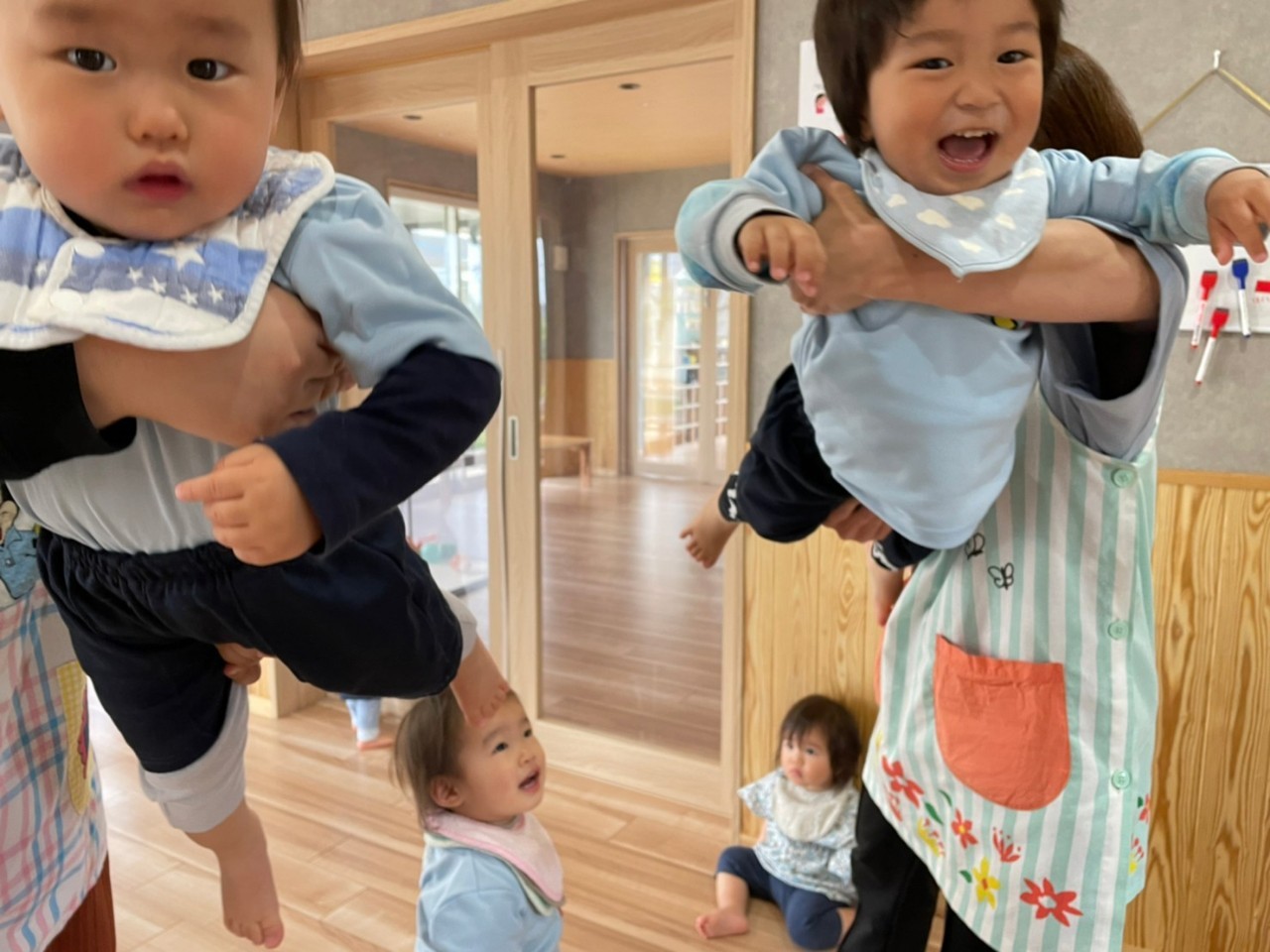 その後は、体操やダンス曲に合わせて体を思いきり動かしました❣️うつ伏せ抱っこでアンパンマンになって空を飛ぶと、大喜びな子ども達でした😆ぱんだ🐼🐾