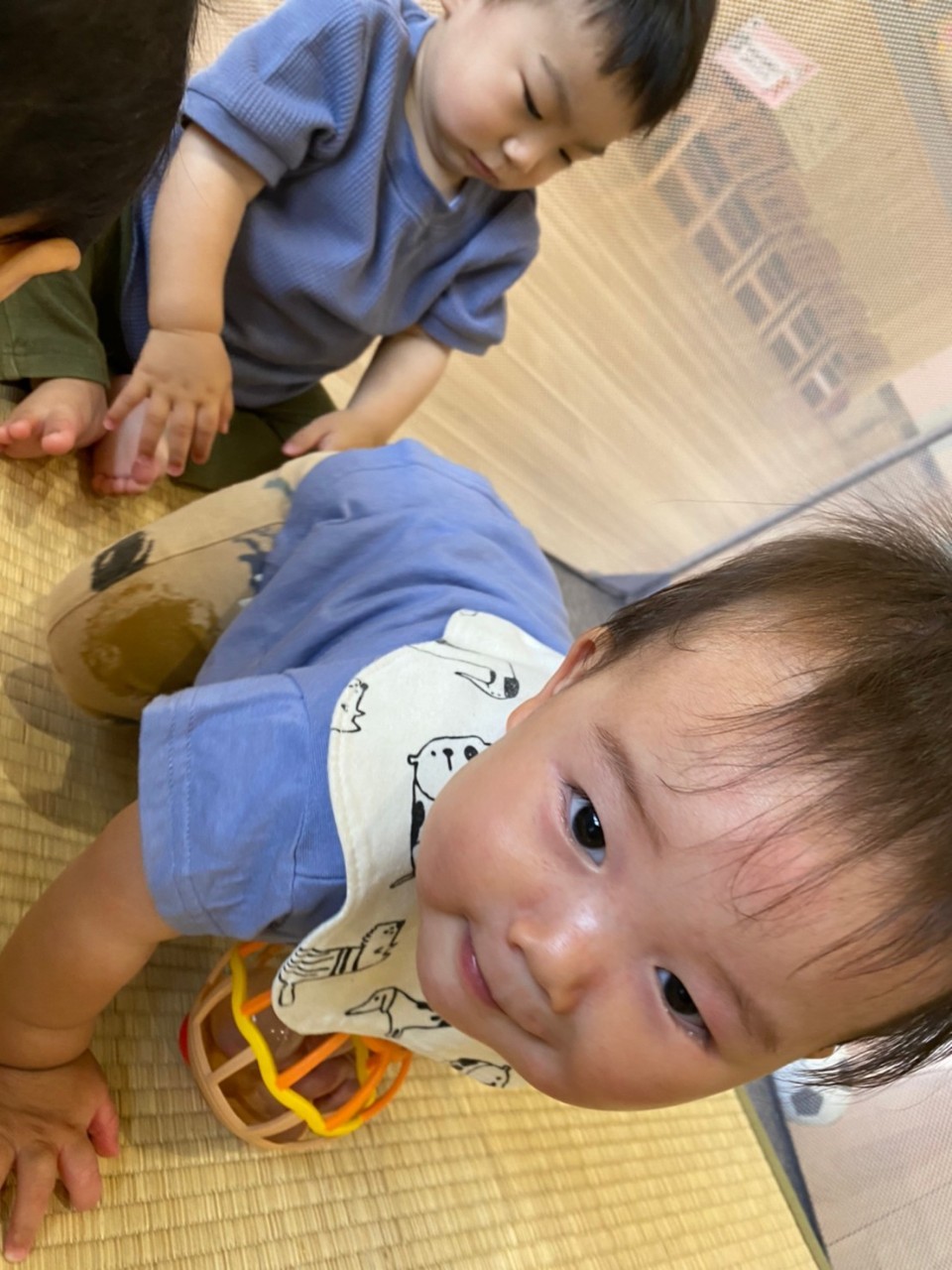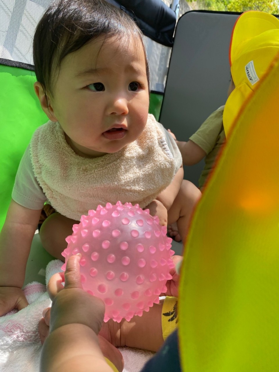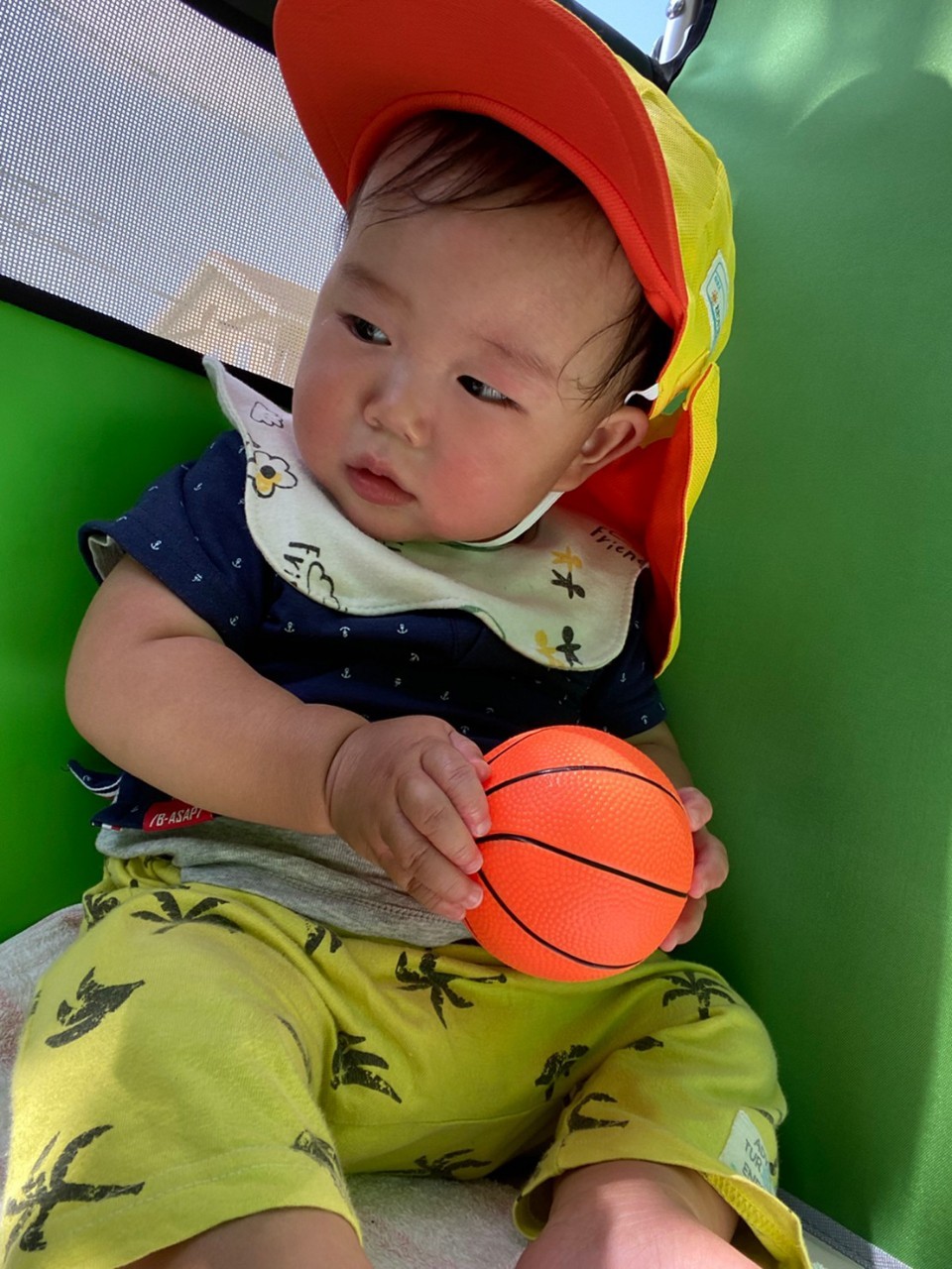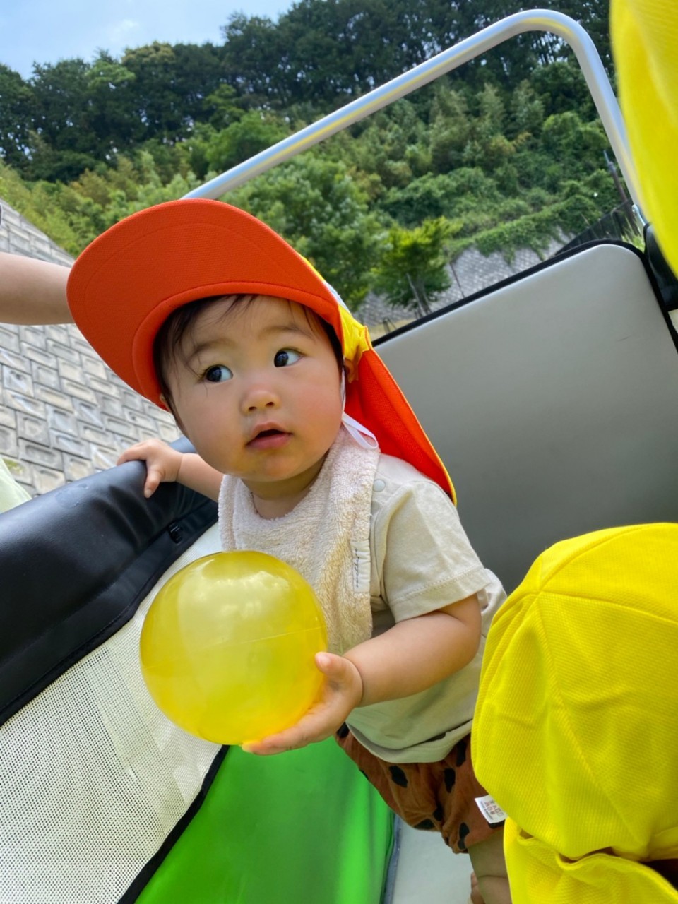 ひよこ🐤ぐみ。今日は近くの公園に散歩🏞にいきました。おんぶの子やカートに乗るこも景色を見ながら散歩を楽しみました😌暑いので水分補給を行い日陰で遊びましまた😀カートの中でボール遊びをしたりシャボン玉を飛ばすとジーッと見ている姿が見られまさした🙂園に早めに戻り沐浴をし汗を流していきました☺️