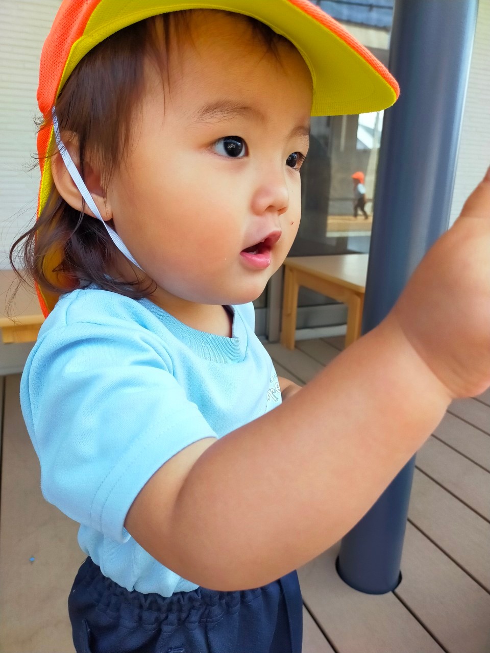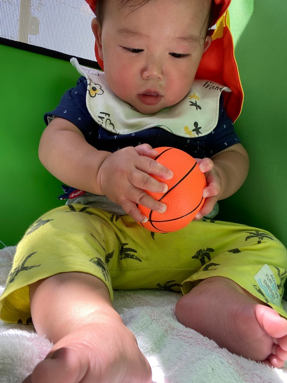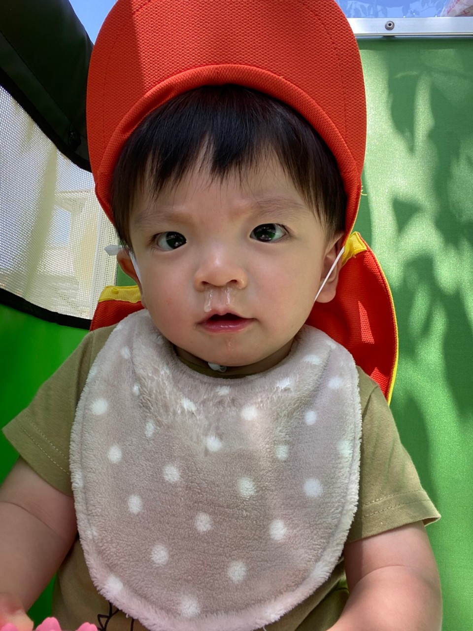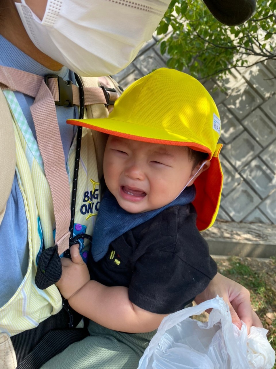 ひよこ🐤ぐみ。今日は近くの公園に散歩🏞にいきました。おんぶの子やカートに乗るこも景色を見ながら散歩を楽しみました😌暑いので水分補給を行い日陰で遊びましまた😀カートの中でボール遊びをしたりシャボン玉を飛ばすとジーッと見ている姿が見られまさした🙂園に早めに戻り沐浴をし汗を流していきました☺️