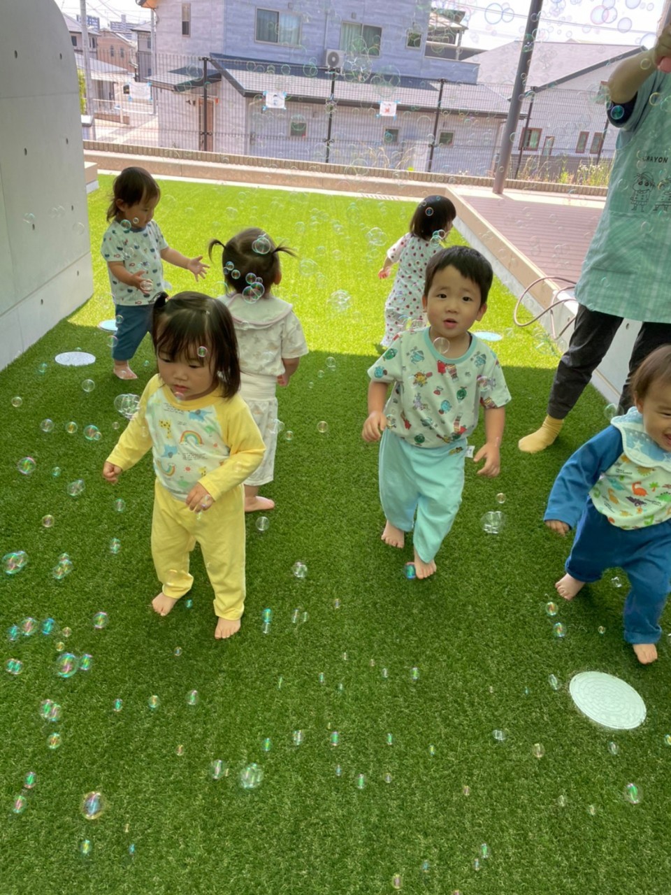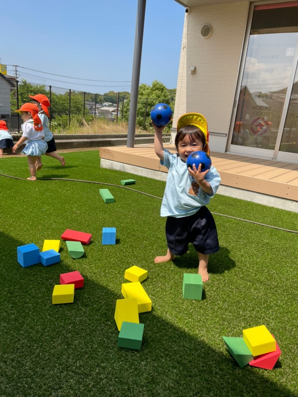 今日は園庭でシャボン玉やブロック、ボールを使って遊びました✨それぞれ、好きな遊びで楽しみました☺️