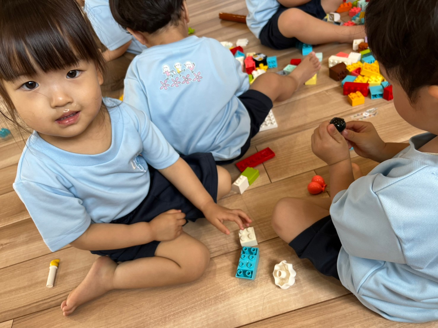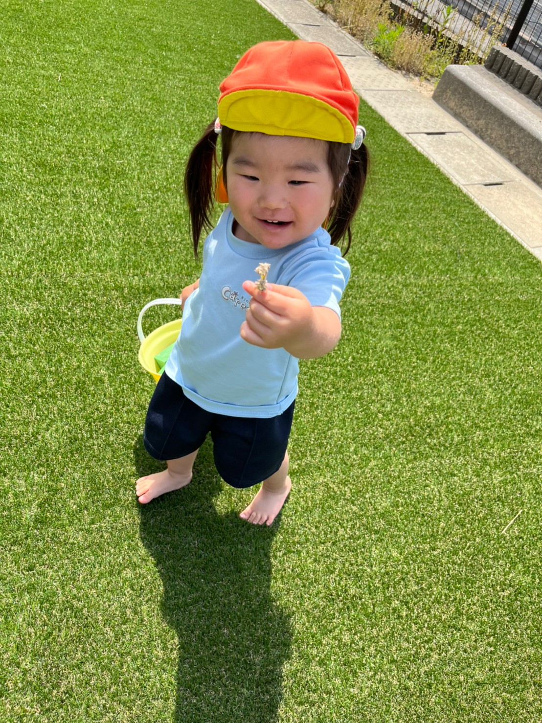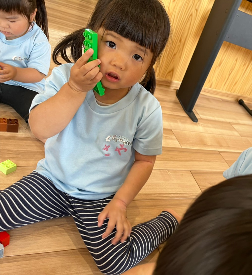 ブロックを積み上げたりバケツに入れてお買い物ごっこをしたり、虫を見つけると皆を呼んで観察していたりと、各々が好きな遊びを見つけていました✨