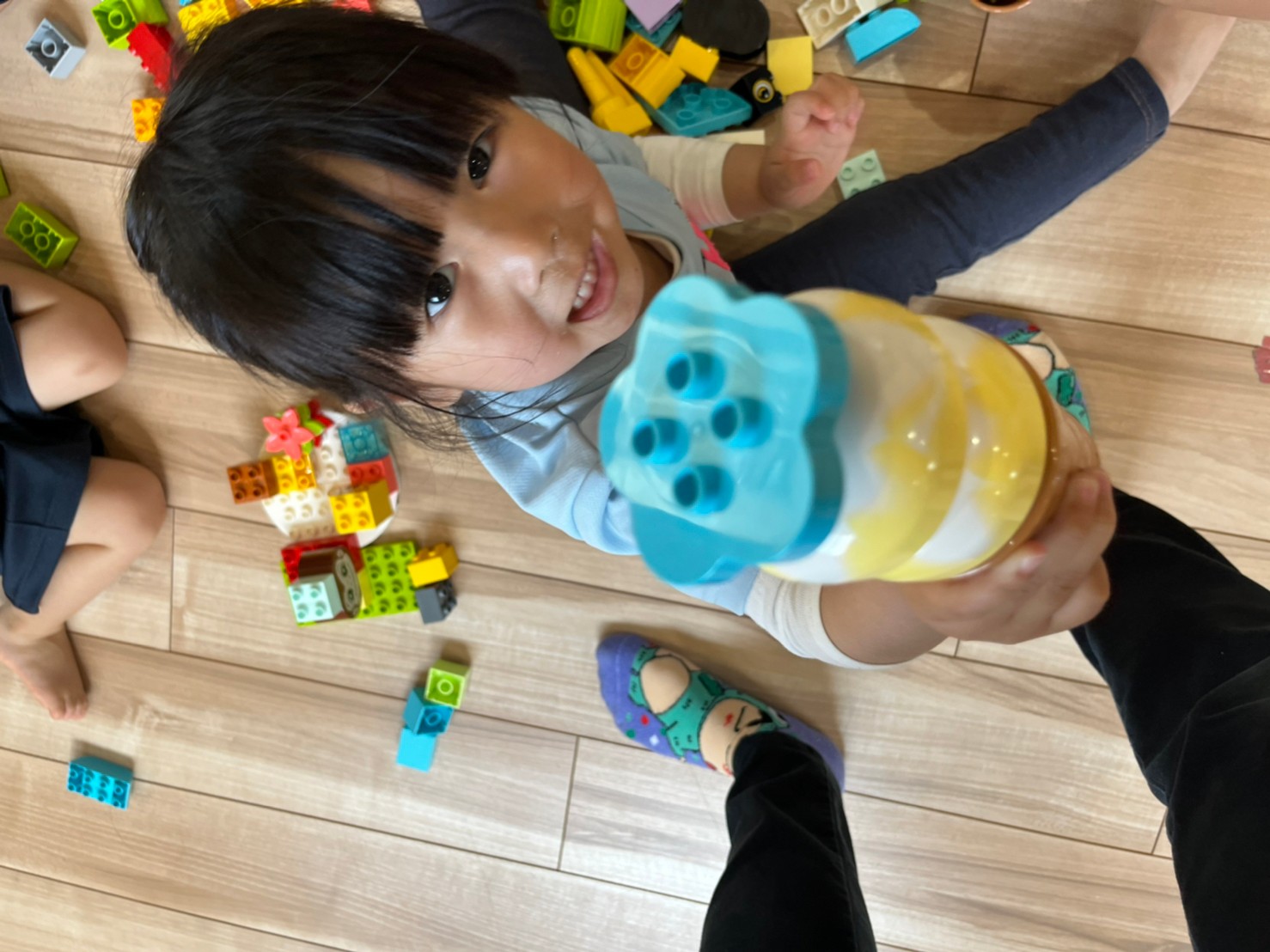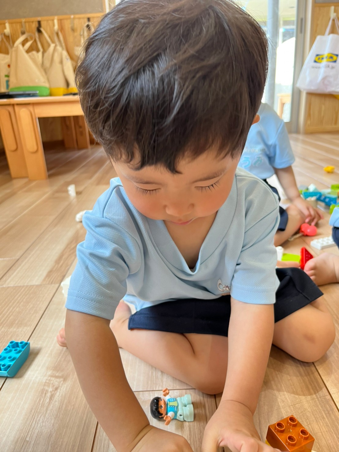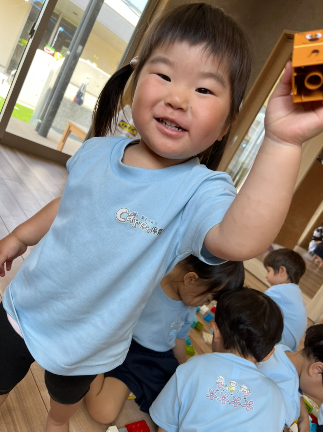 ブロックを積み上げたりバケツに入れてお買い物ごっこをしたり、虫を見つけると皆を呼んで観察していたりと、各々が好きな遊びを見つけていました✨